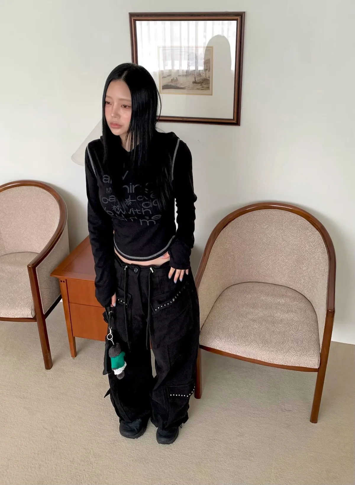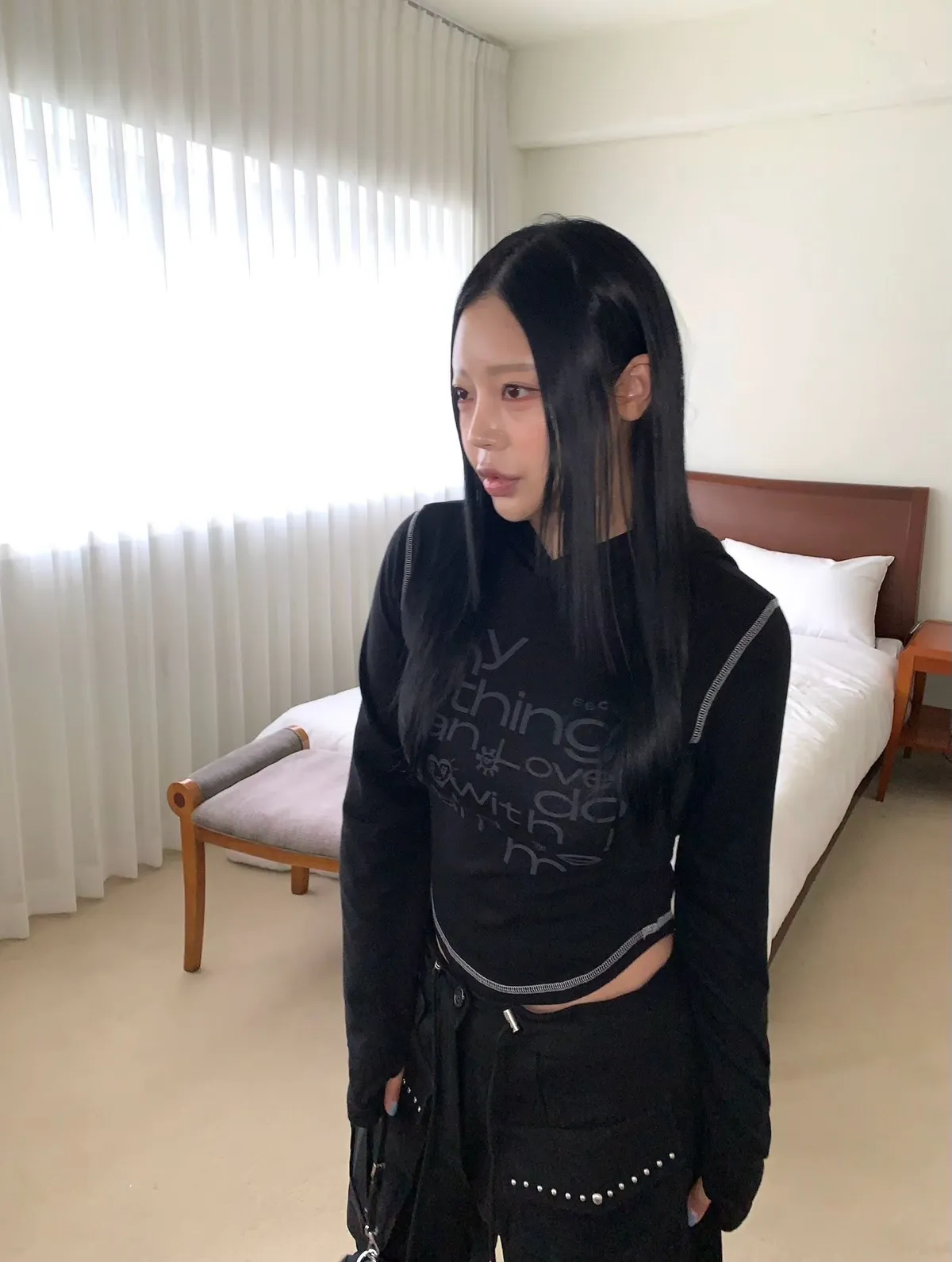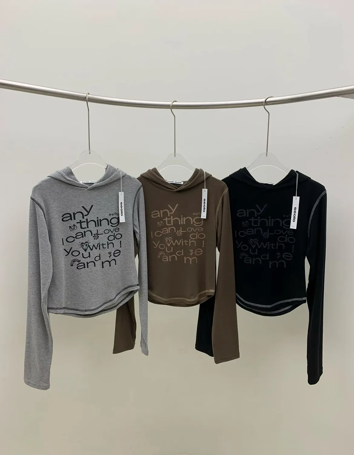 25IG14 外縫線細羅紋英字連帽長T 3色