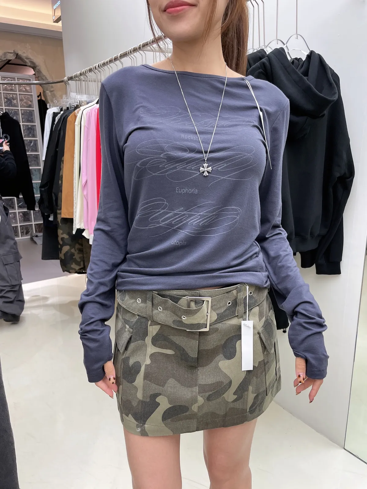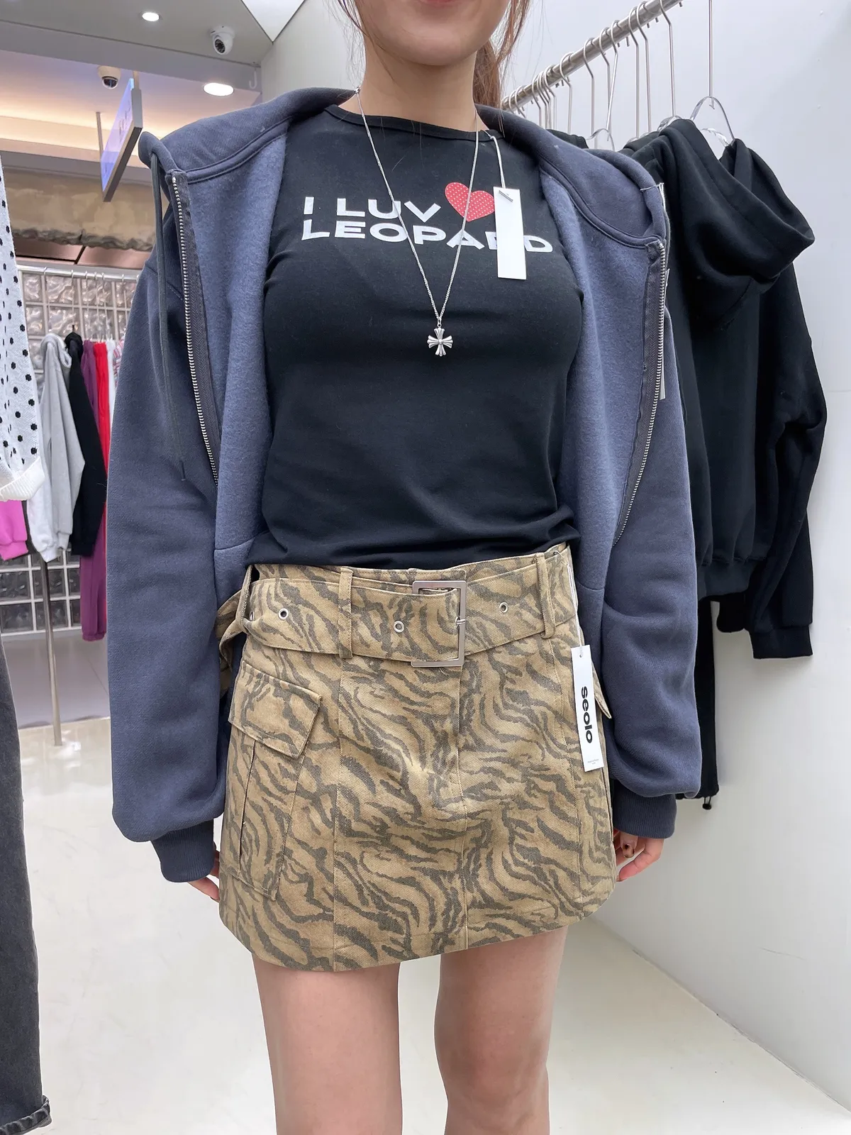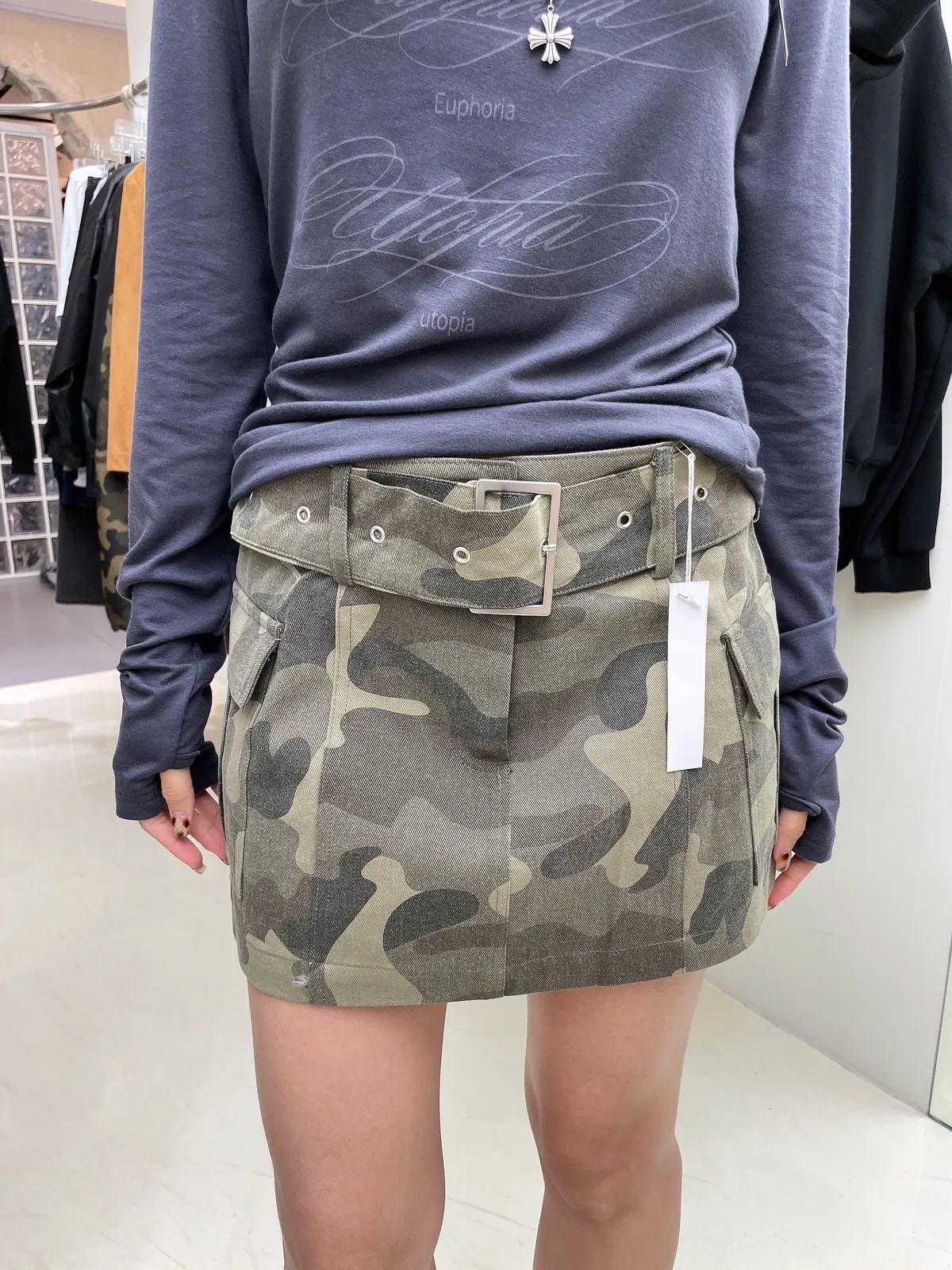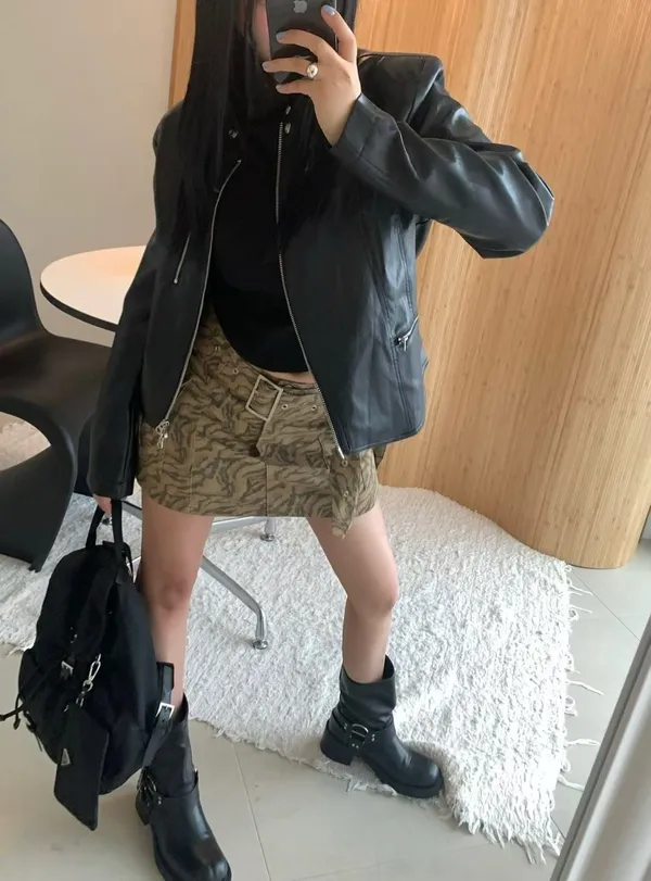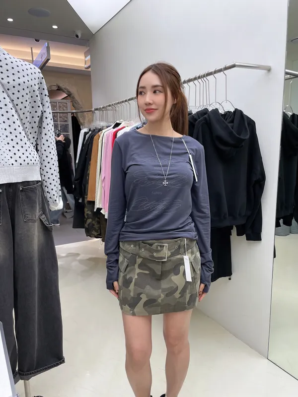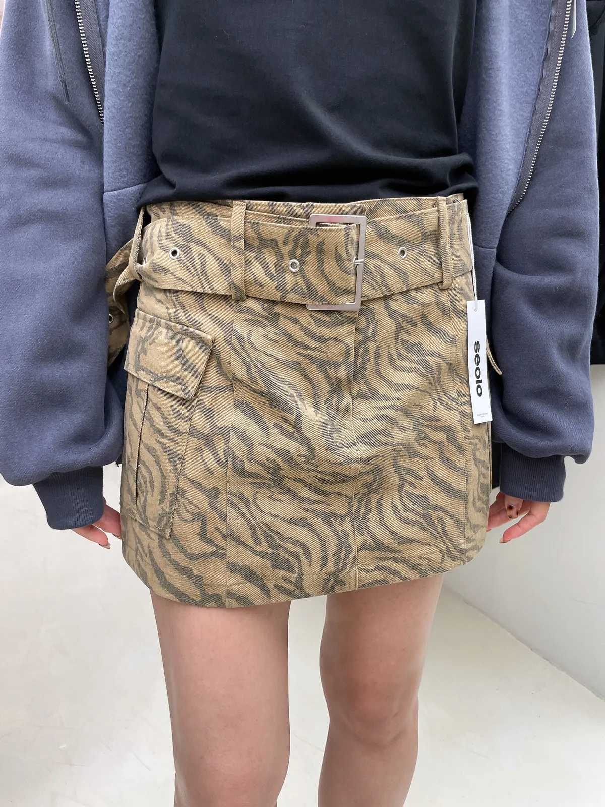 25IG17 迷彩虎紋薄斜紋腰帶短裙 2色 SM