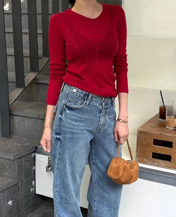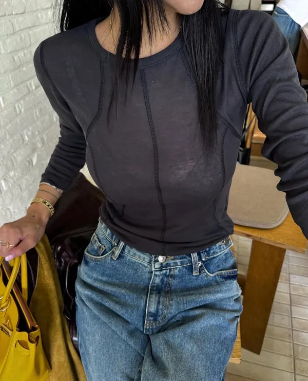 25IH06 羊毛天絲透透外縫線打底長上衣 3色
