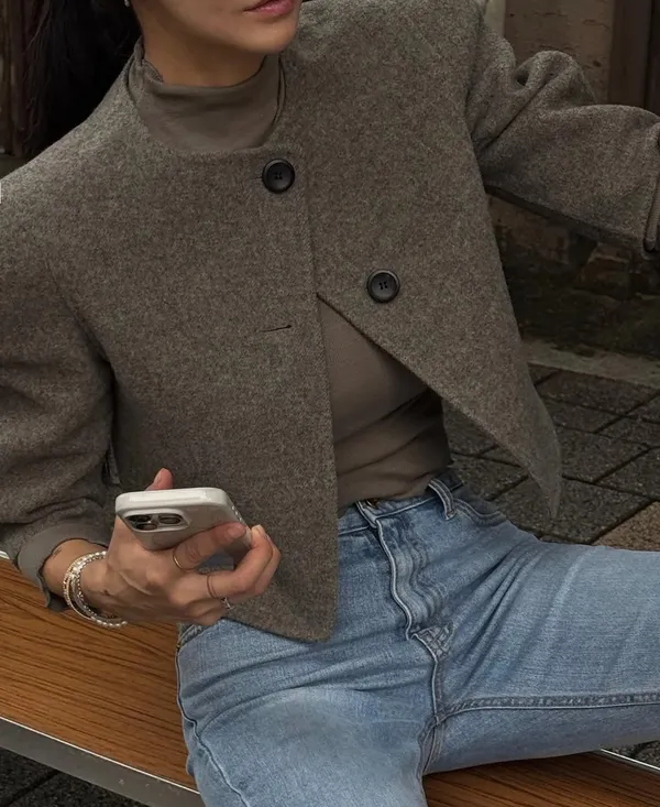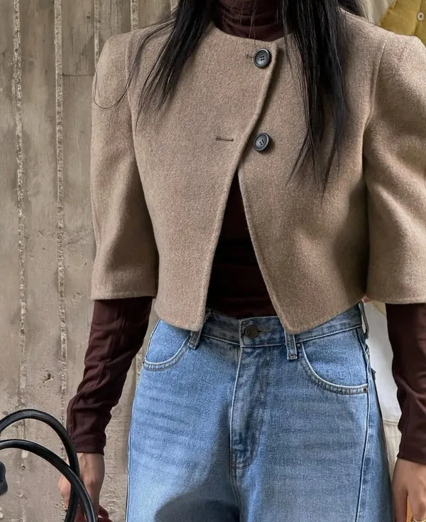 25IH11 短版交叉扣壓縮100%羊絨短外套 2色