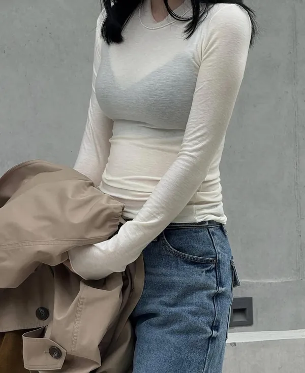 25IH14 天絲羊毛木耳滾邊圓領長T 4色