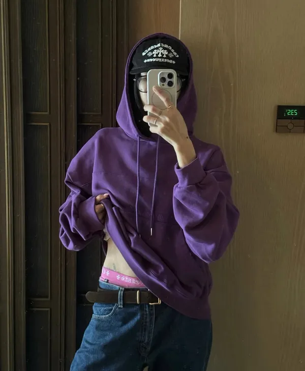 25IH16 品牌挺料電繡薄毛巾連帽帽T 2色
