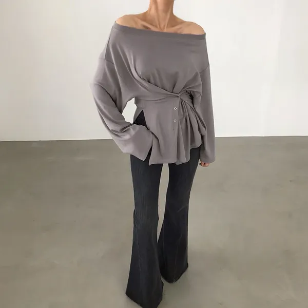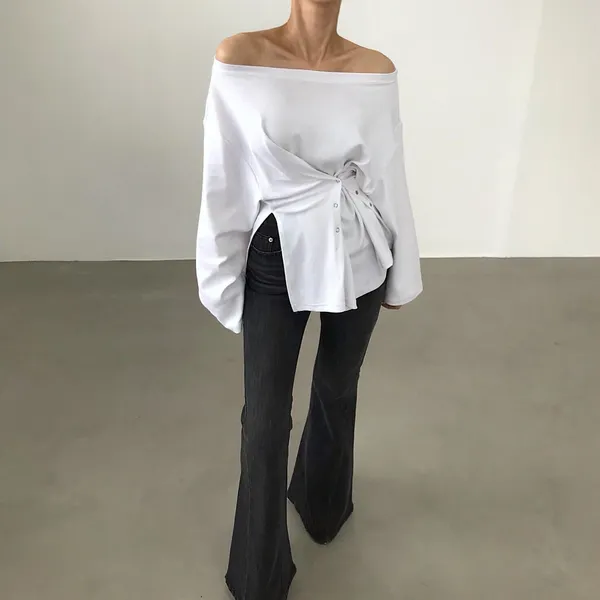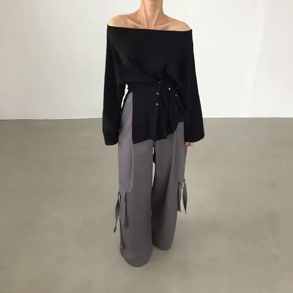 25II16 側斜扣縮腰造型中長版上衣 3色