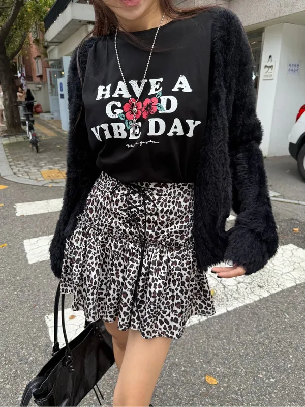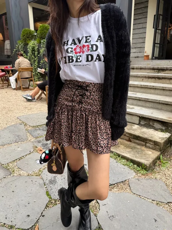 25IJ05 馬甲綁繩雪紡豹紋短裙 2色