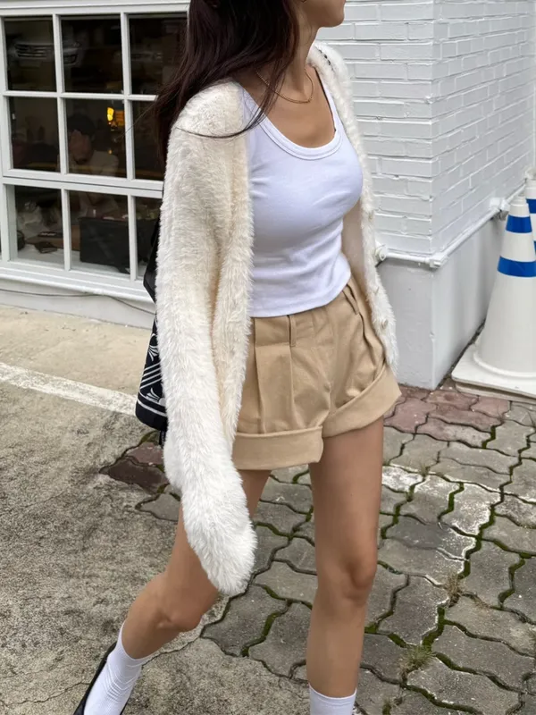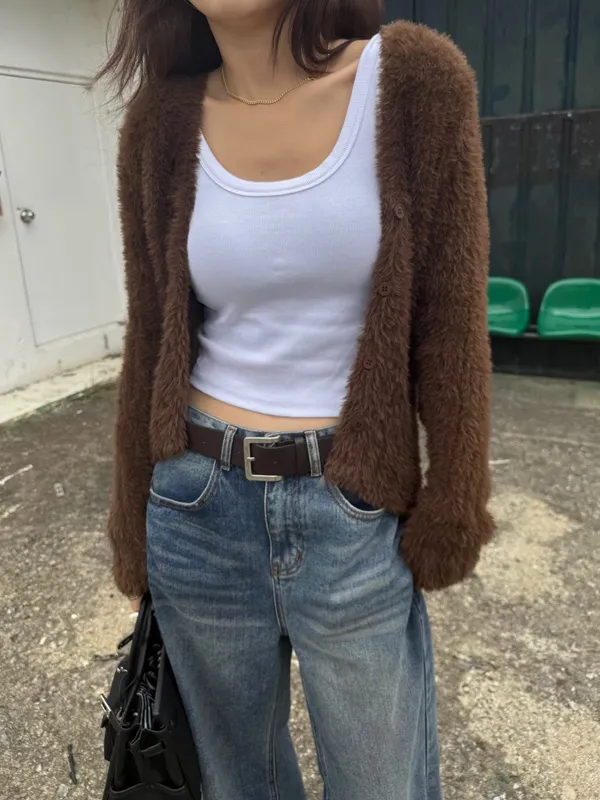 25IJ06 開襟長毛毛中長版罩衫 3色