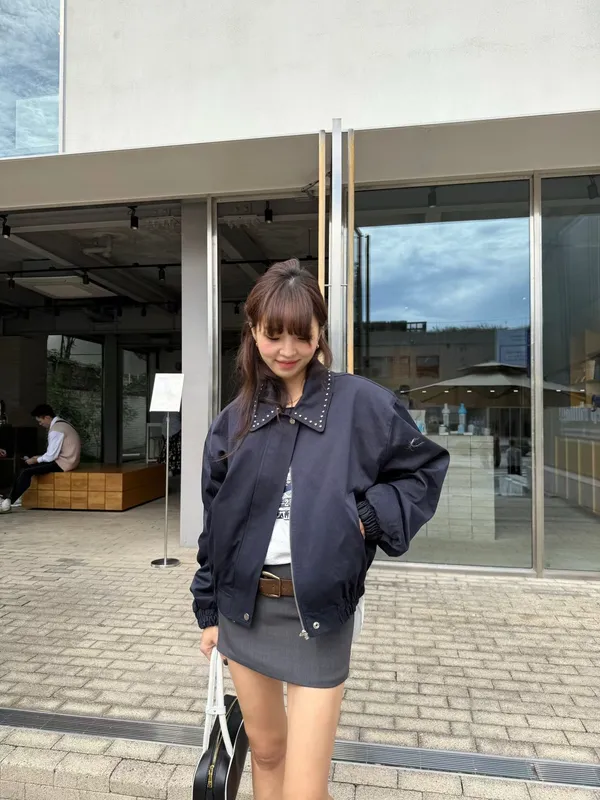 25IJ12 歐膩獨家折扣)鉚釘扣領密織線挺料夾克外套 2色