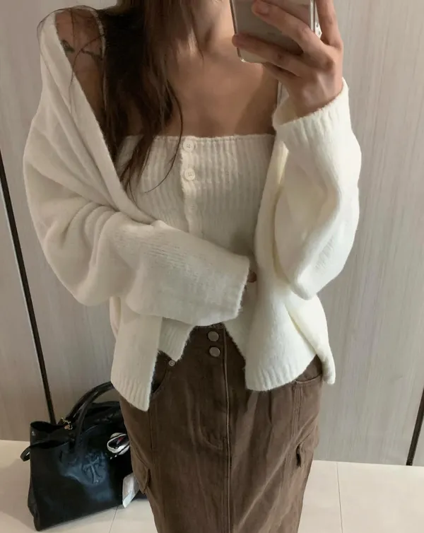 25IK05 羊毛平口排扣背心+長袖罩衫 5色