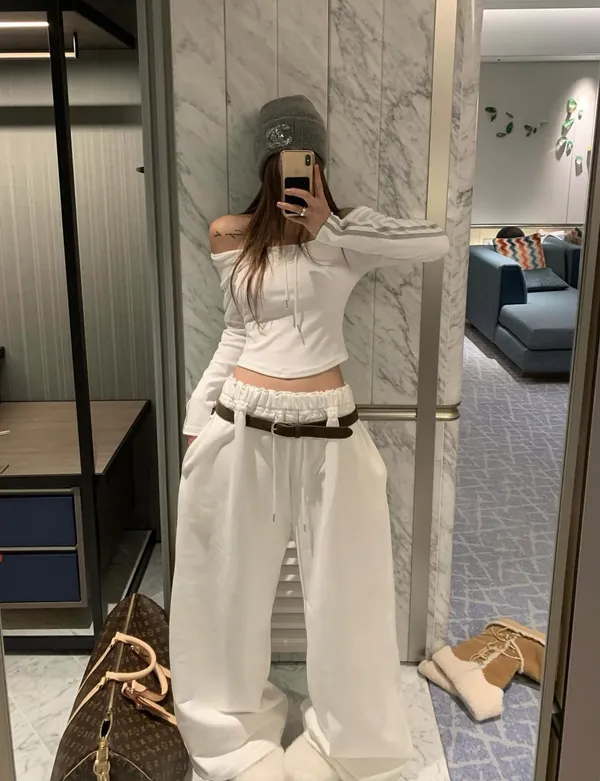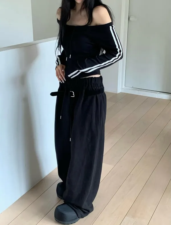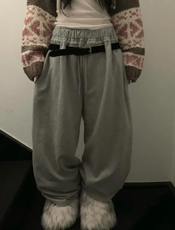 25IK07 腰帶扣薄毛巾棉長褲 5色