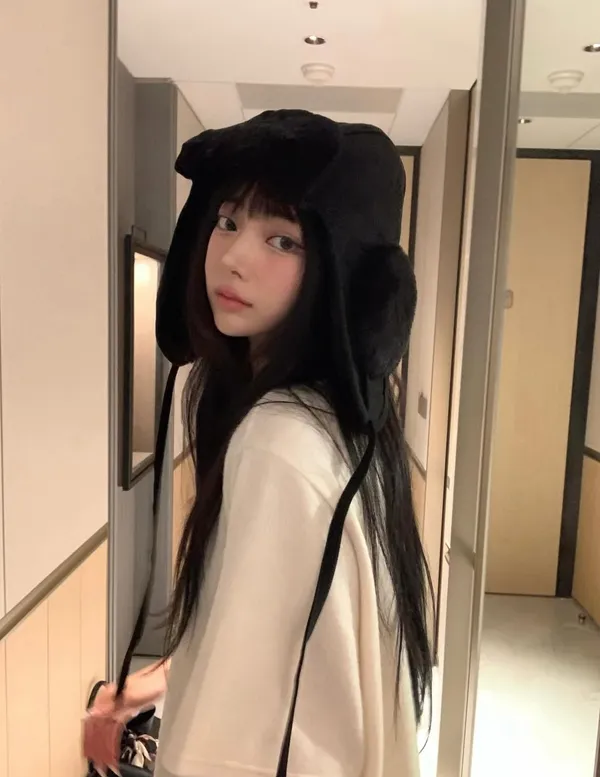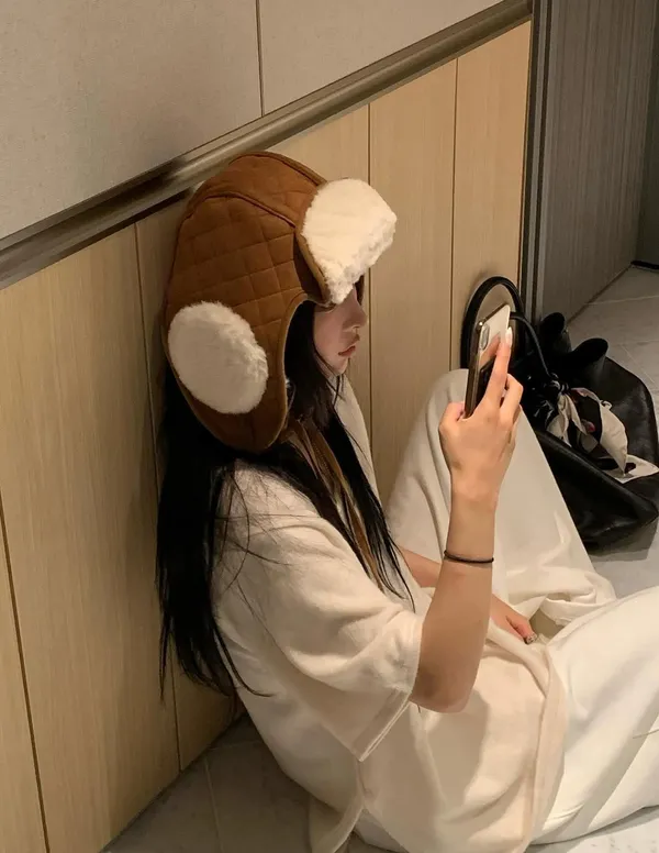 25IK11 羊毛拼麂皮菱紋飛行帽 2色
