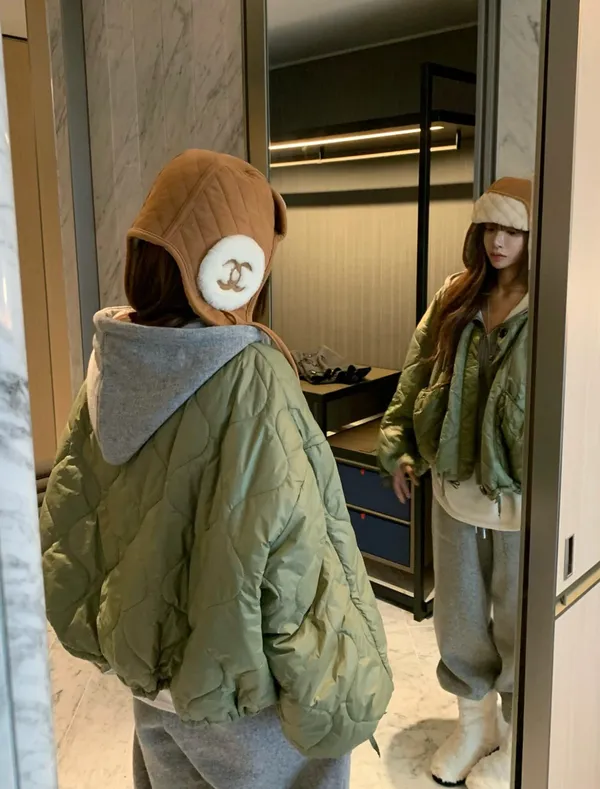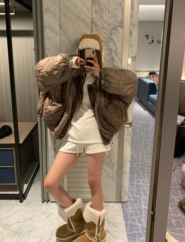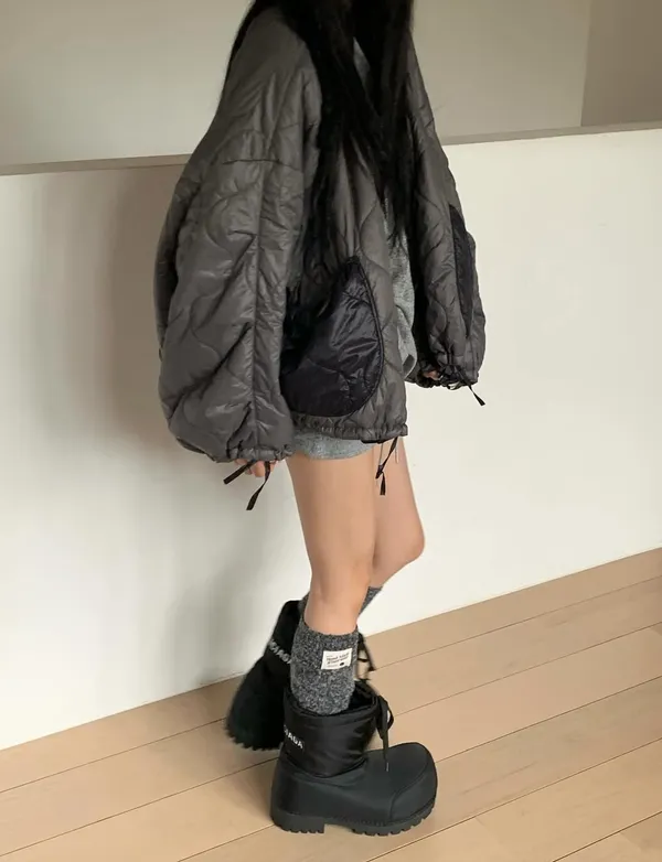 25IK14 兩面穿菱紋羽絨棉下縮繩外套 3色