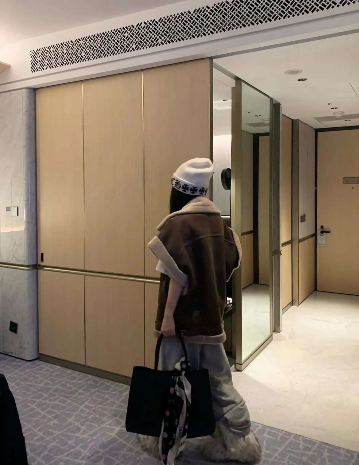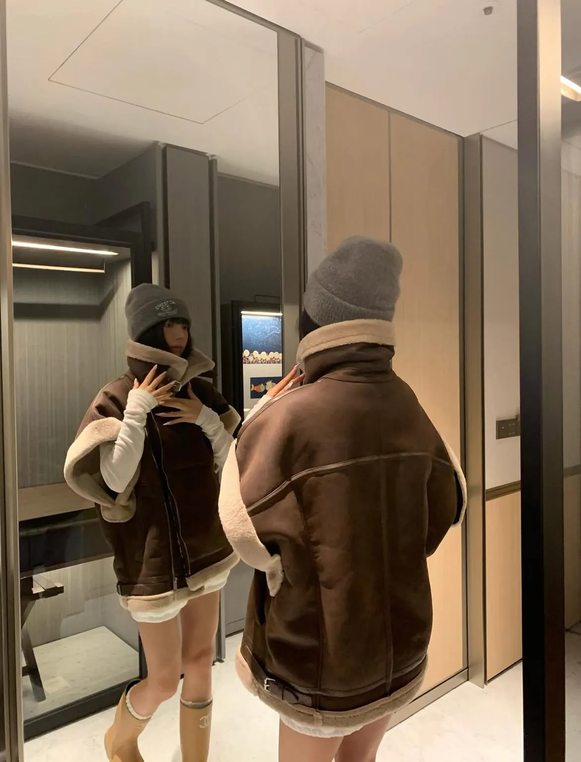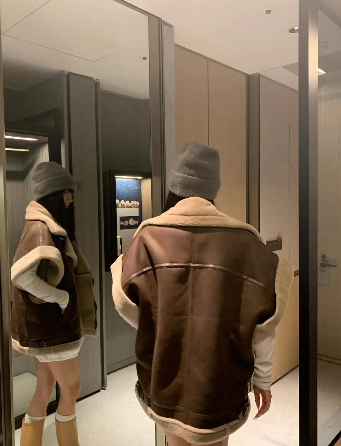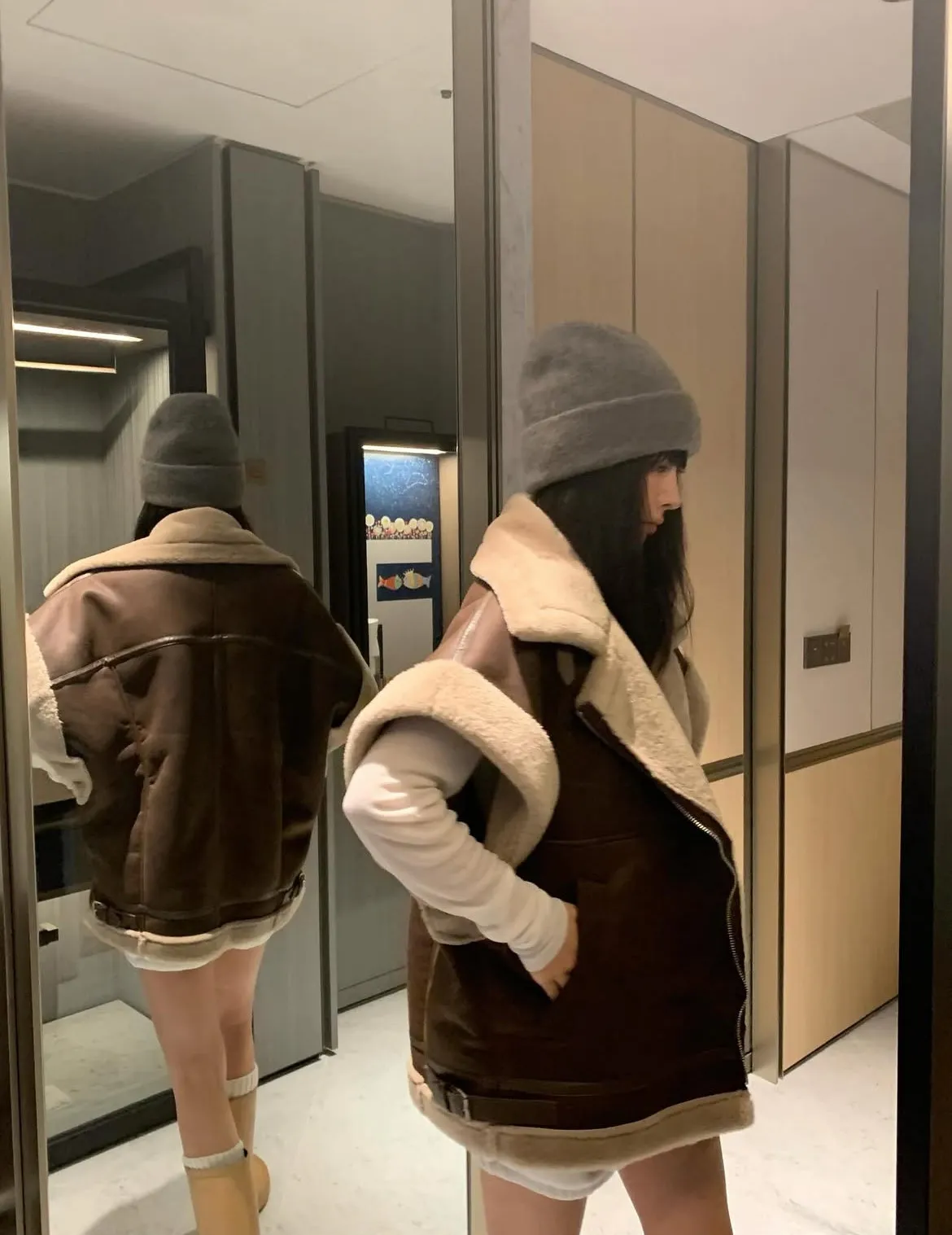 25IK26 中長版麂皮內毯絨毛毛騎士背心