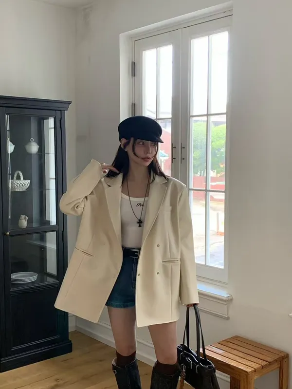 25IL09 中長版俐落雙排扣皮革西外 2色