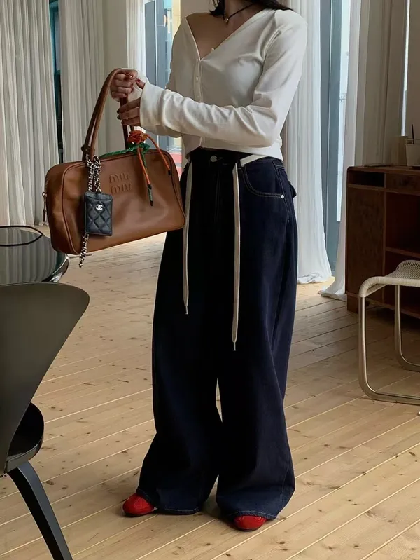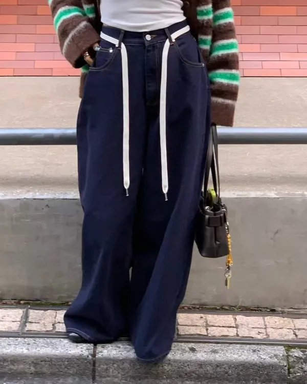 25IL12 原色腰繩後口袋牛仔長褲 SML