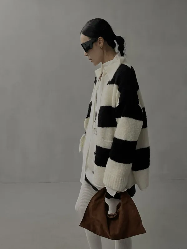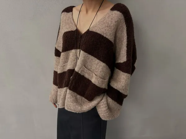 25IS16 粗條文V領中長版羊毛針織罩衫 2色