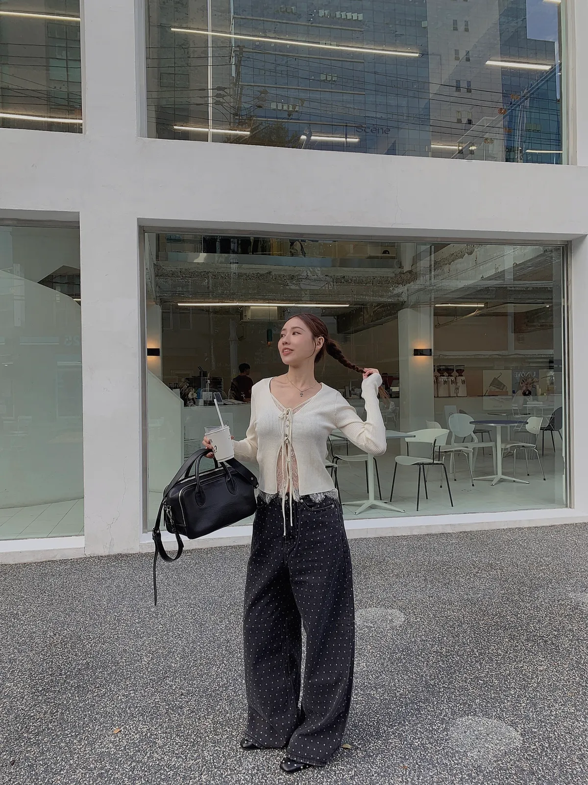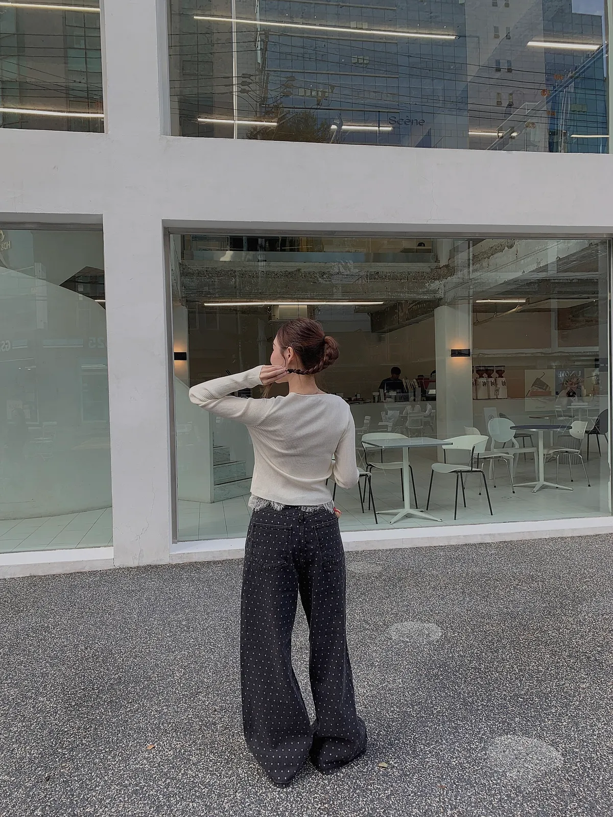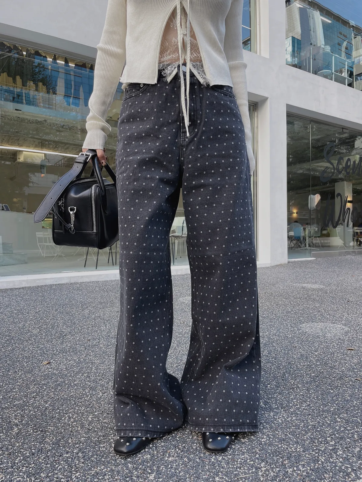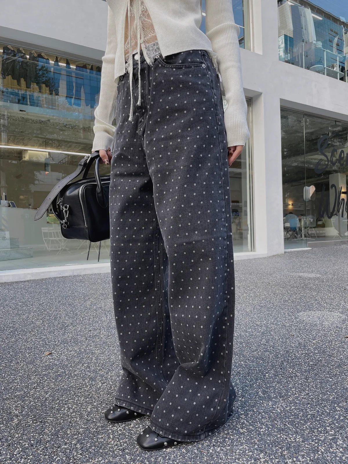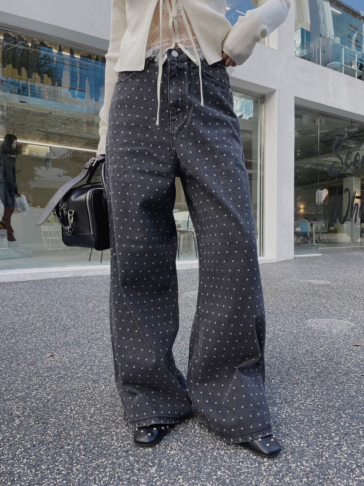 25IS22 點點寬鬆煙灰牛仔長褲 SM