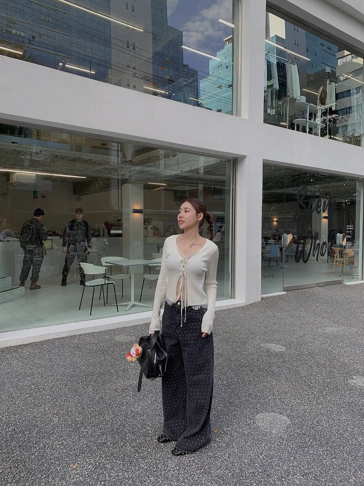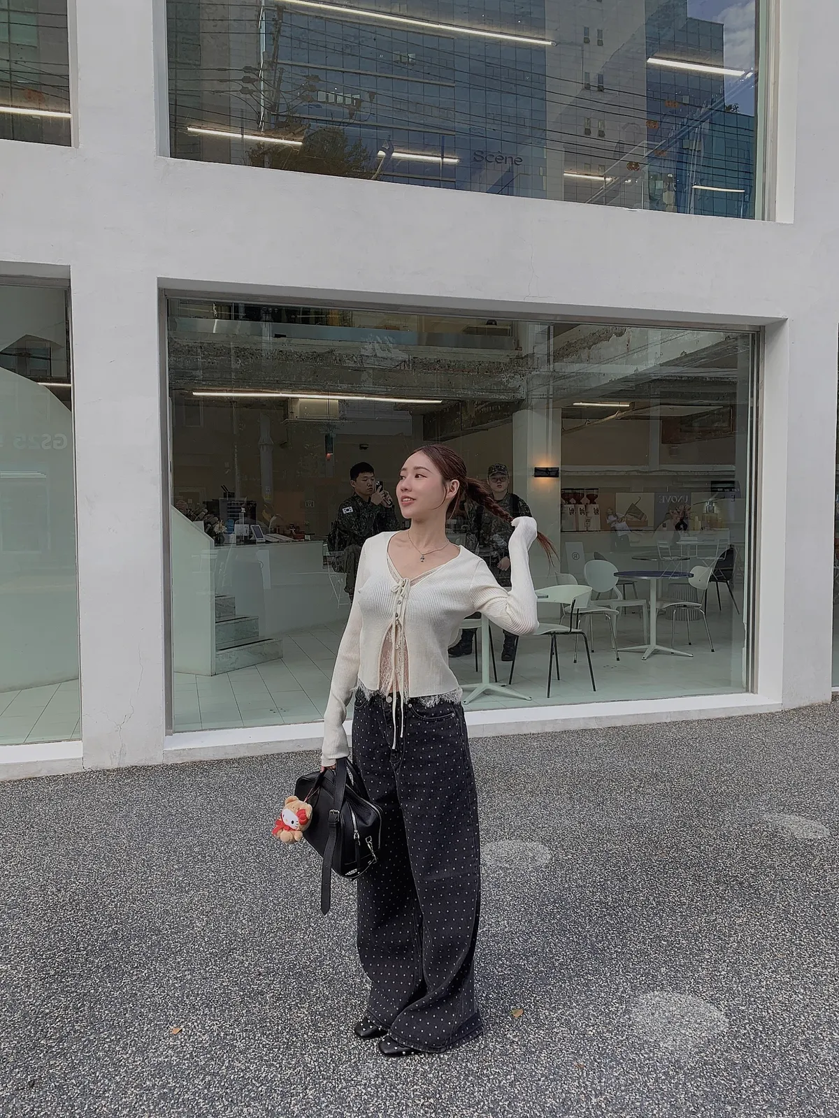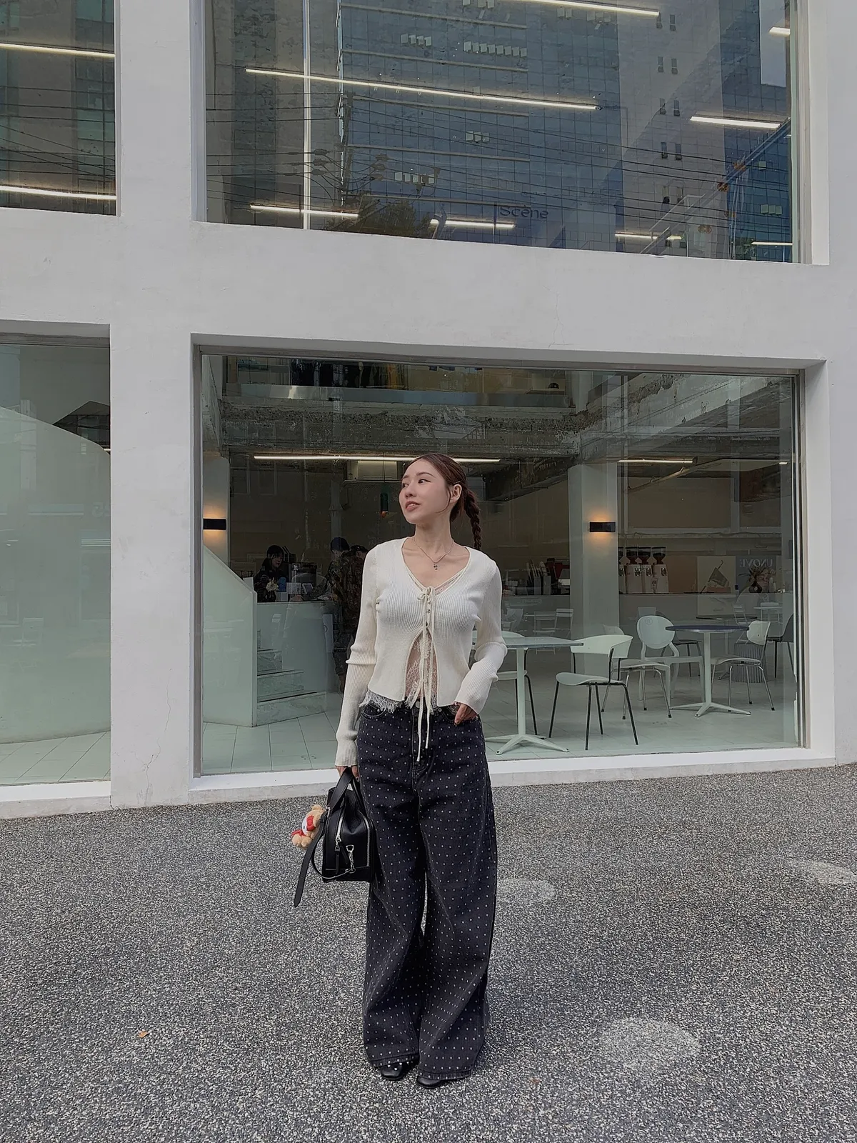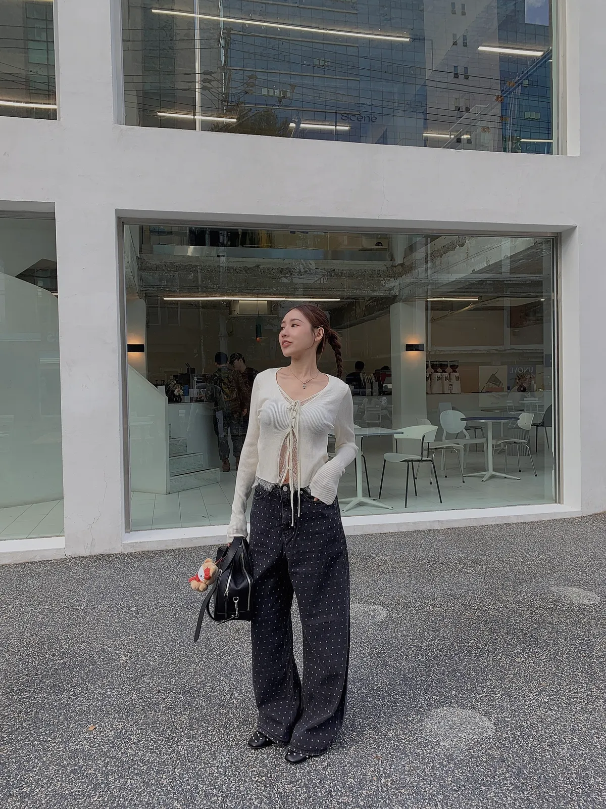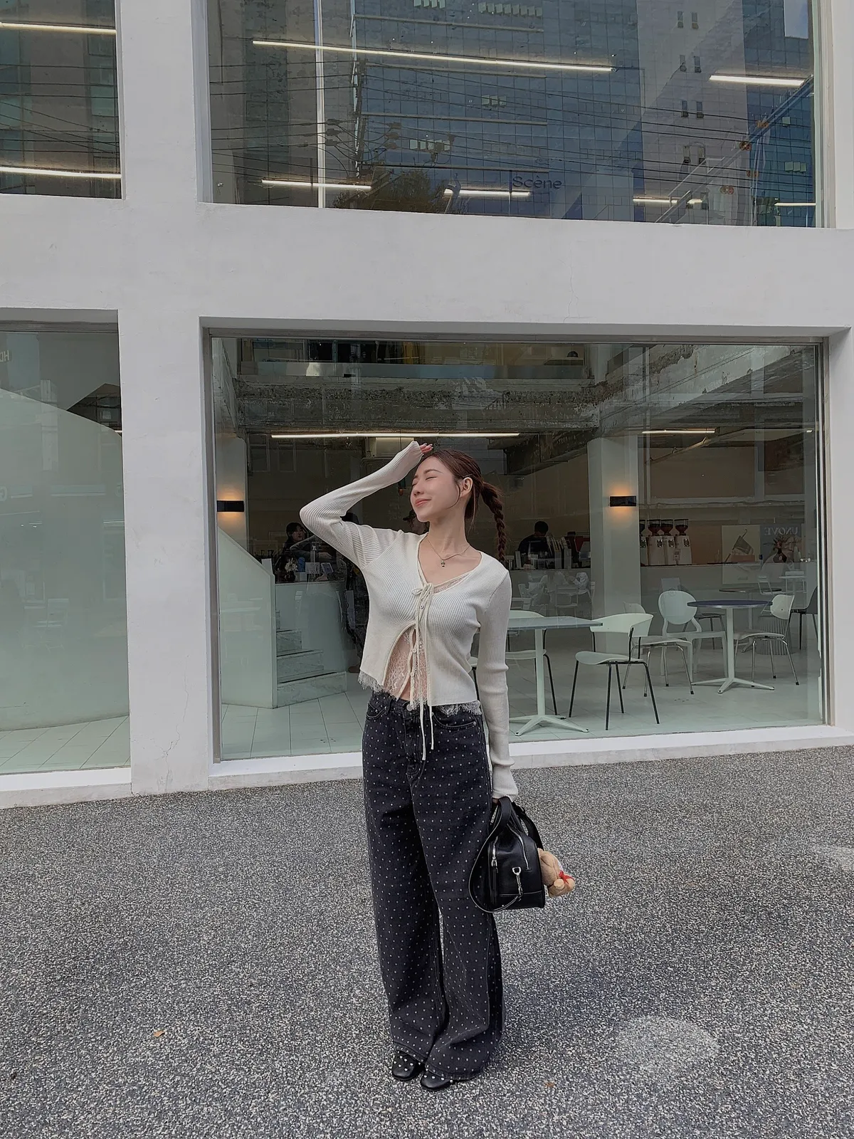 25IS22 點點寬鬆煙灰牛仔長褲 SM