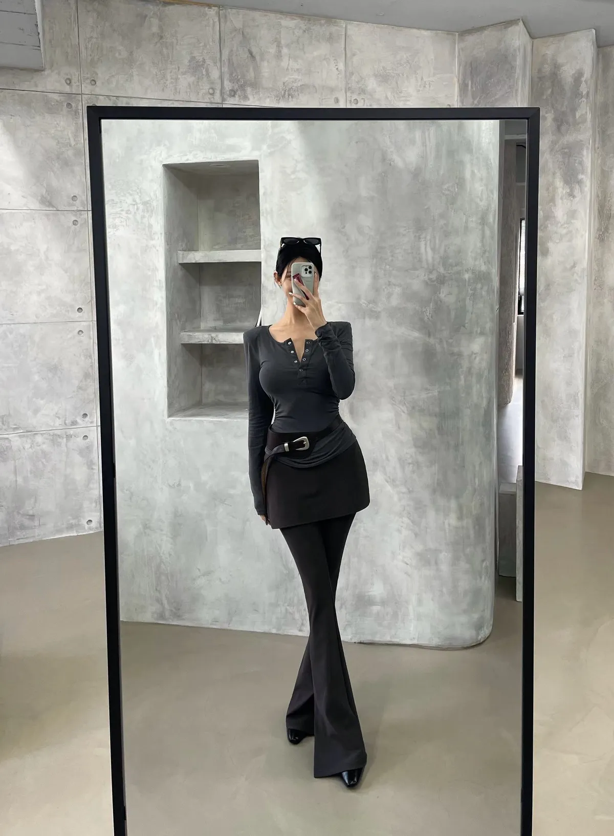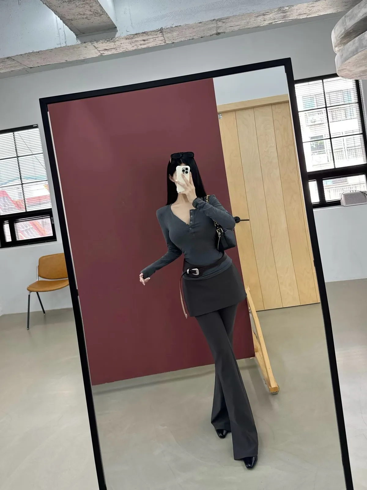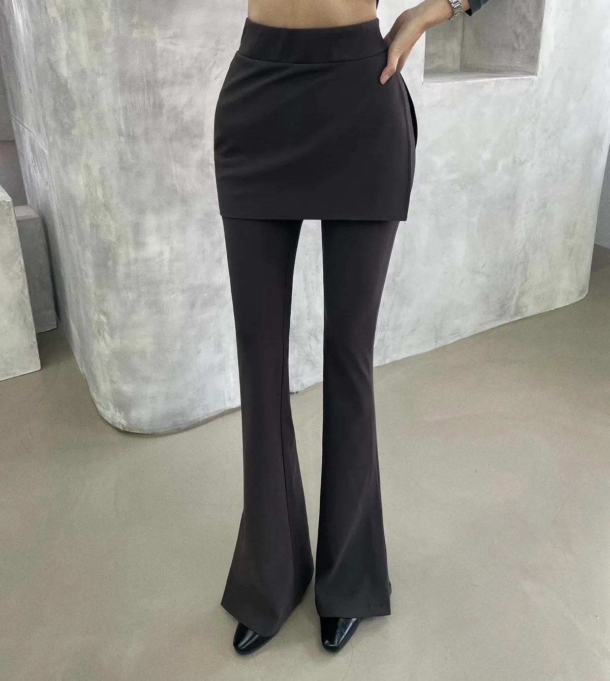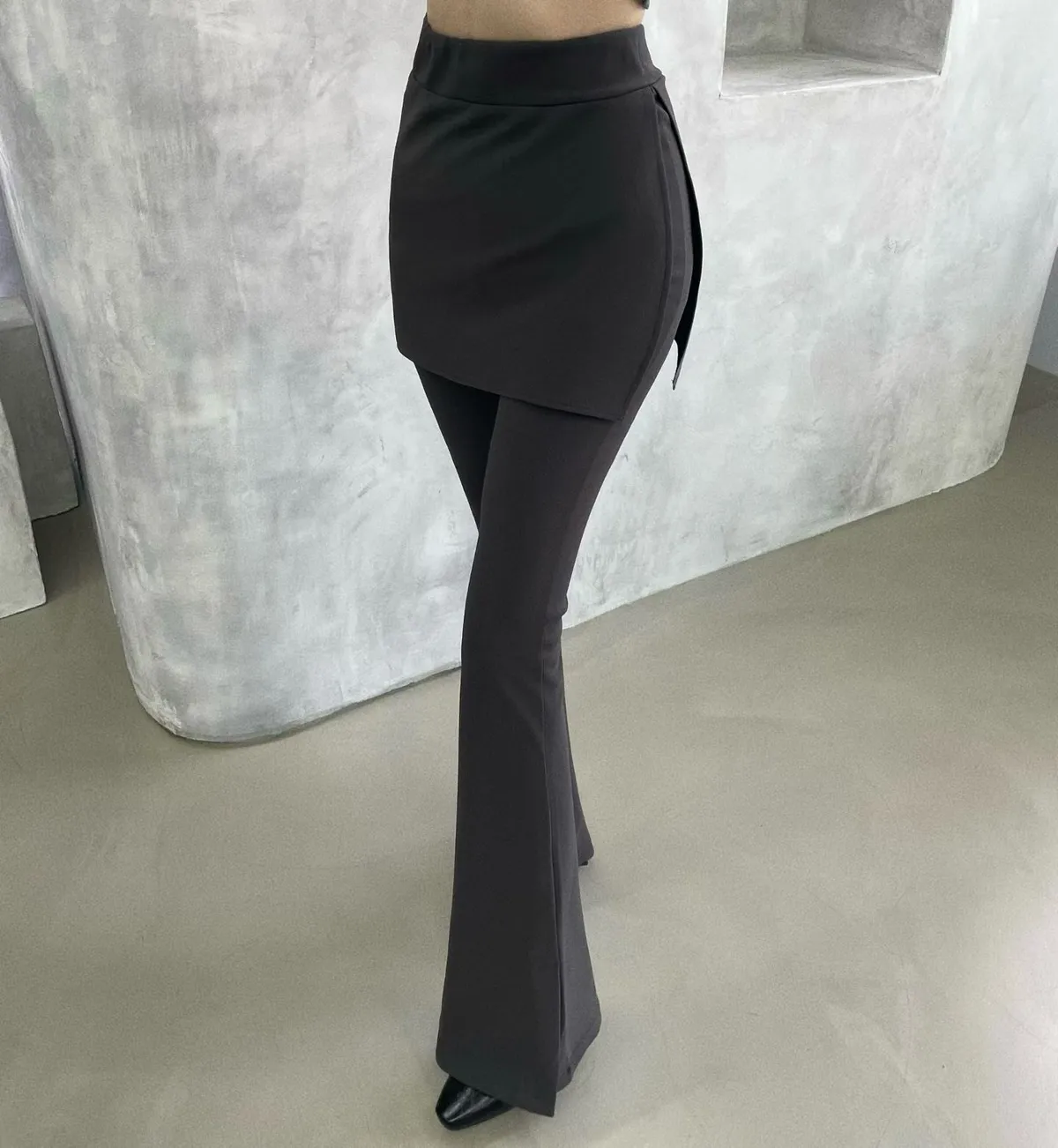 25IS25 假兩件片裙長腿喇叭長褲 SM