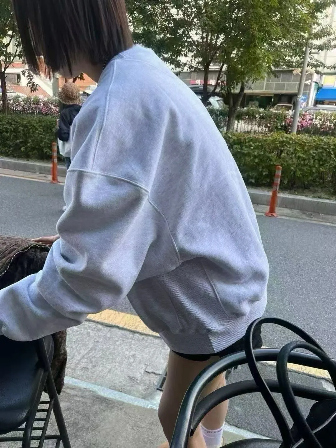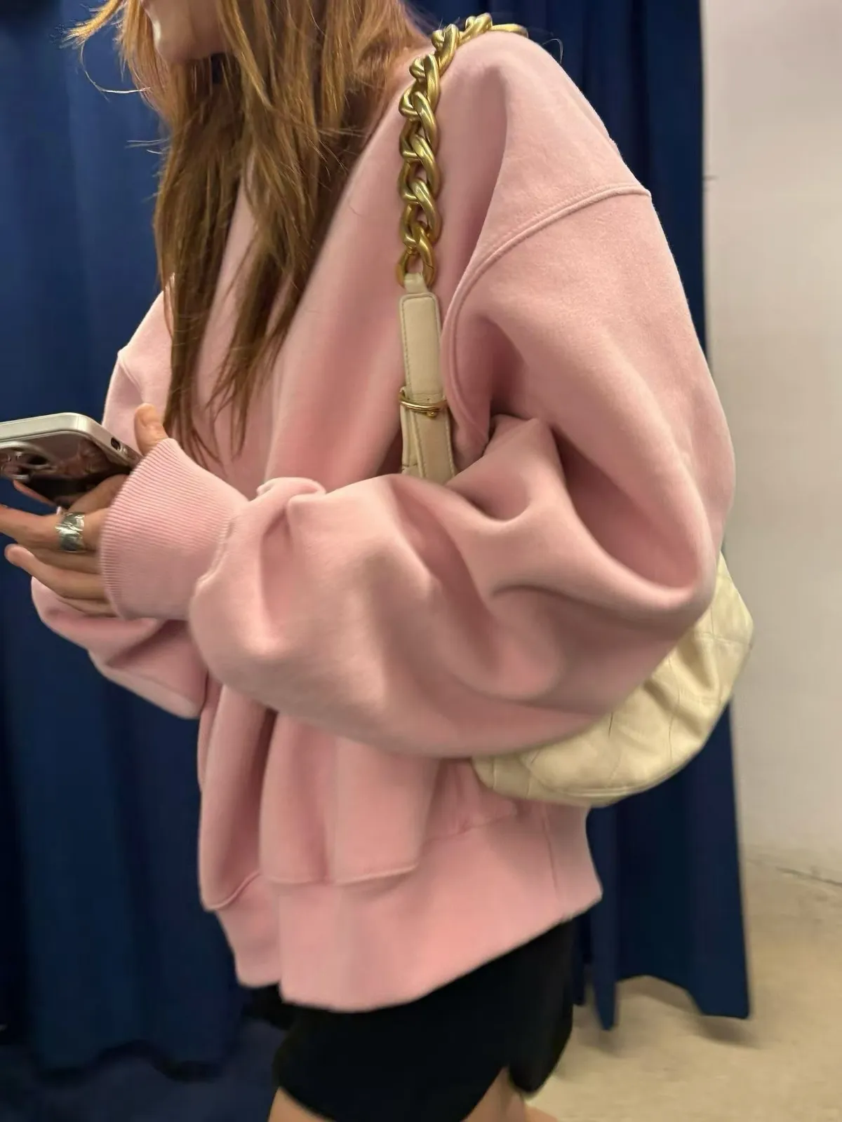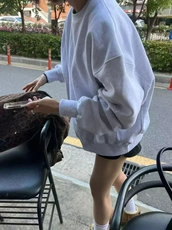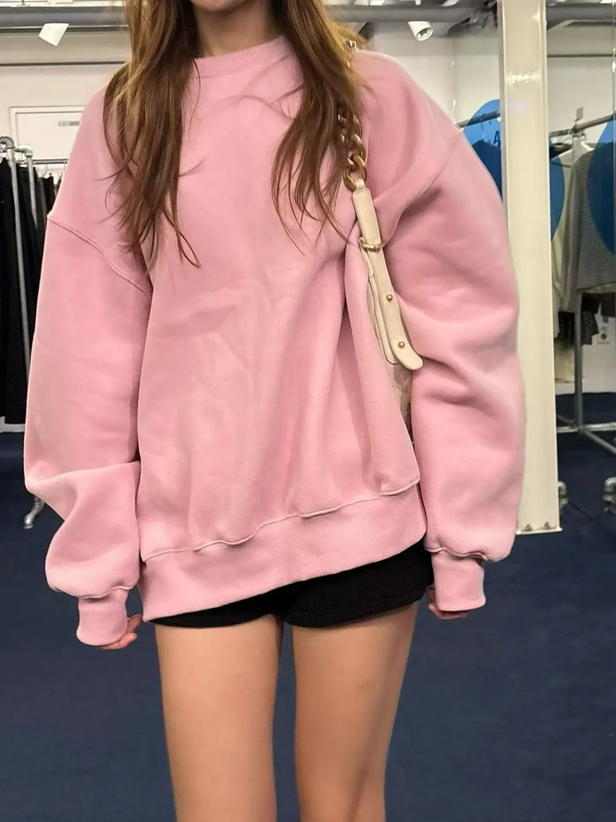25IS28 未賣斷貨款)基礎奶奶色中長版加絨大學T 2色
