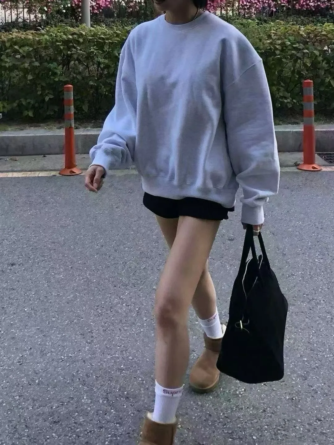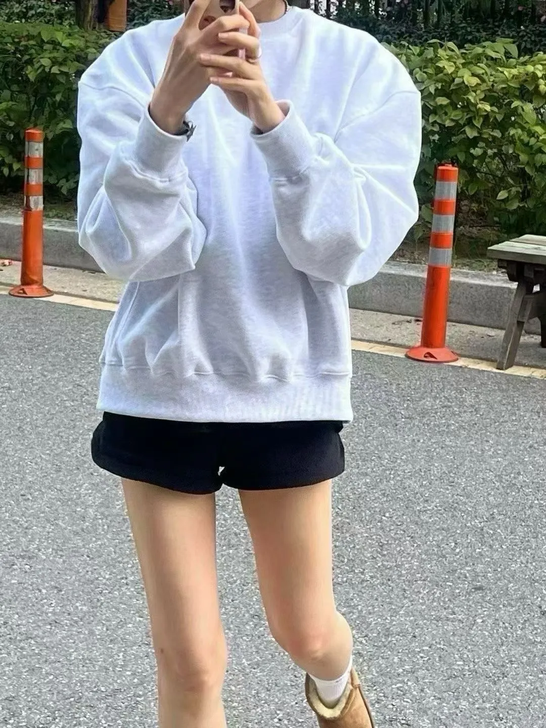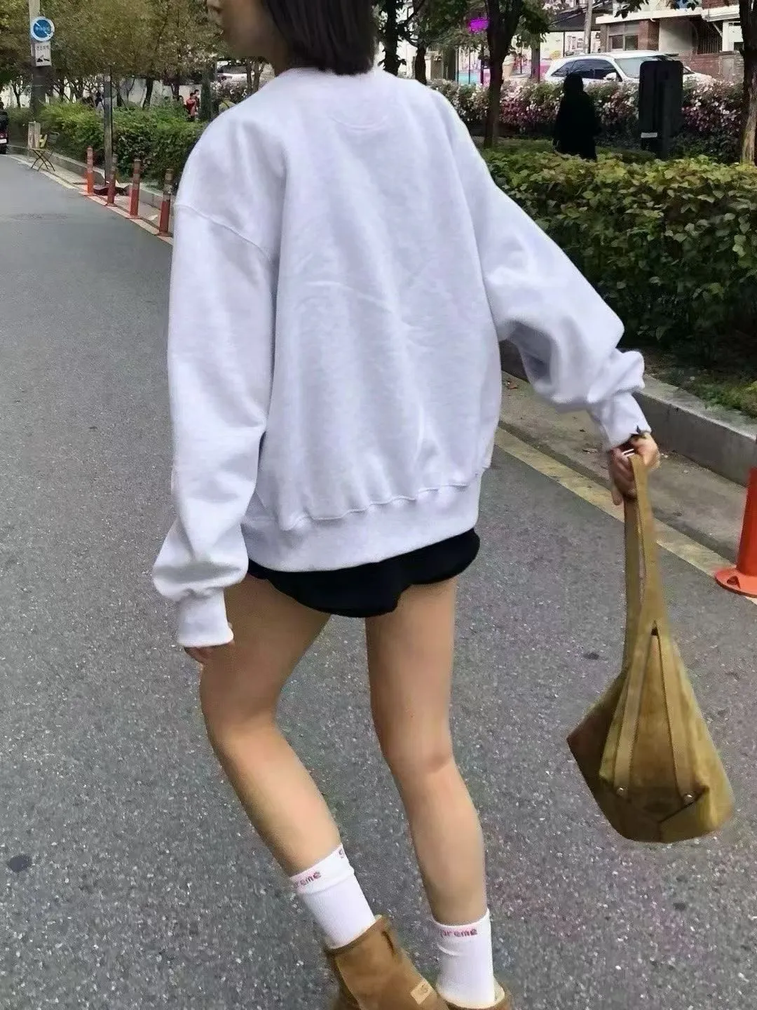 25IS28 未賣斷貨款)基礎奶奶色中長版加絨大學T 2色