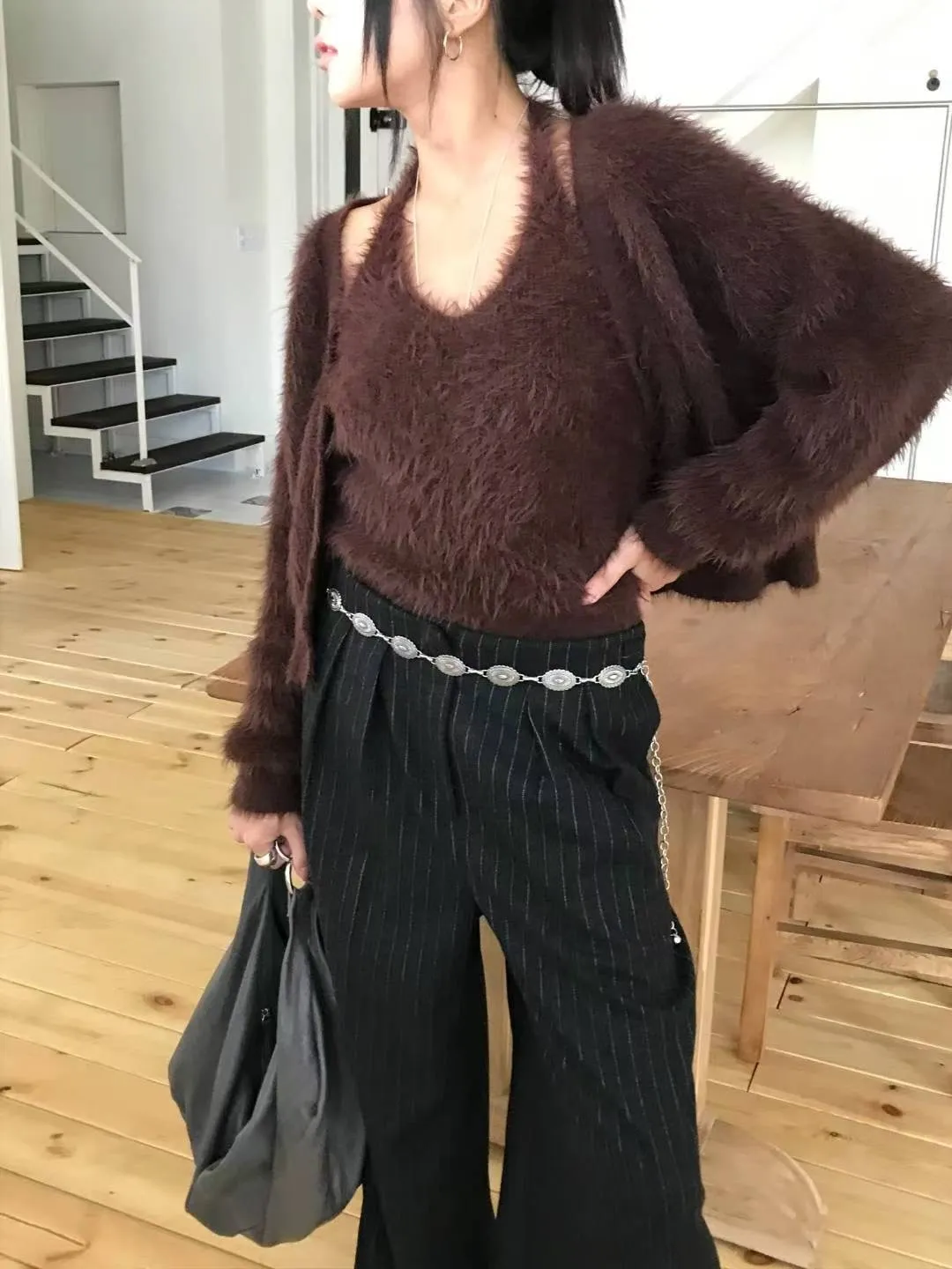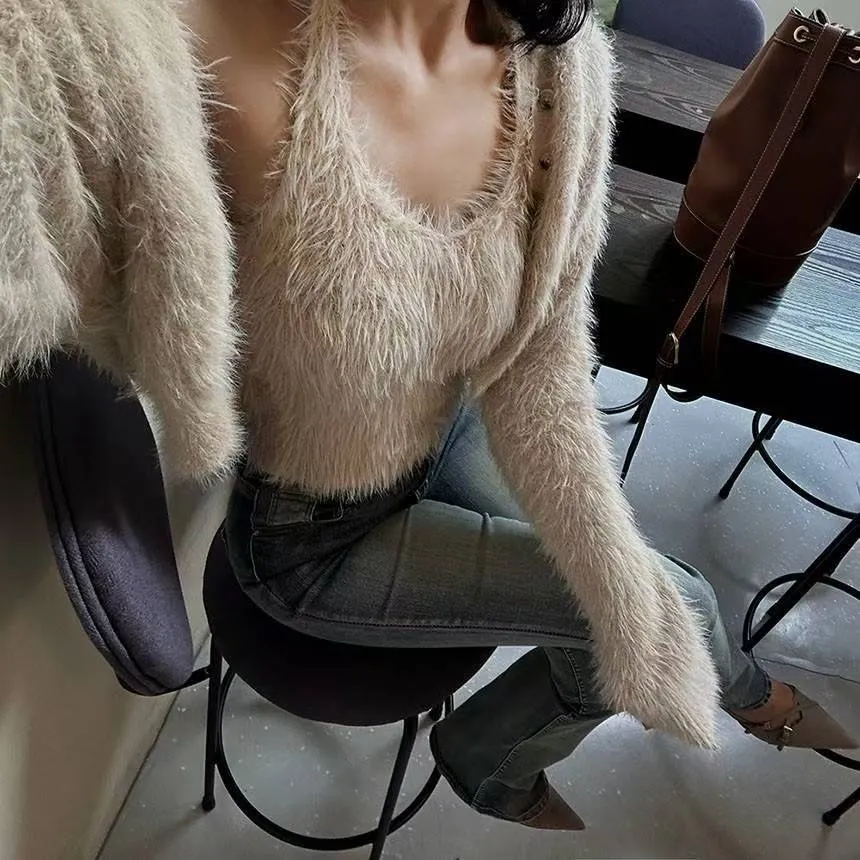 25IS39 排扣長毛毛罩衫 3色