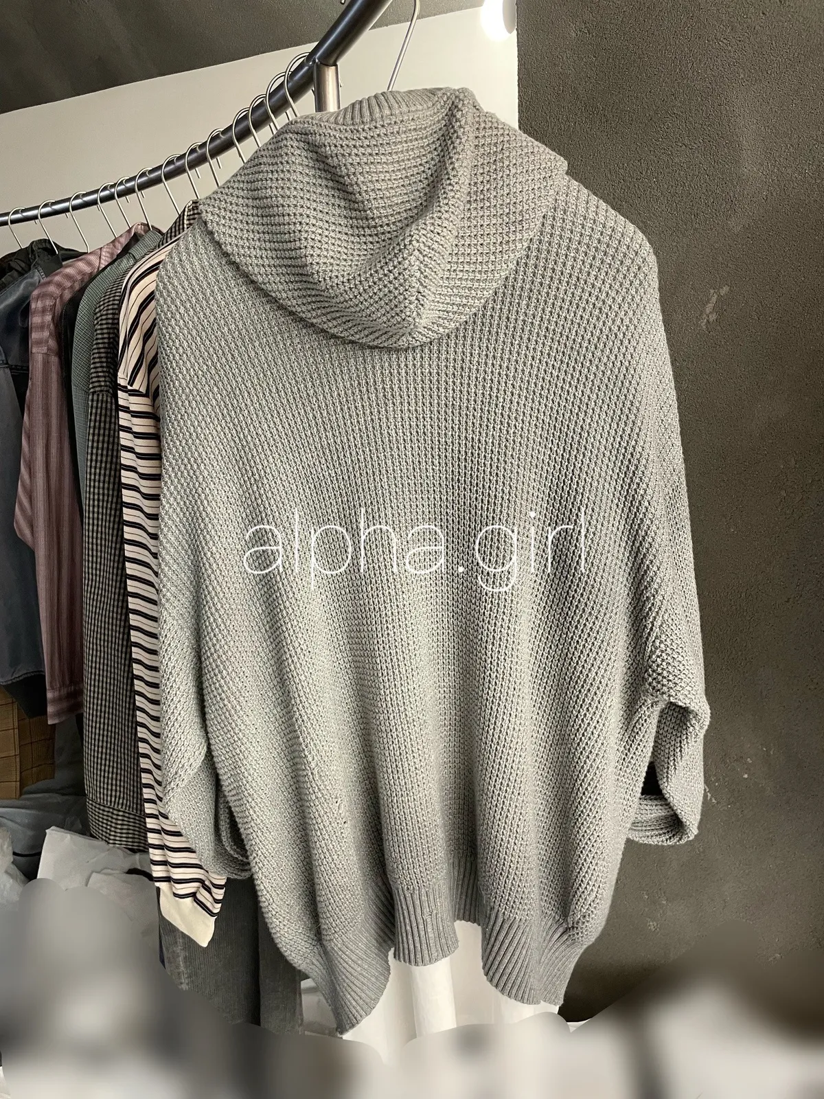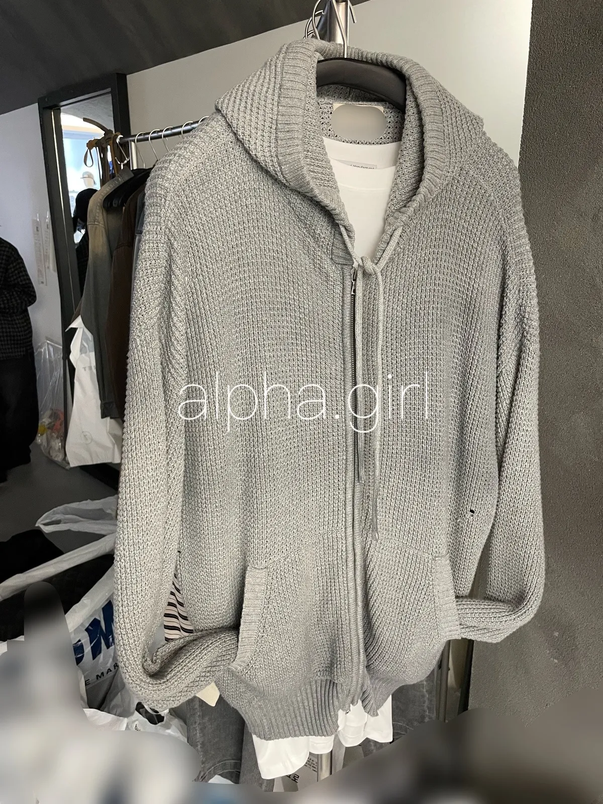 25IS47 (男裝)鬆餅紋針織連帽破壞刷拉鍊外套