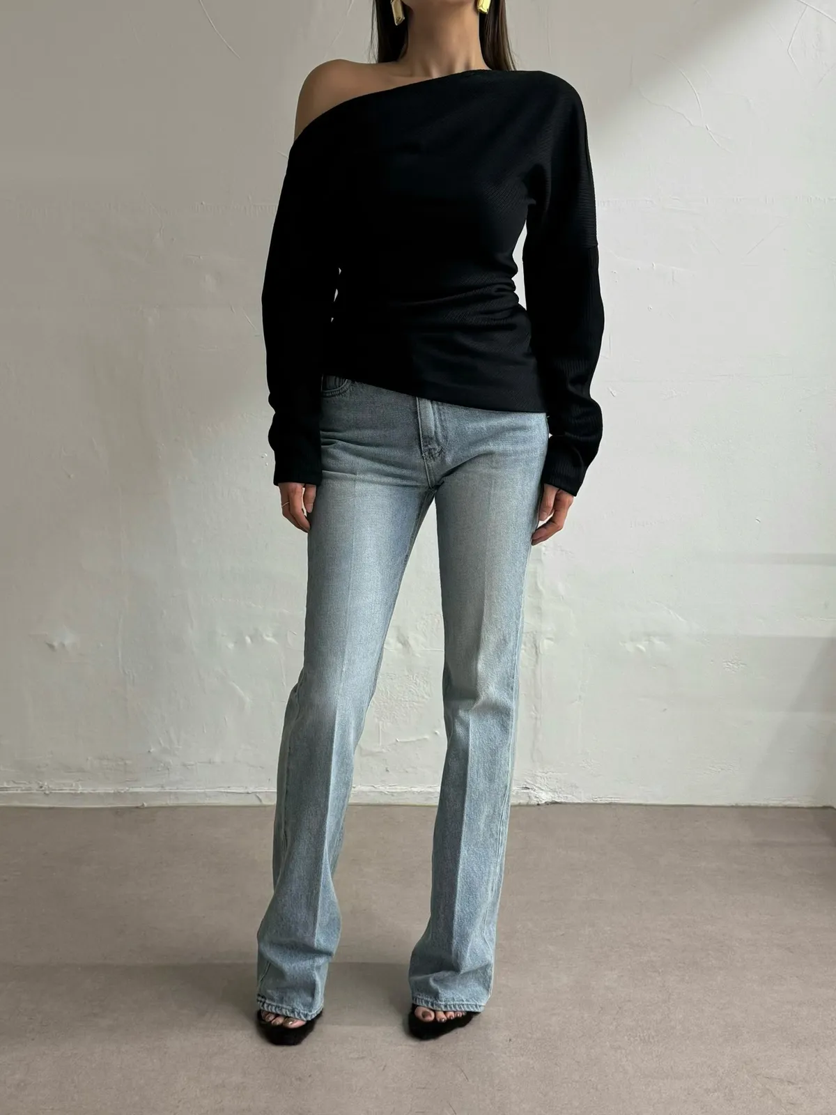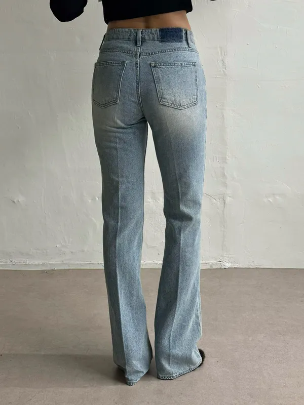 25IS52 歐美淺色長腿小喇叭牛仔褲 SML