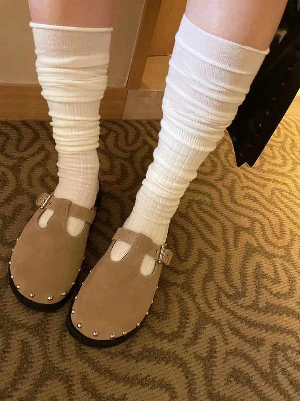 25IS59 透透拚螺紋過膝堆堆棉襪 5色