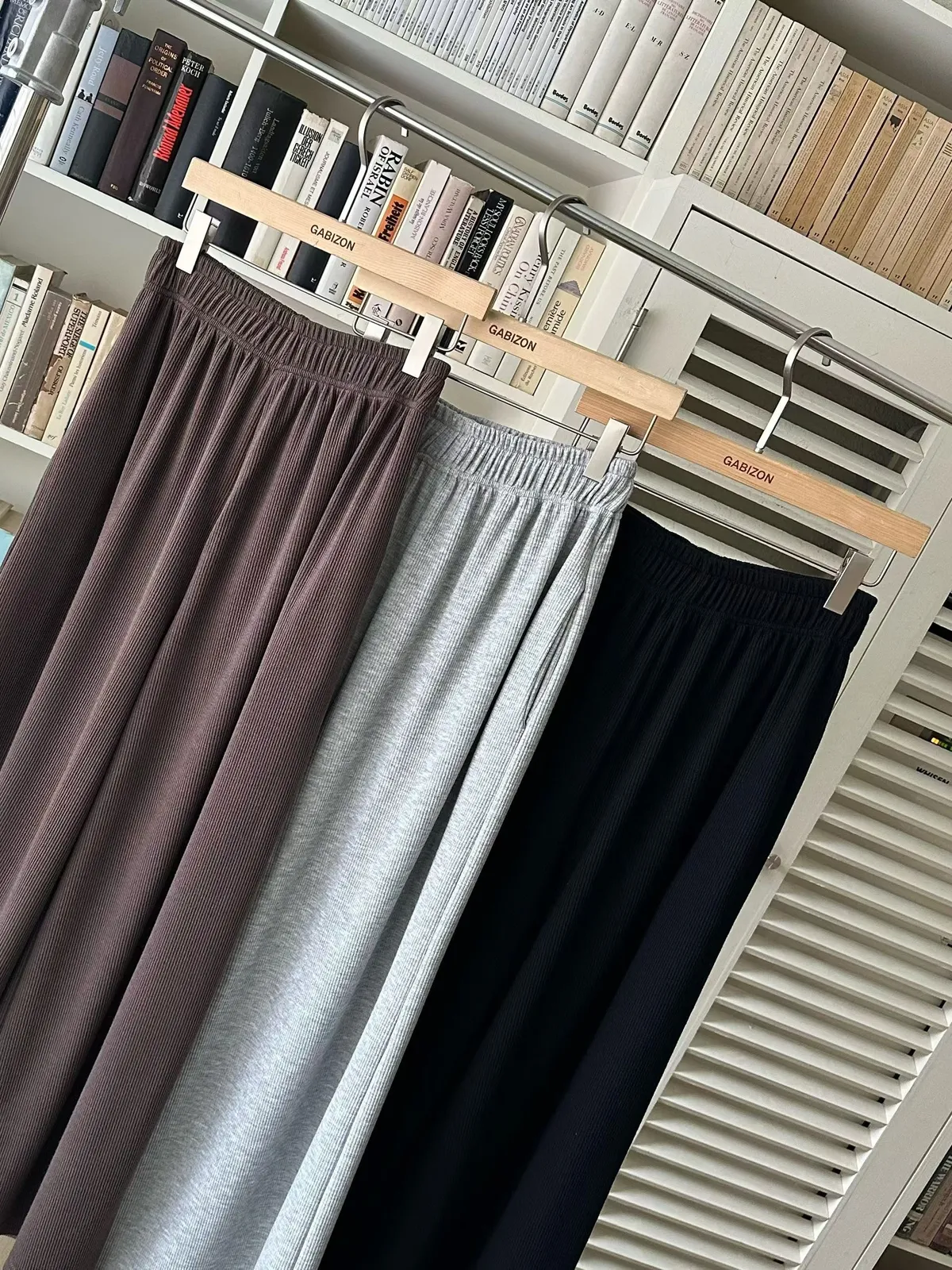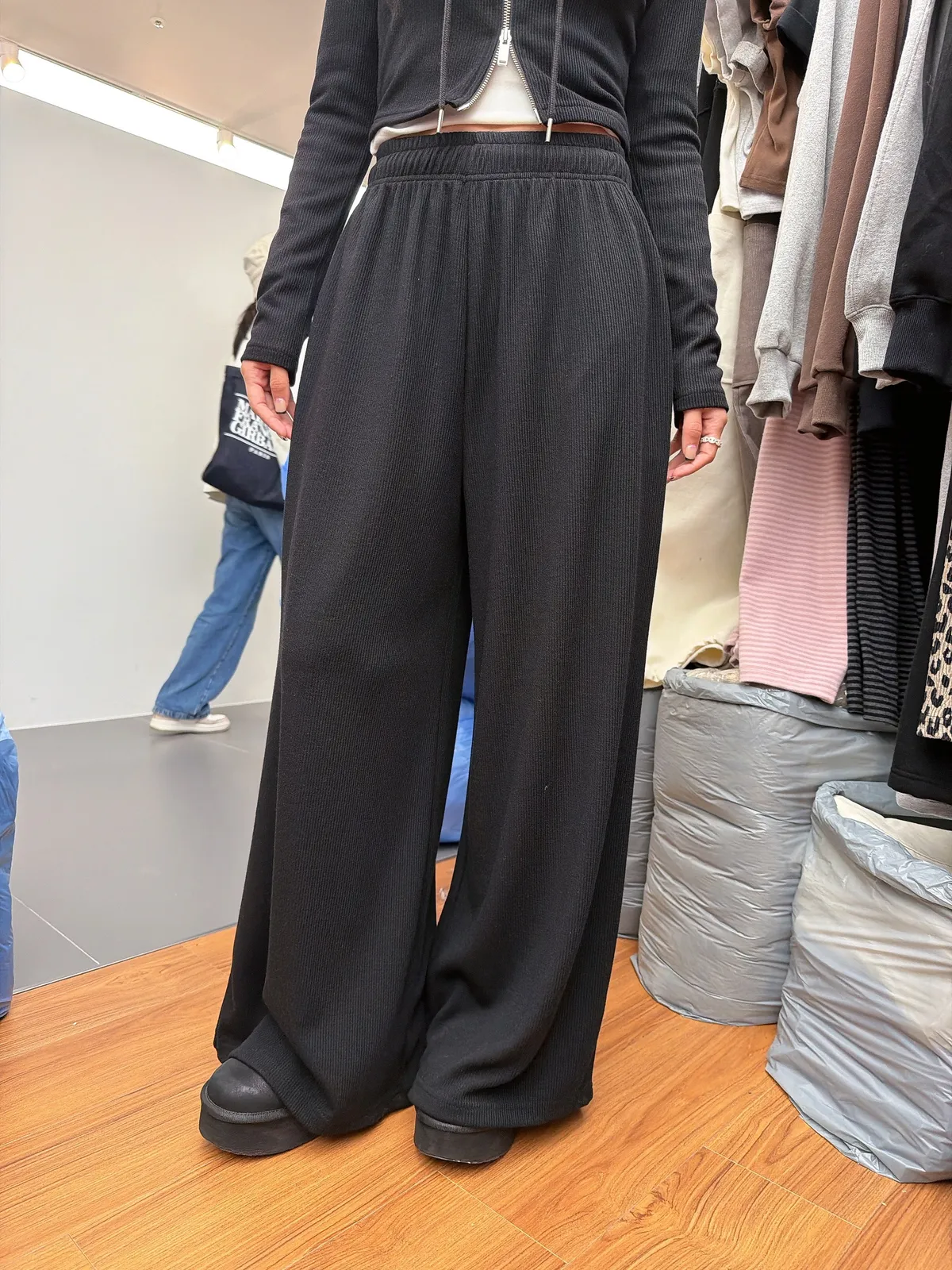 25JA05 羅紋內薄絨鬆緊棉長褲 3色