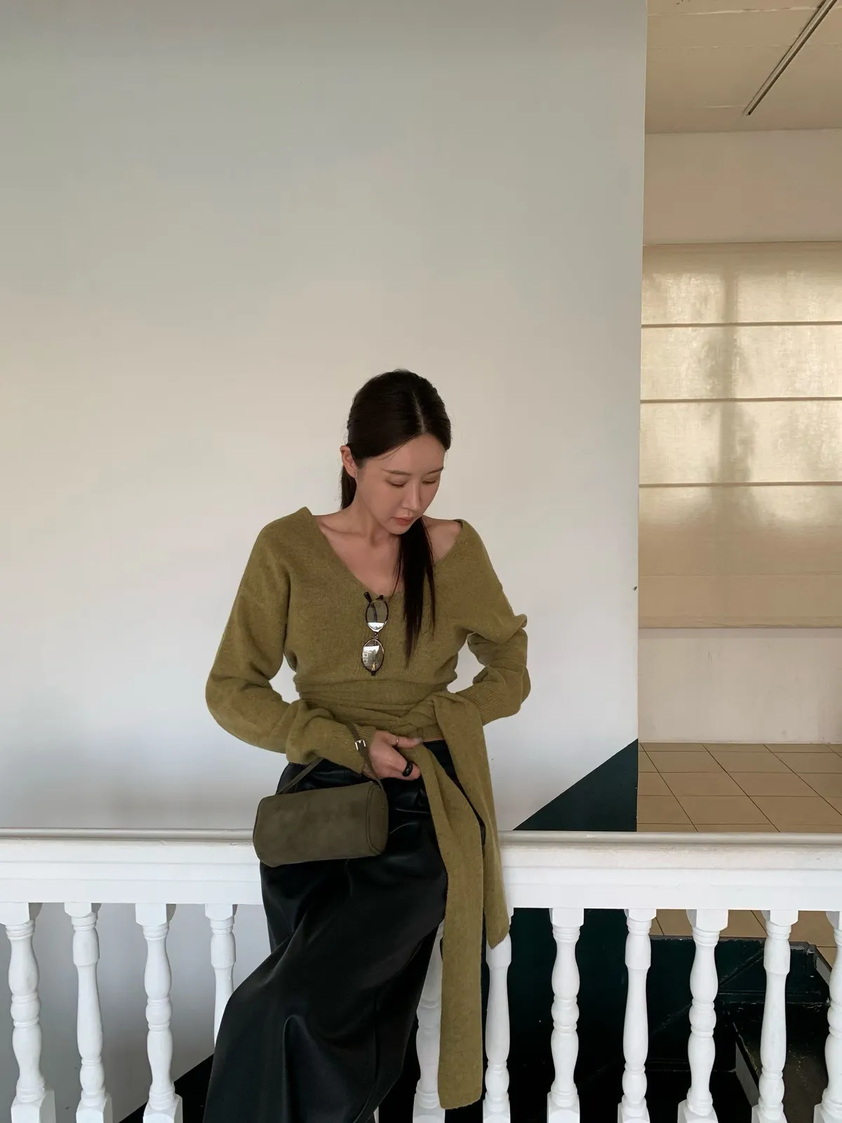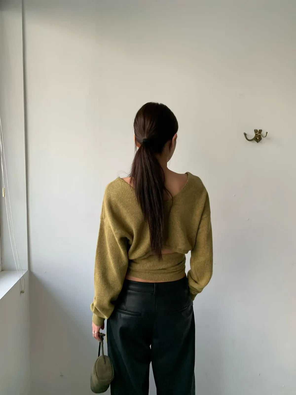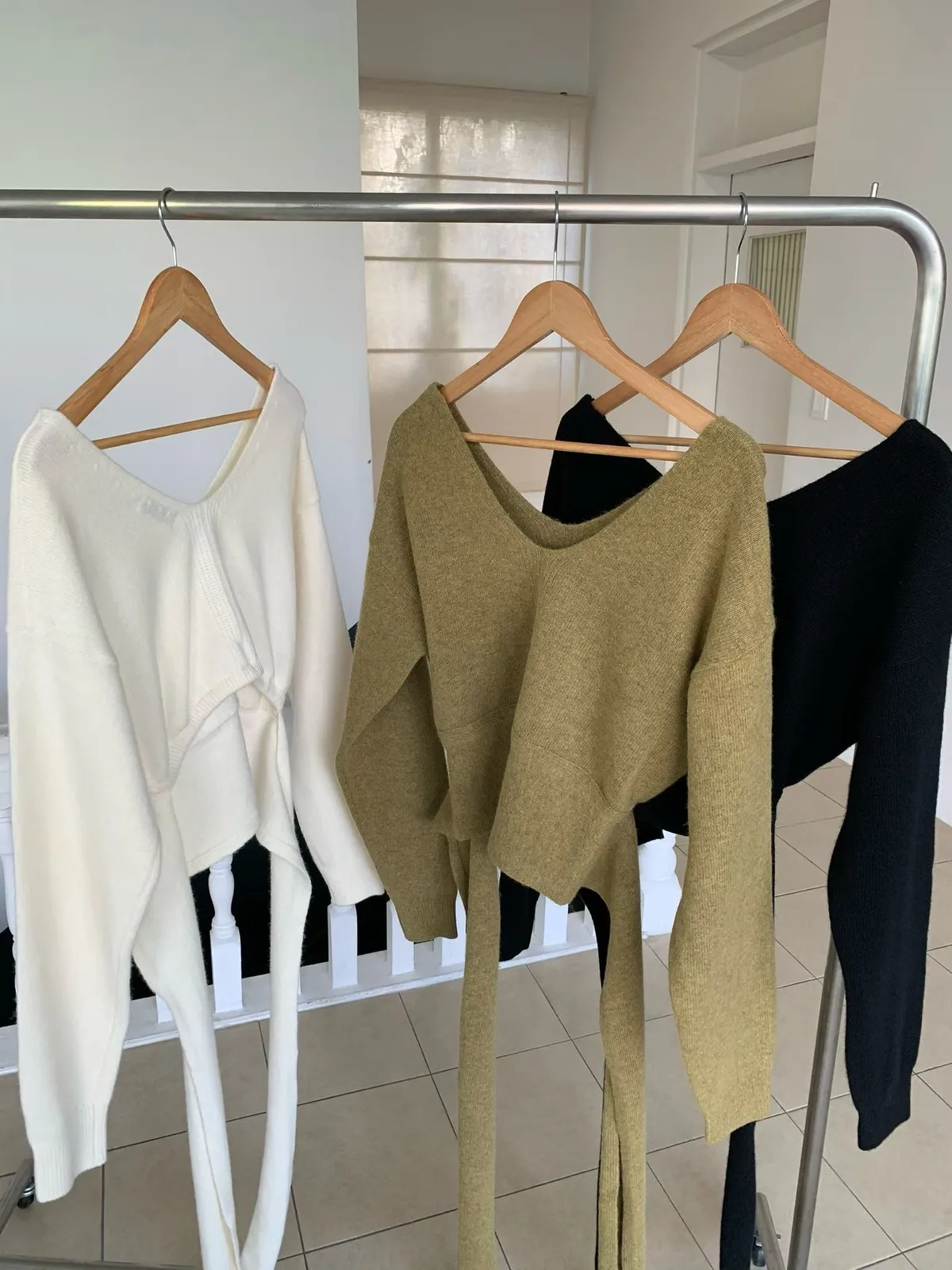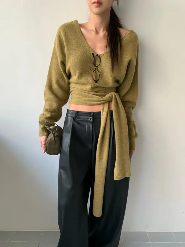 25JB01 V領露腰綁帶針織羊毛上衣 3色
