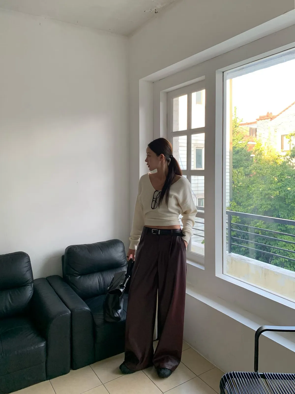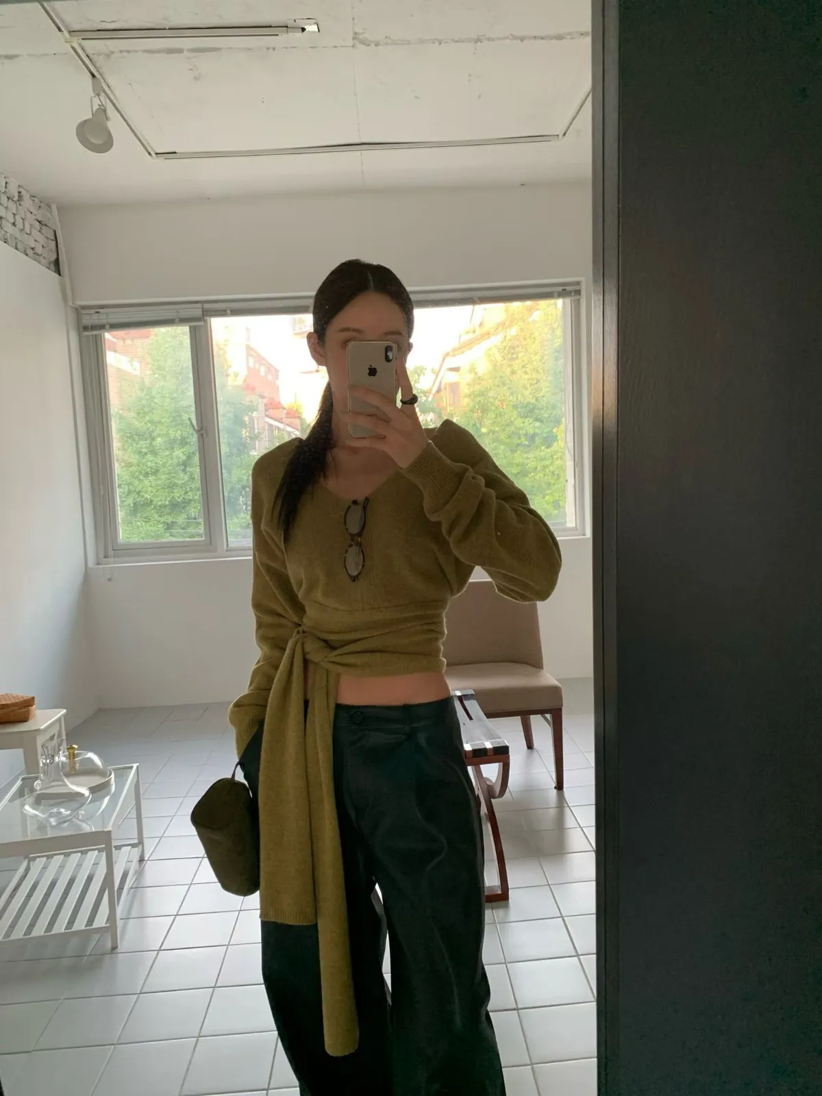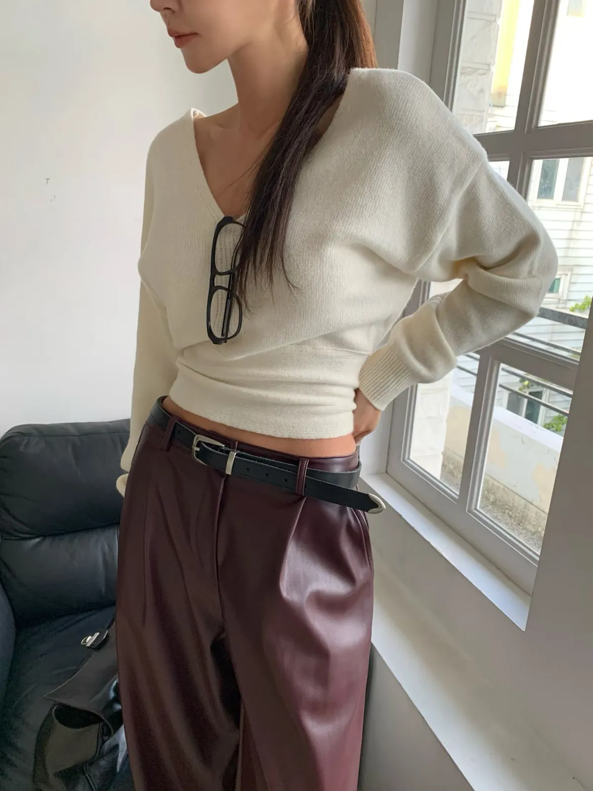 25JB01 V領露腰綁帶針織羊毛上衣 3色
