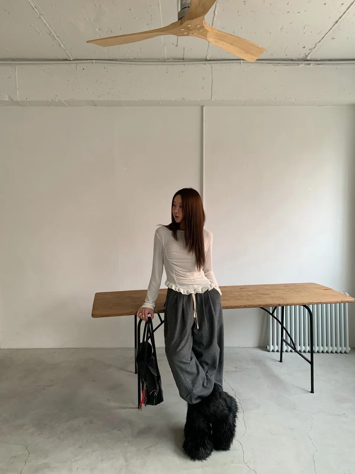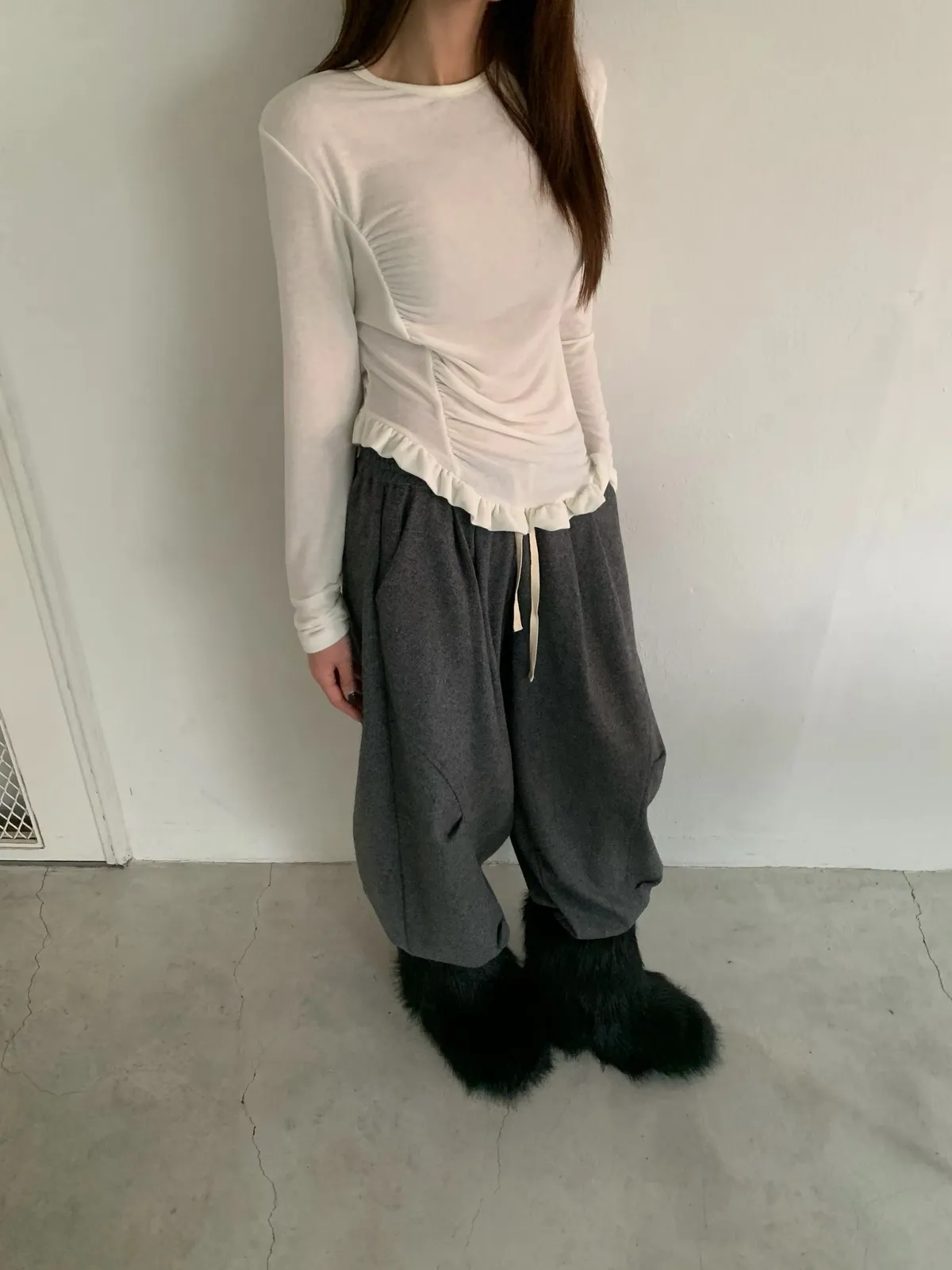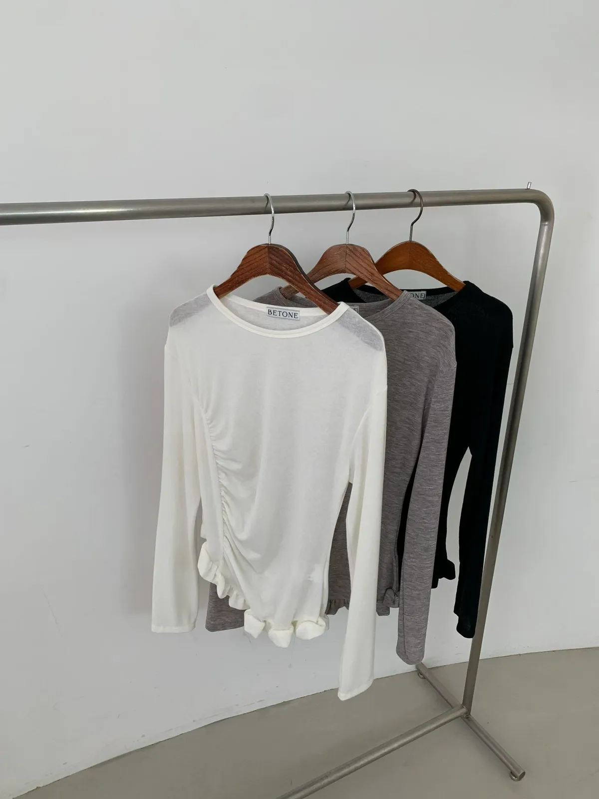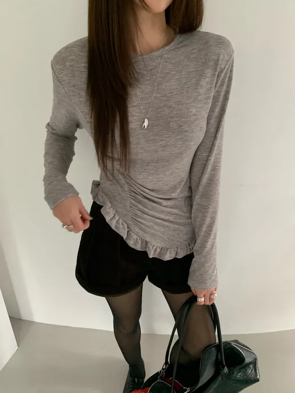 25JB08 荷葉斜下擺腰身打底上衣 3色