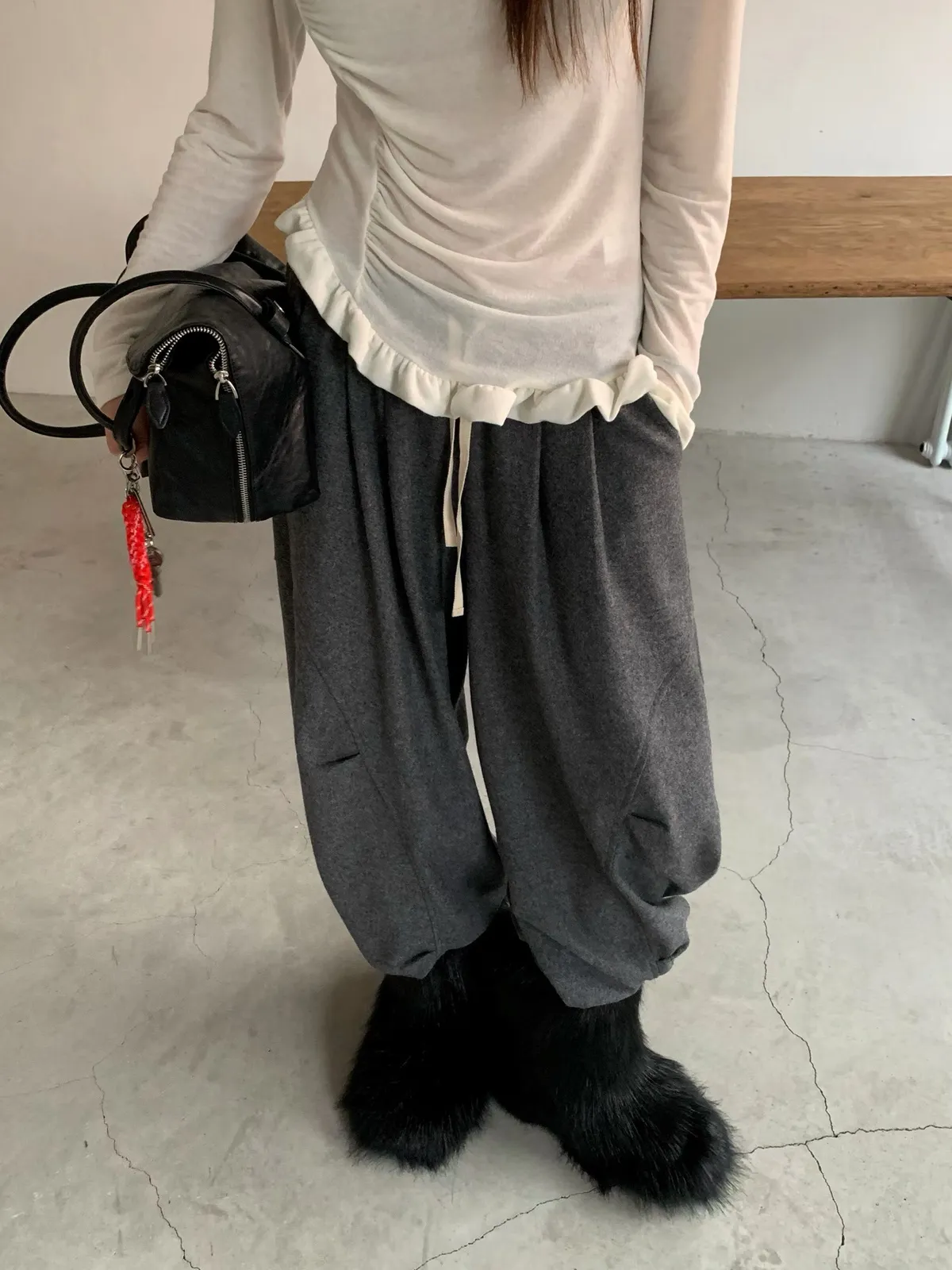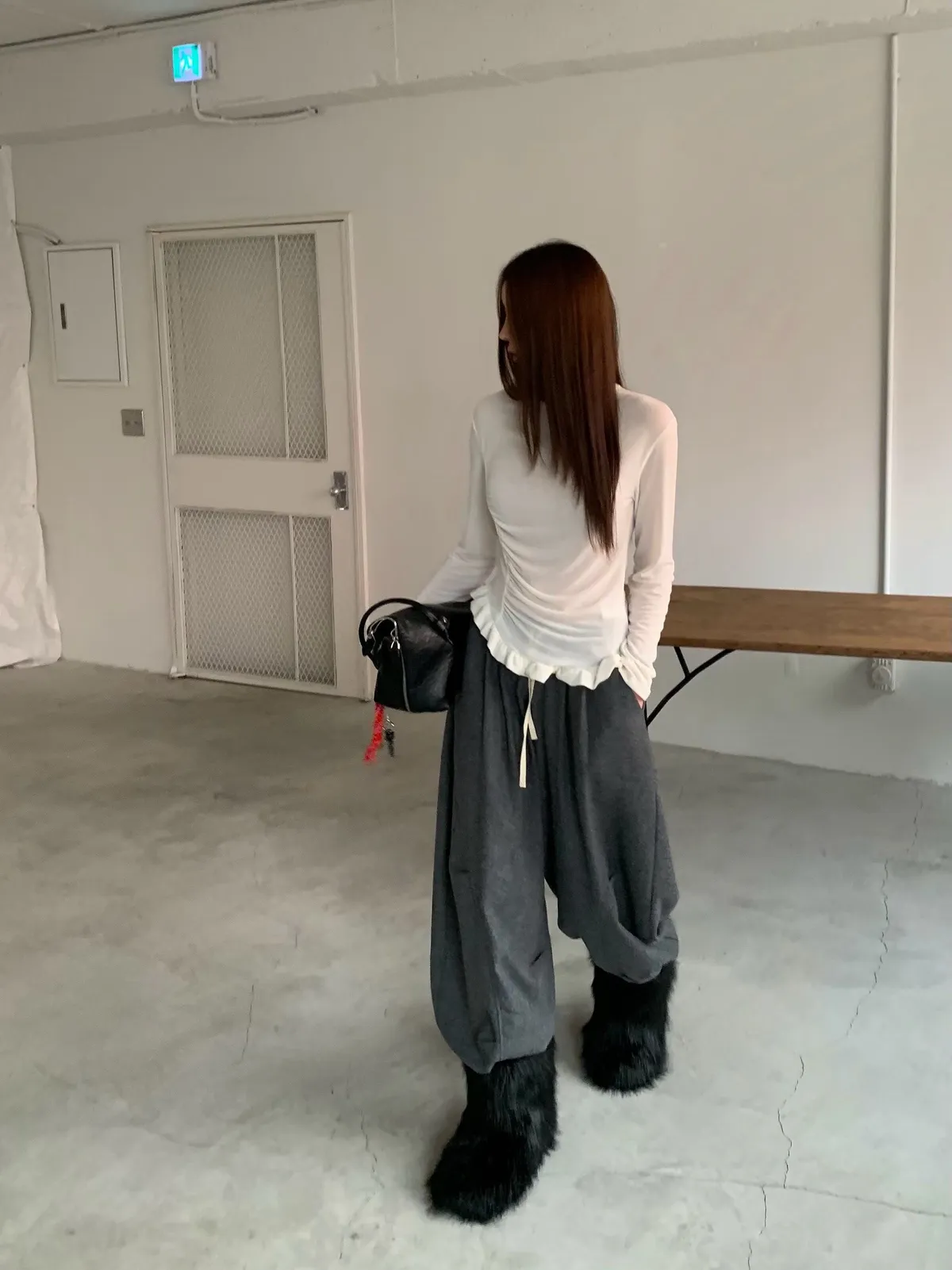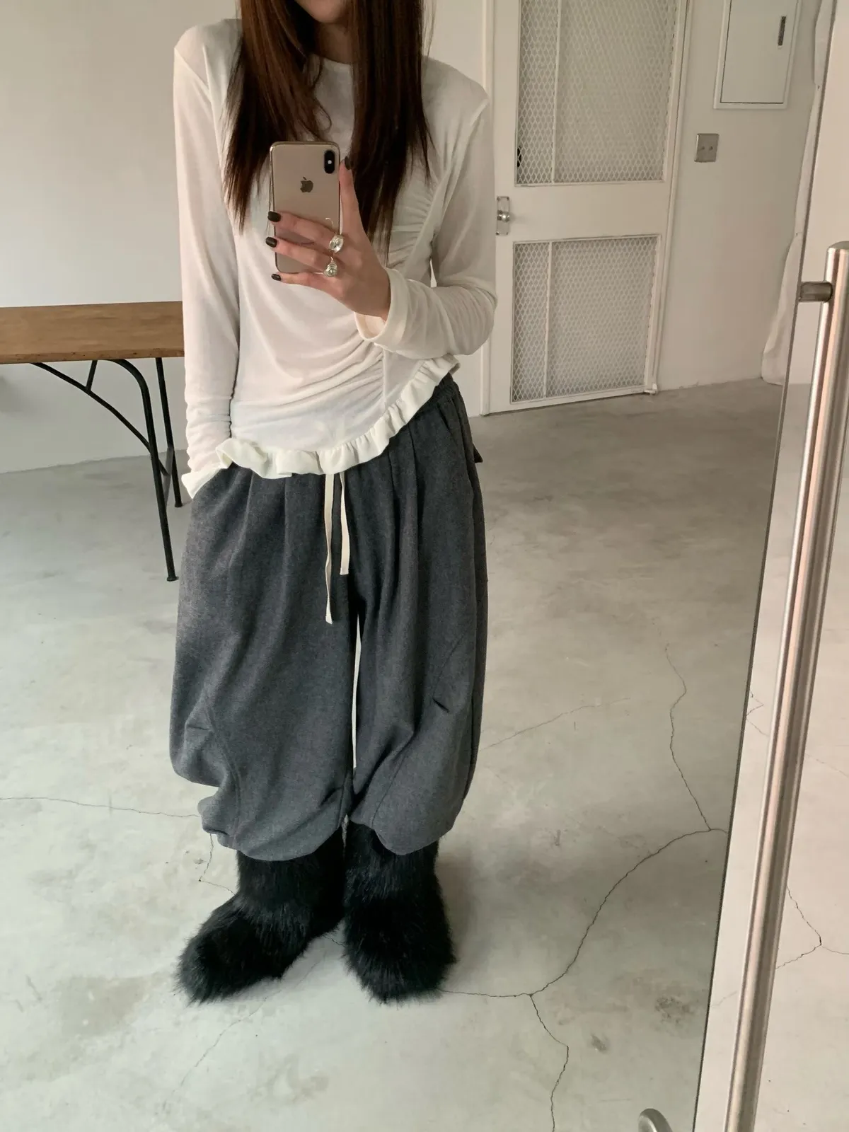 25JB08 荷葉斜下擺腰身打底上衣 3色