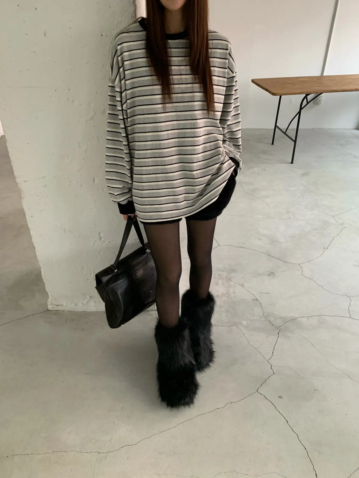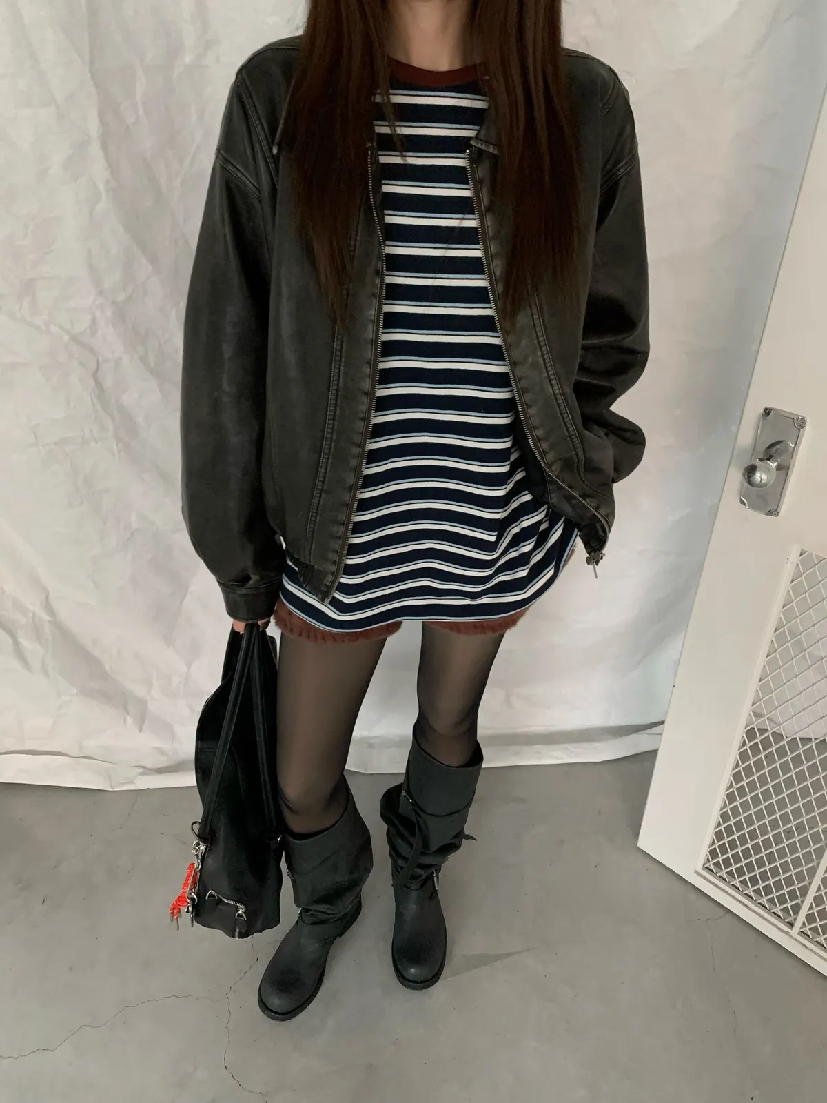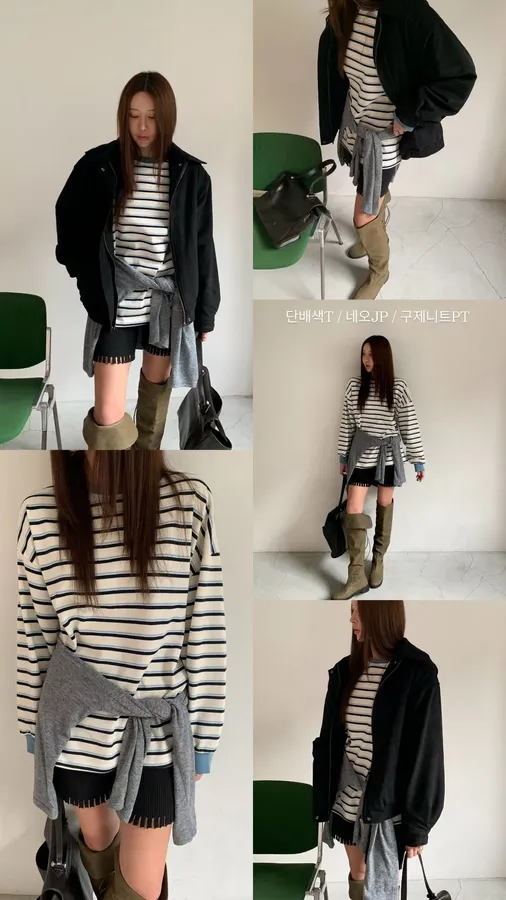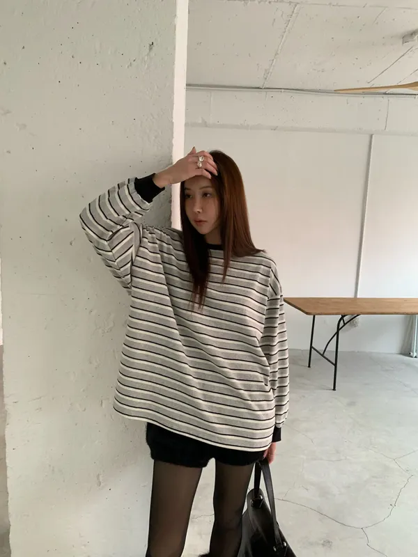 25JB17 撞色條紋網眼挺料中長版長T 3色