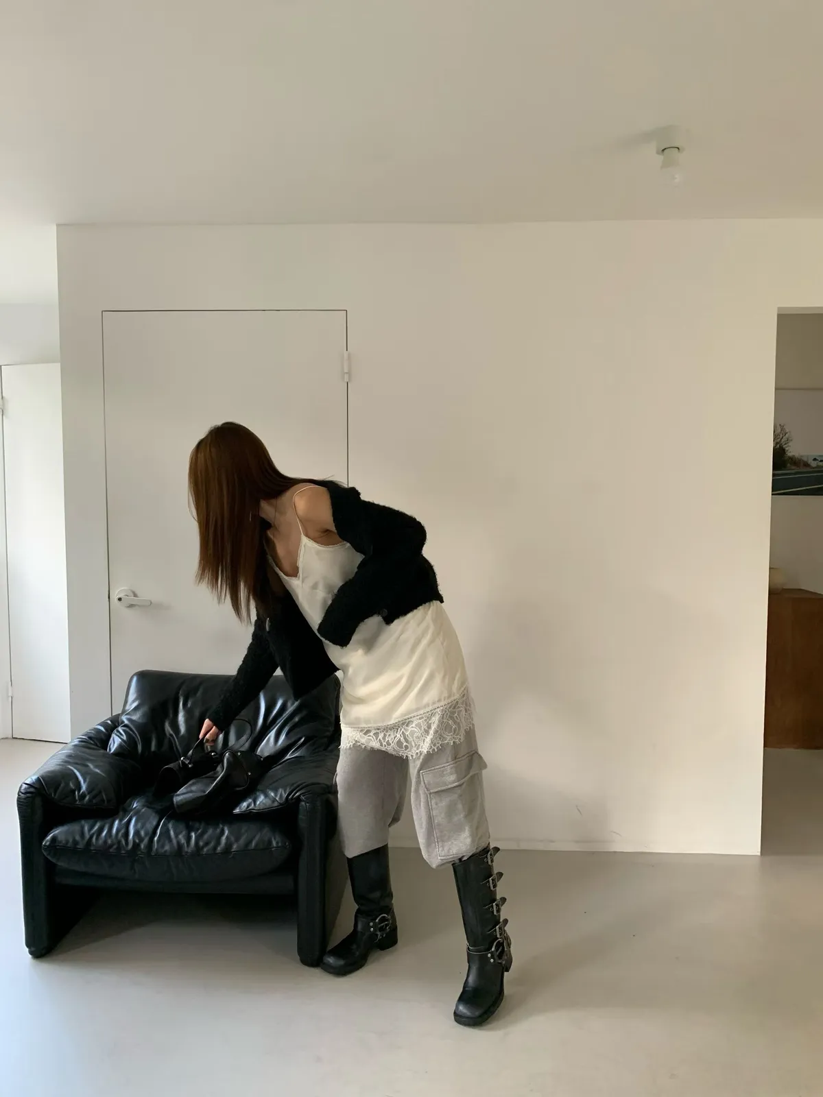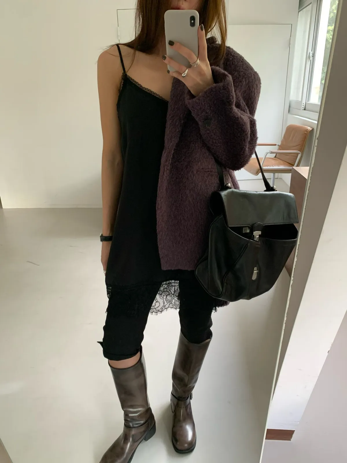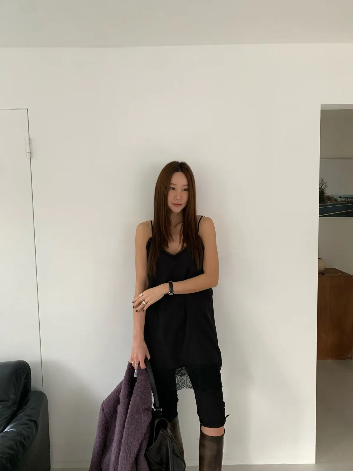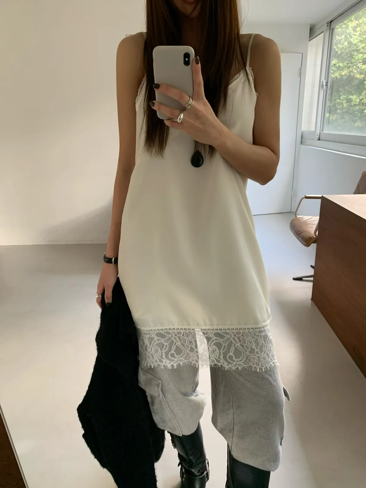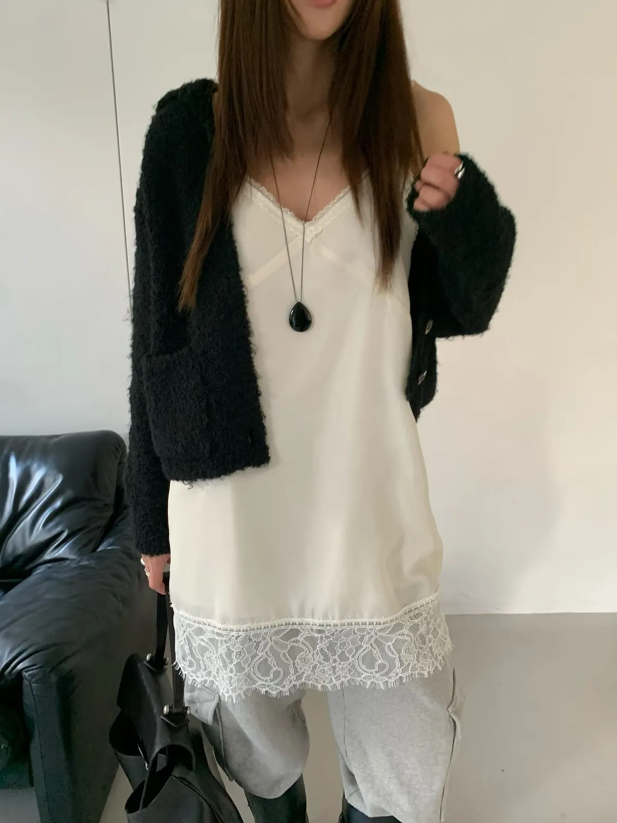25JB20 緞面拼蕾絲背心短洋裝 2色