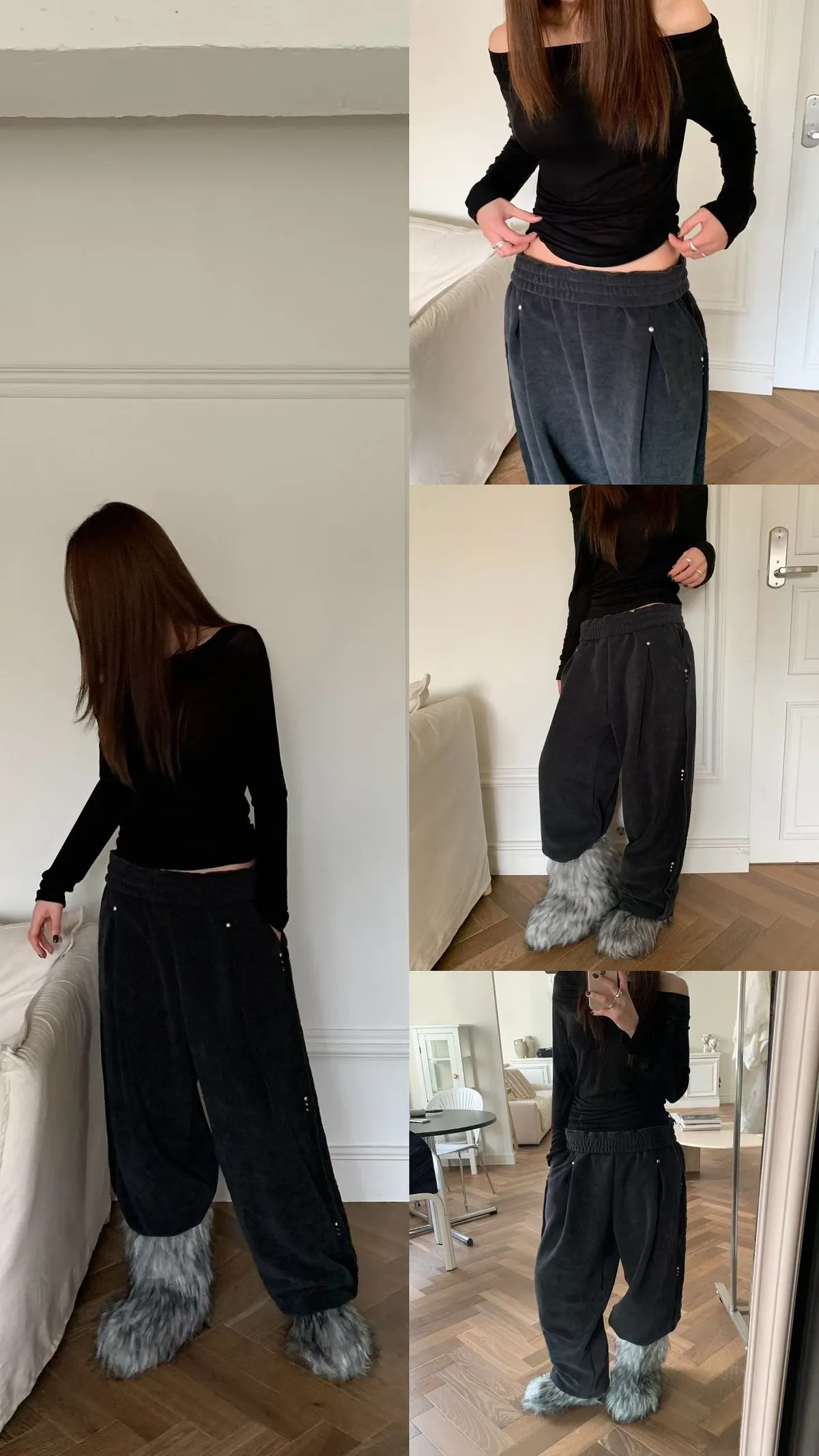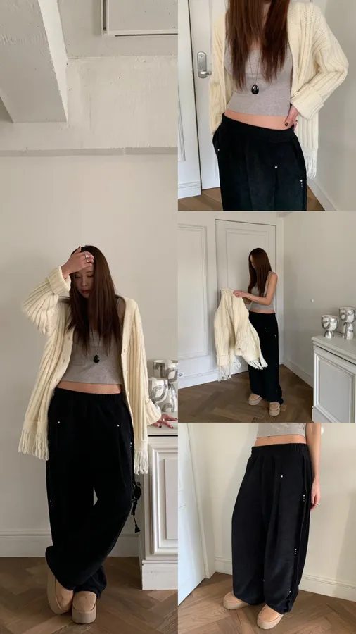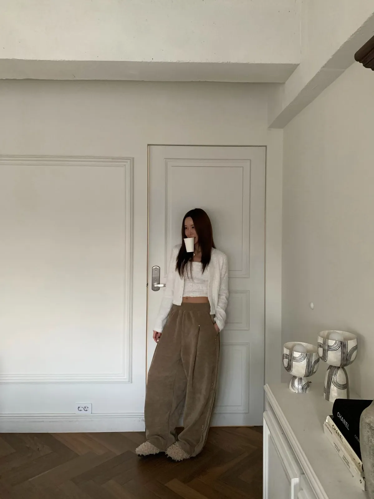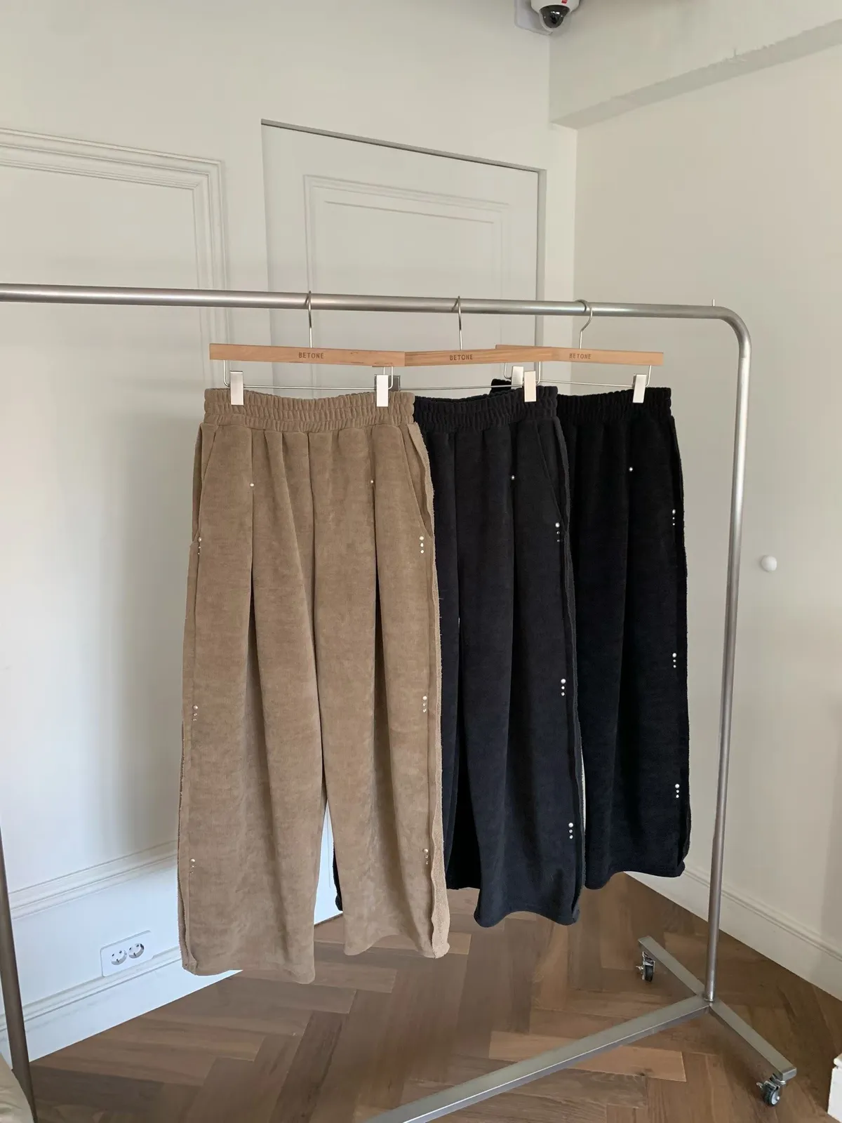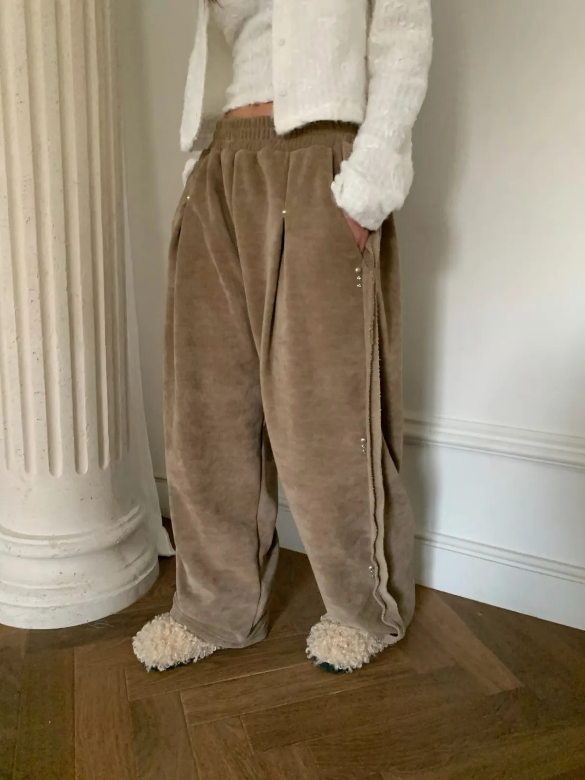 25JB27 寶貝毯棉釘扣亮鑽鬆緊長褲 3色
