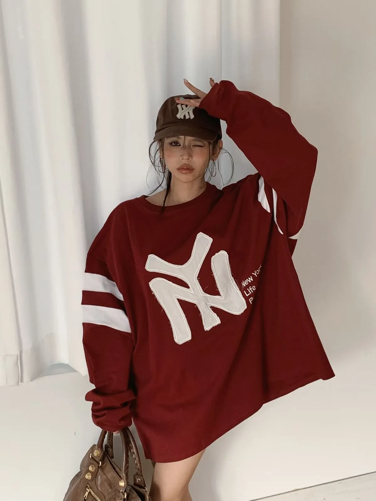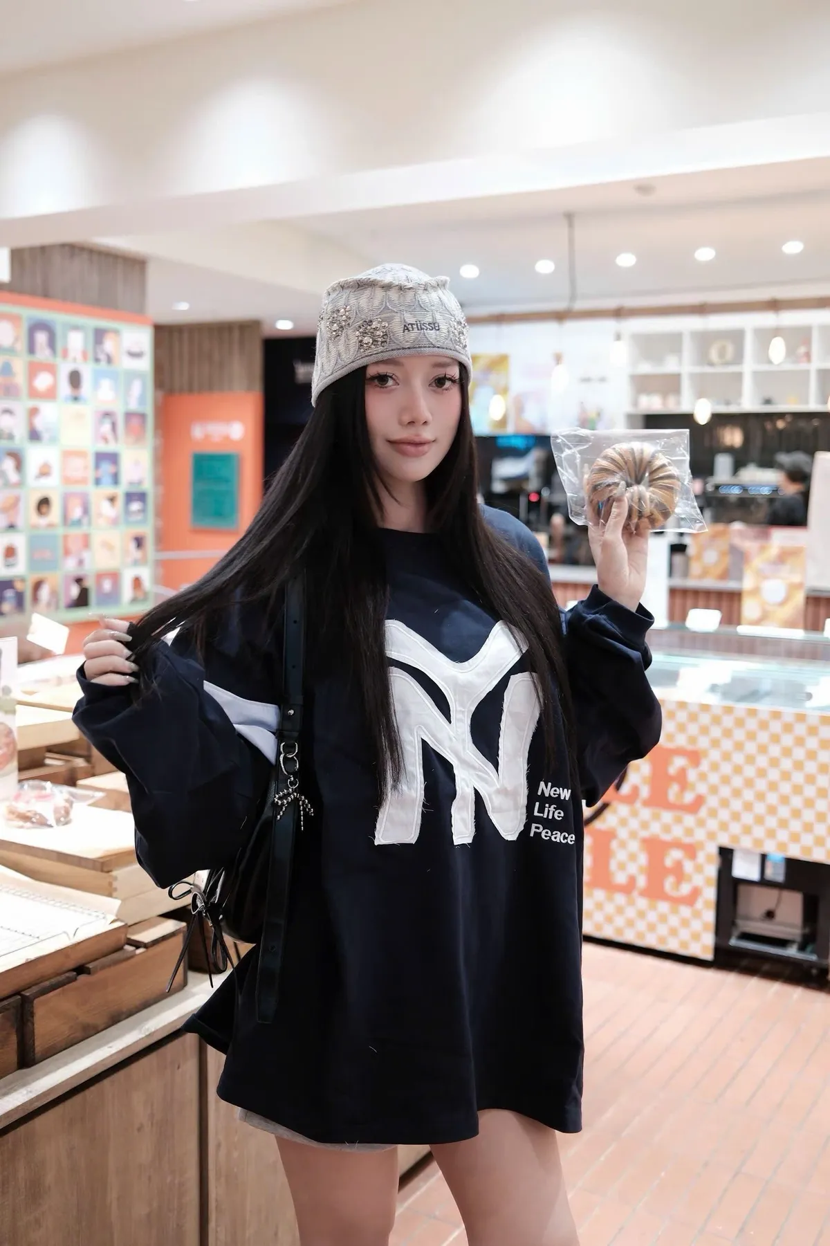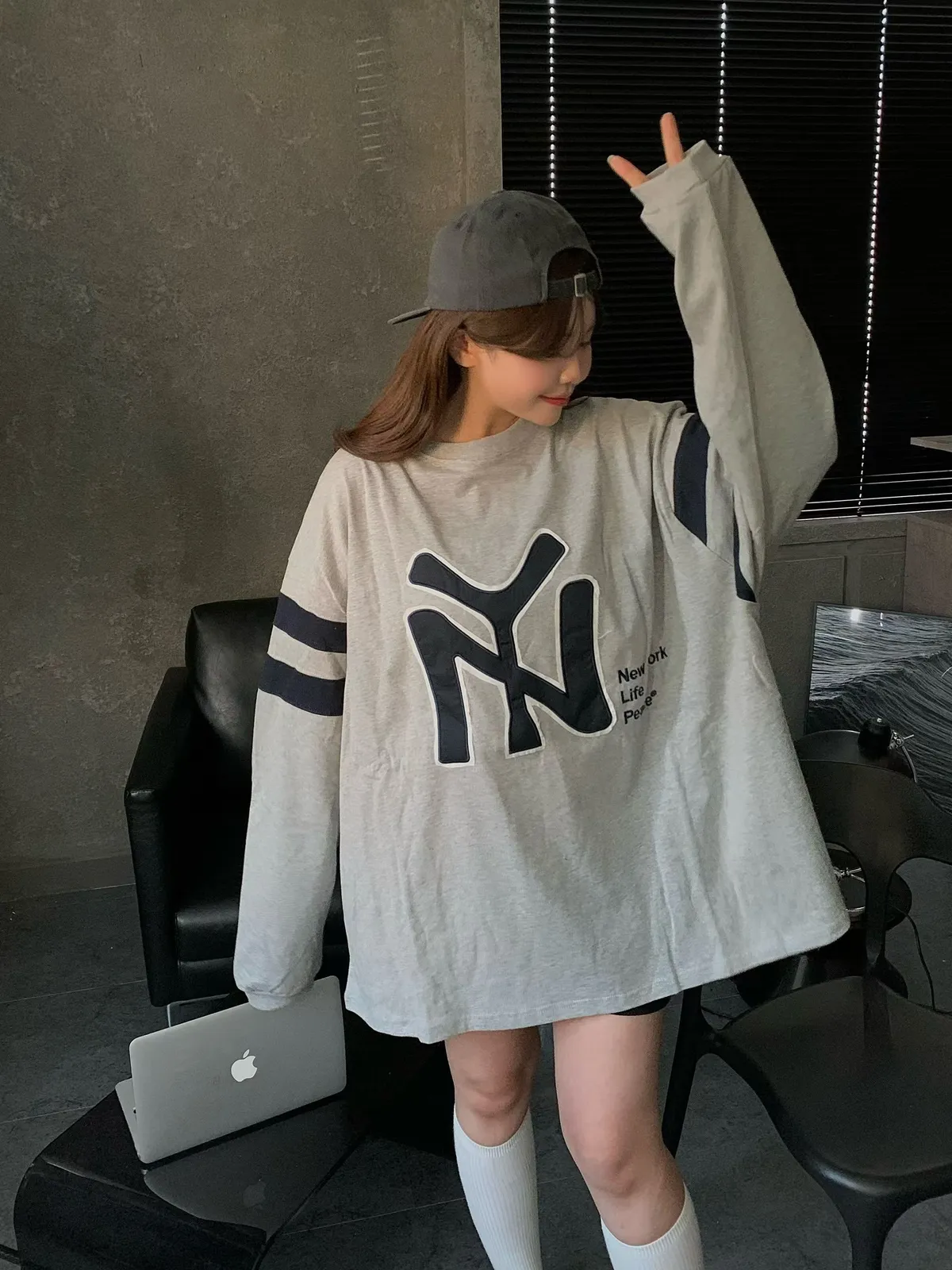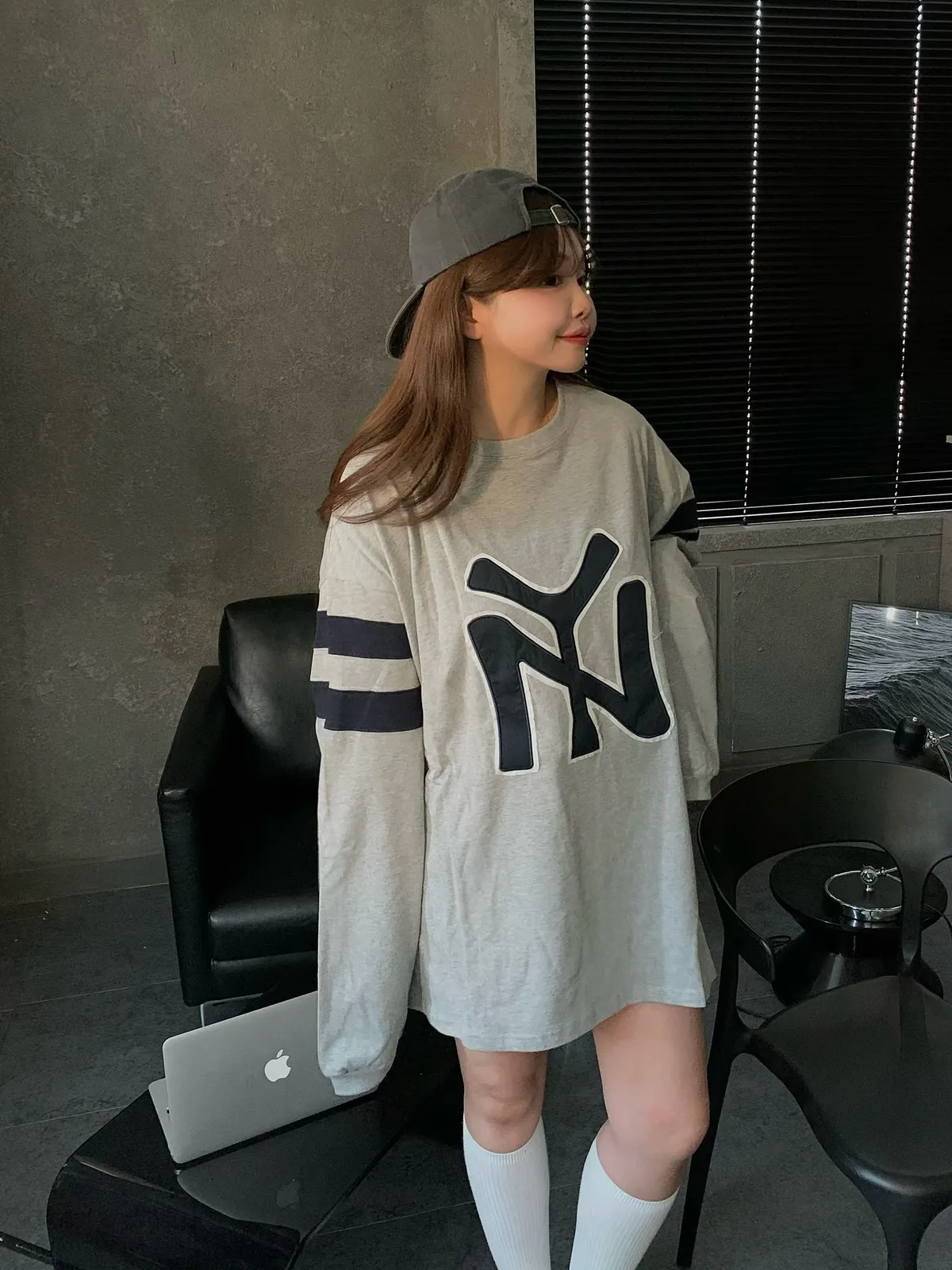 25JC01 NY中長版薄棉大學T/短洋 4色