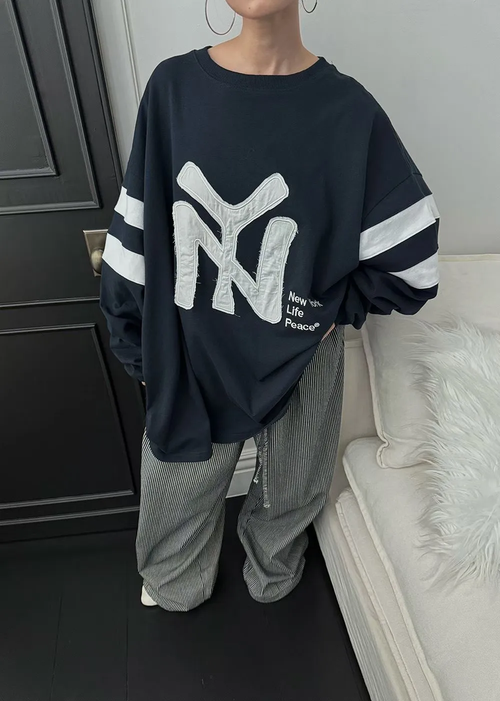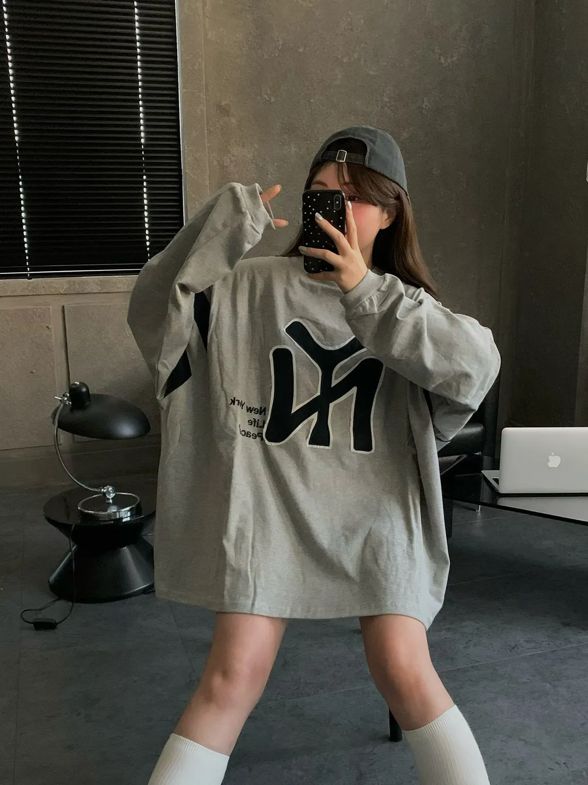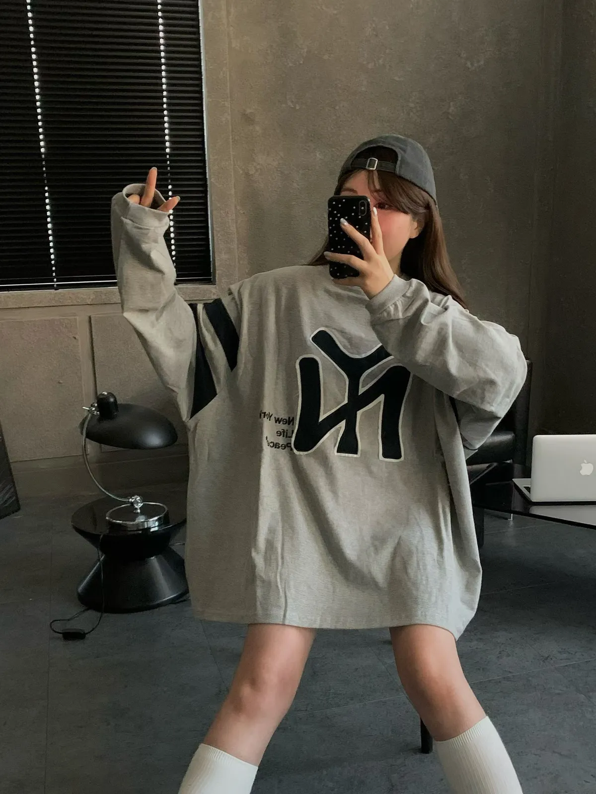 25JC01 NY中長版薄棉大學T/短洋 4色