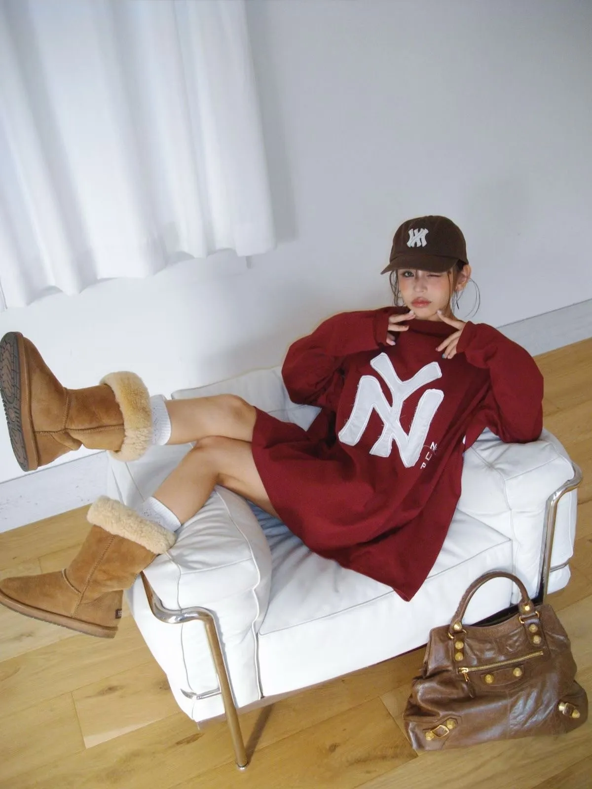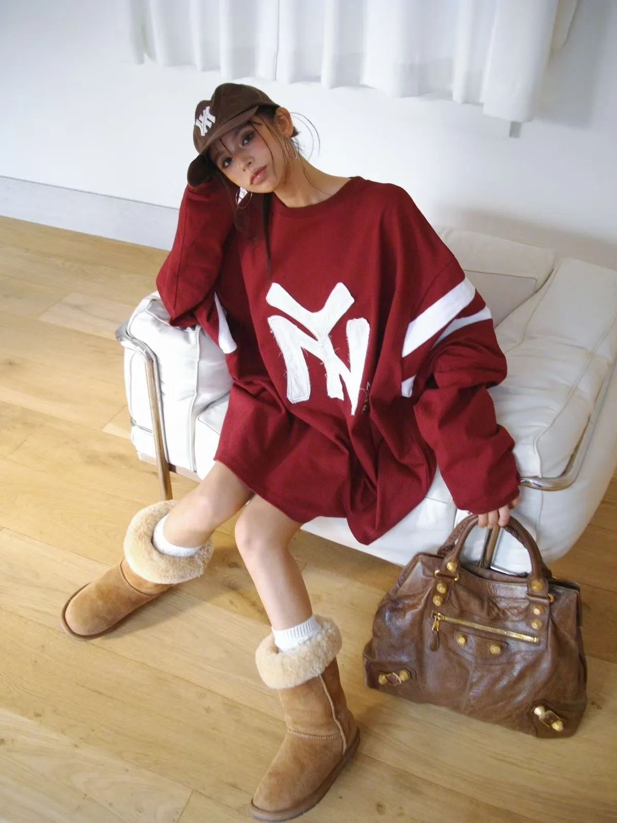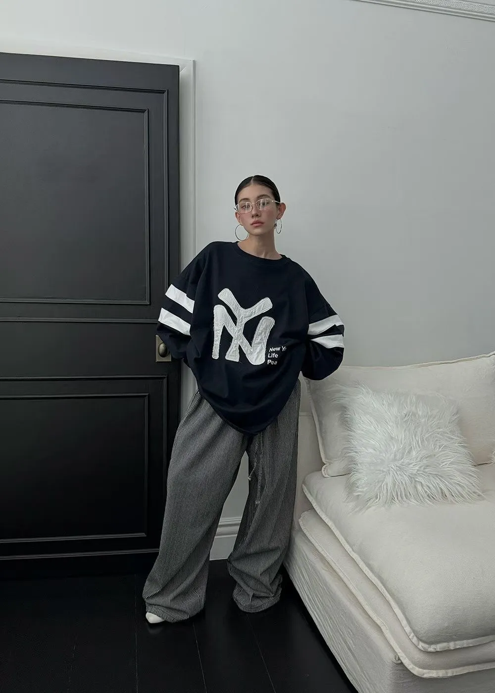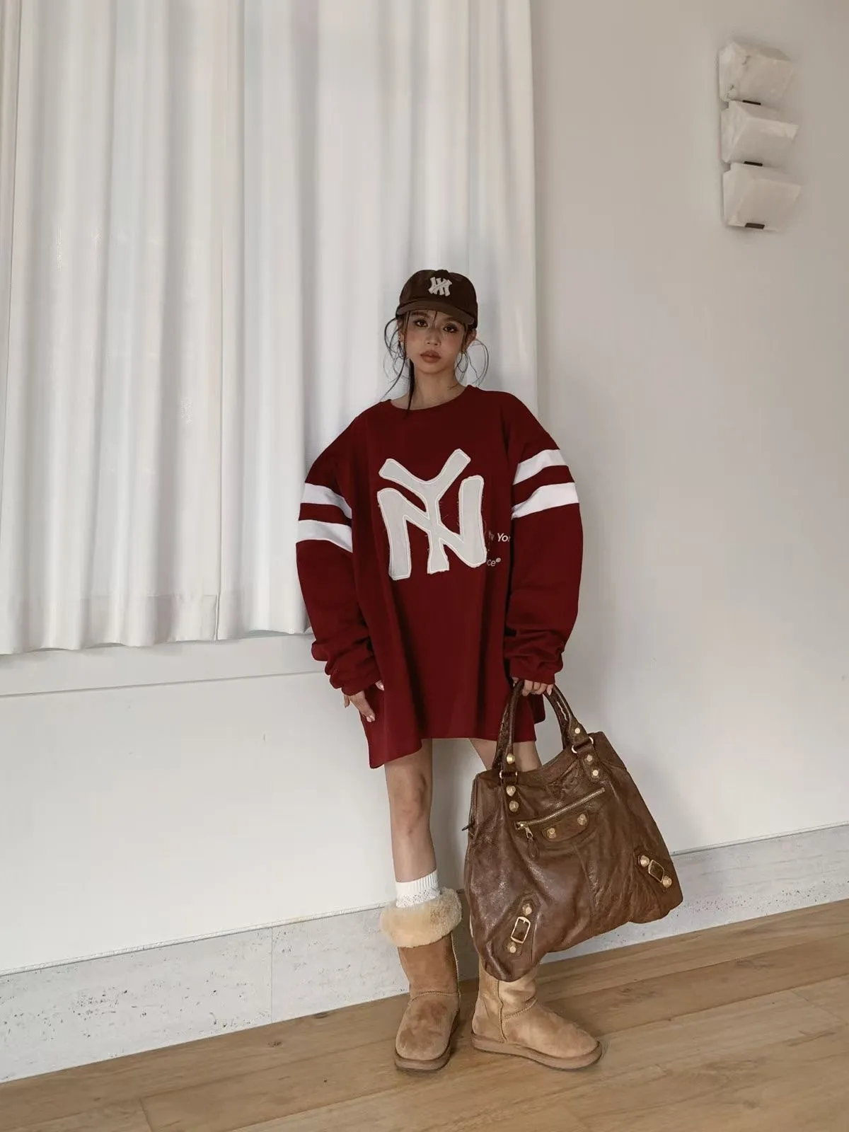 25JC01 NY中長版薄棉大學T/短洋 4色