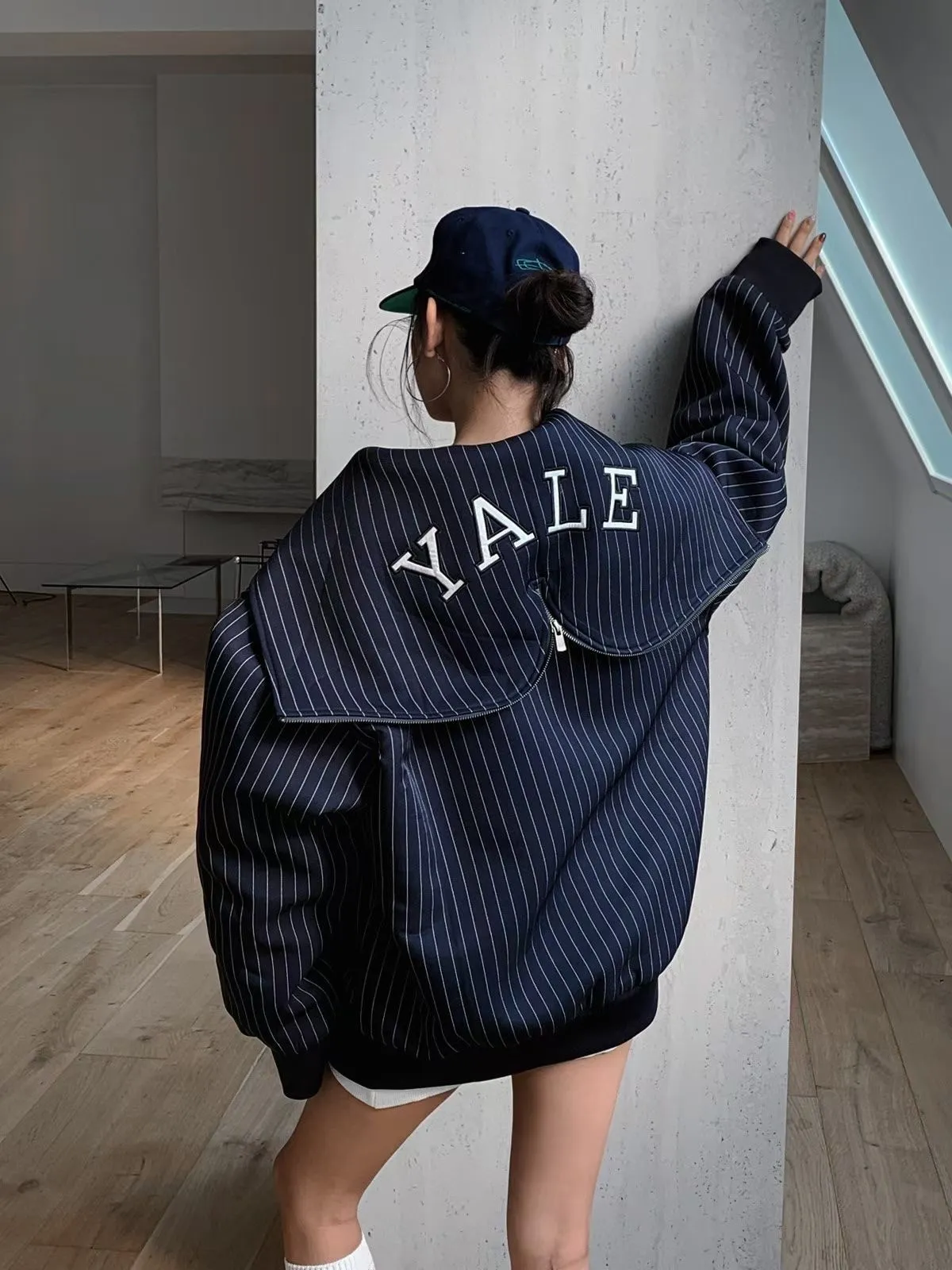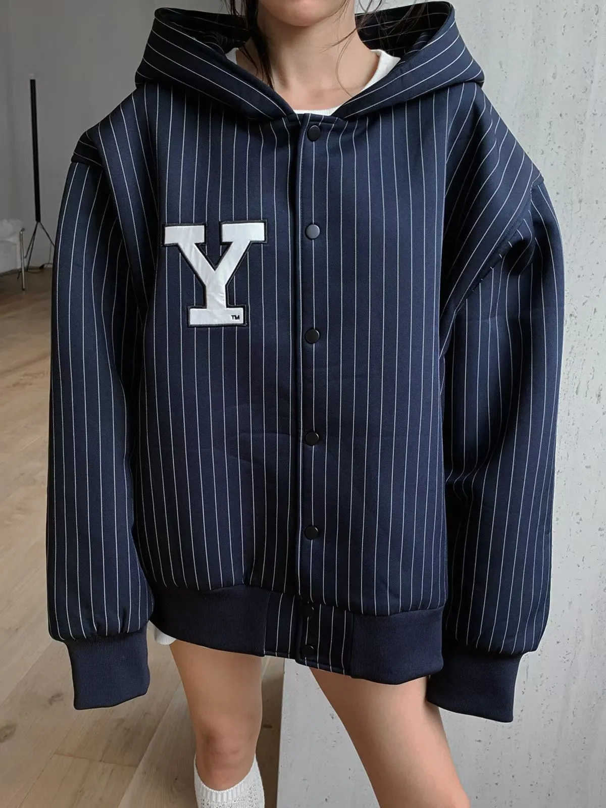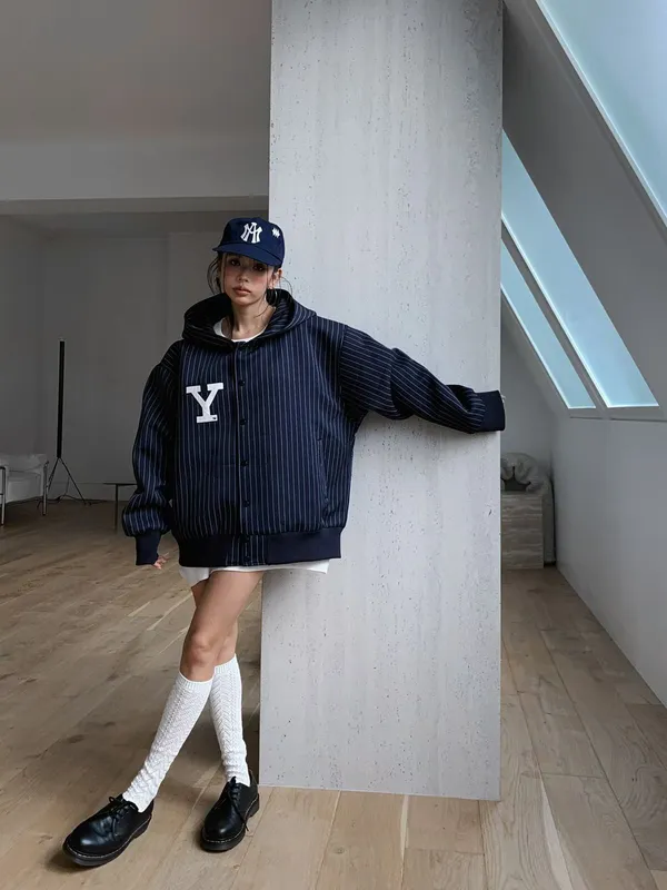 25JC02 YALE電繡字兩穿連帽/水手領挺料外套 2色