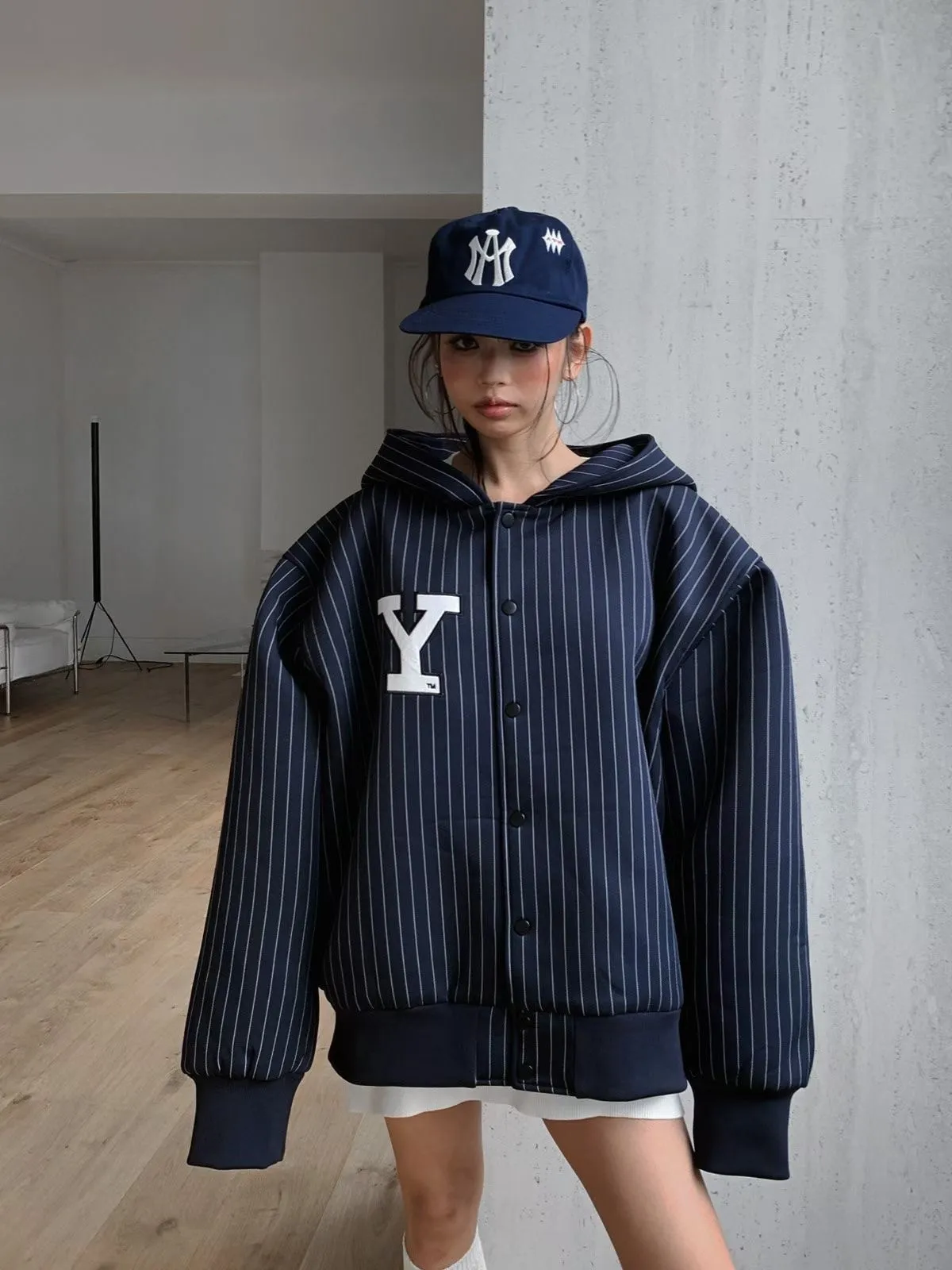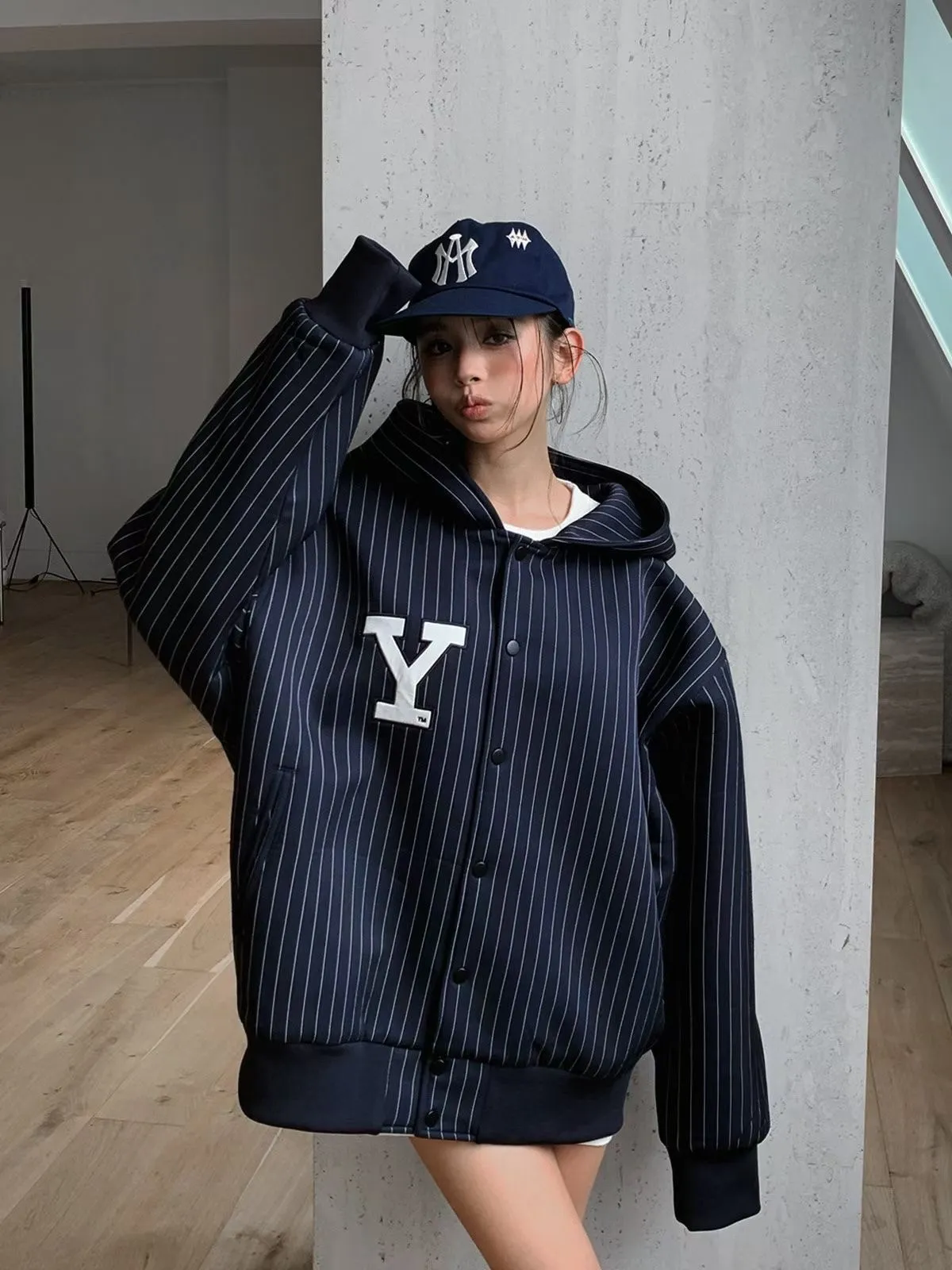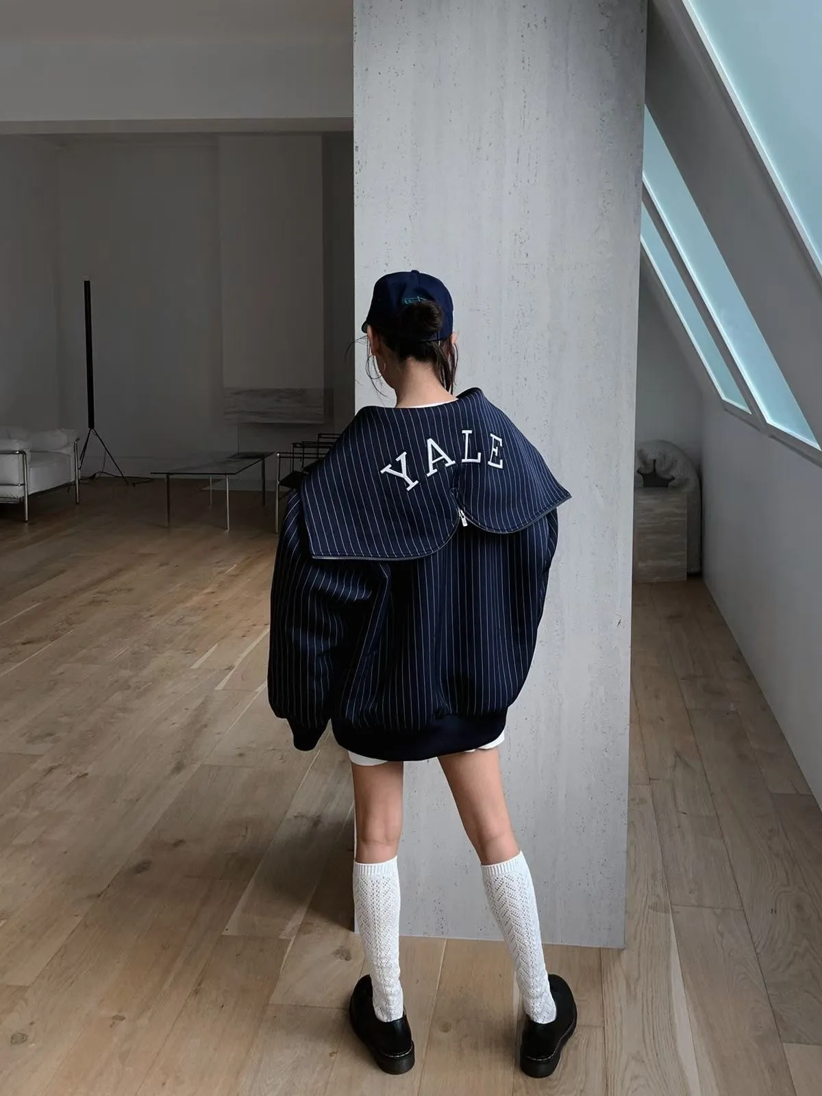 25JC02 YALE電繡字兩穿連帽/水手領挺料外套 2色