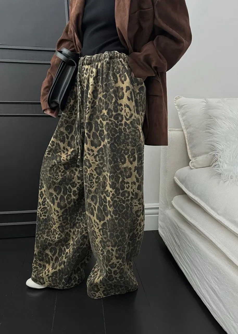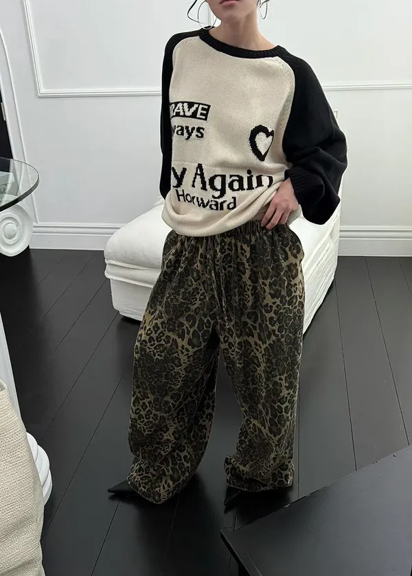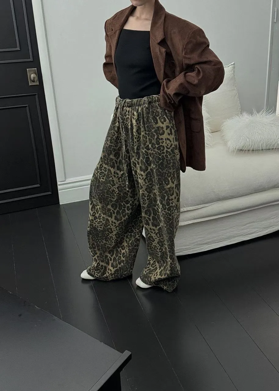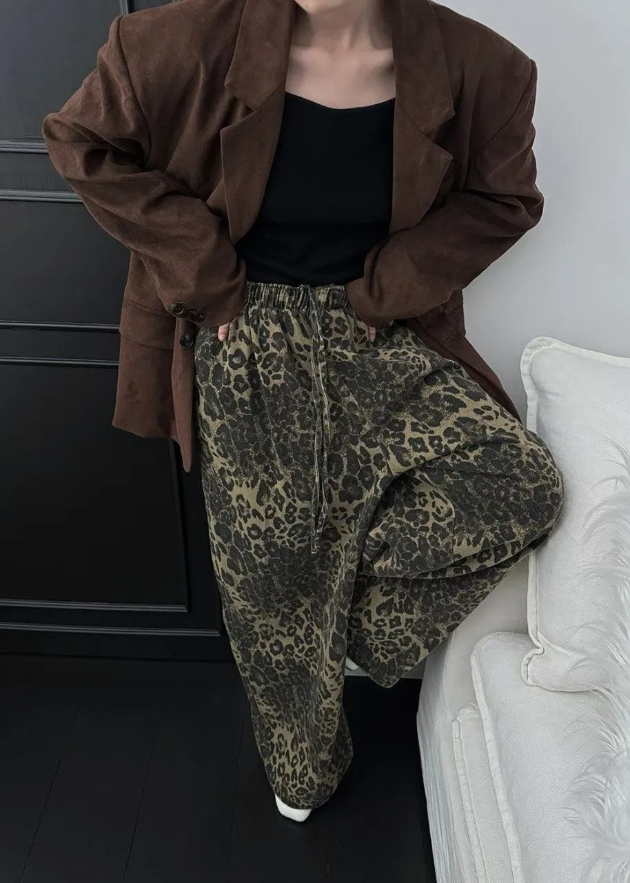 25JC03 薄斜紋豹紋鬆緊長褲 3色