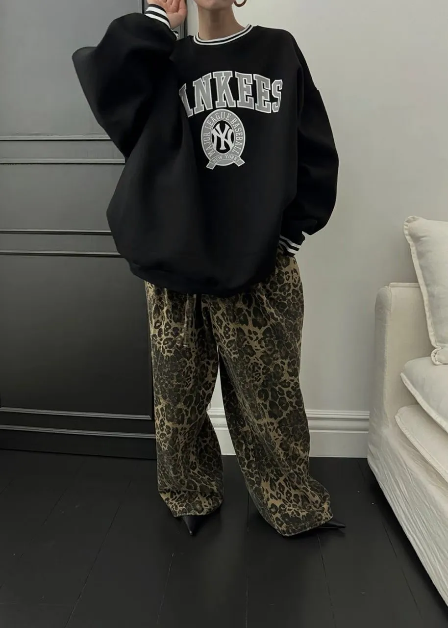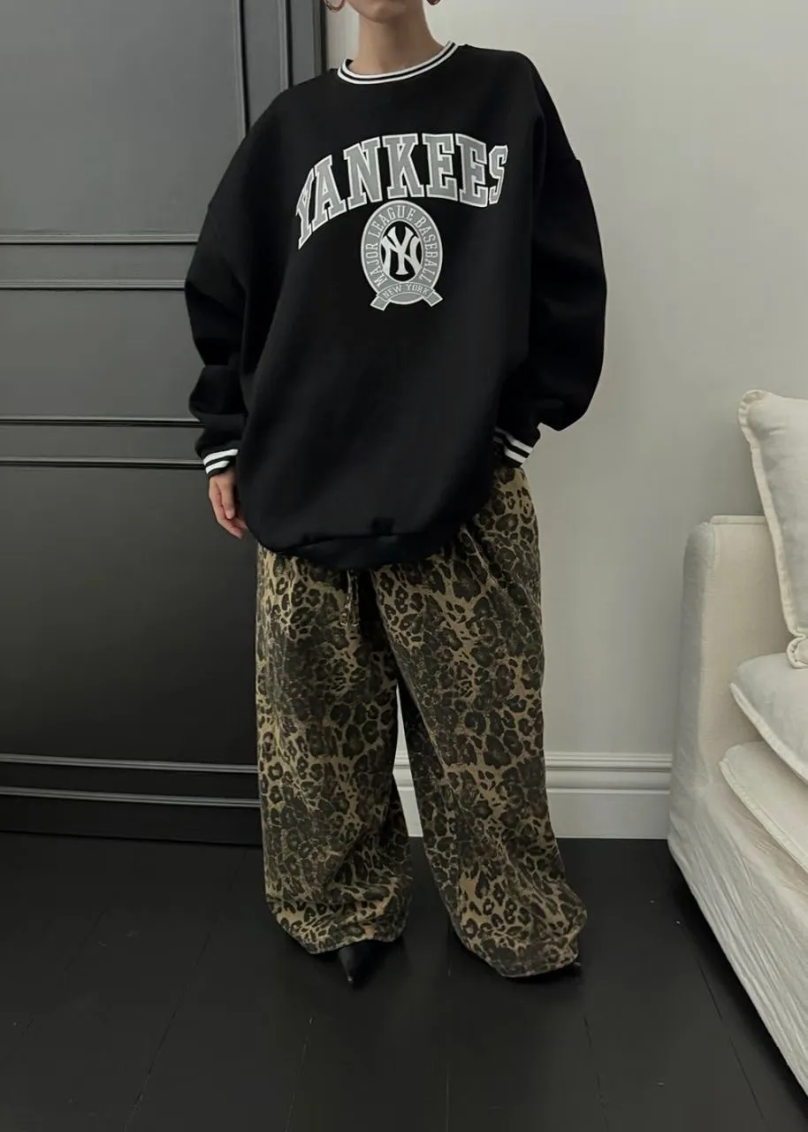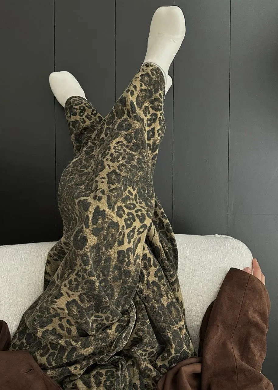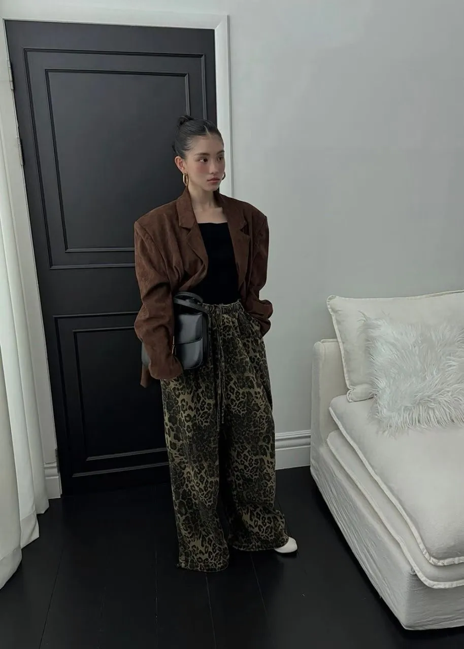 25JC03 薄斜紋豹紋鬆緊長褲 3色
