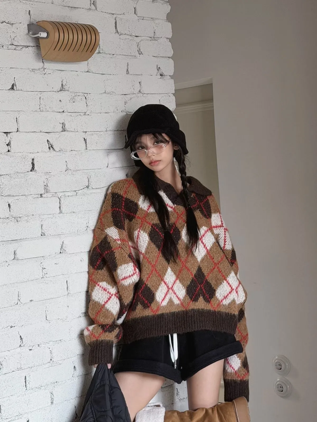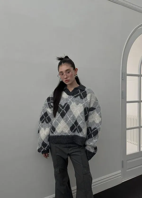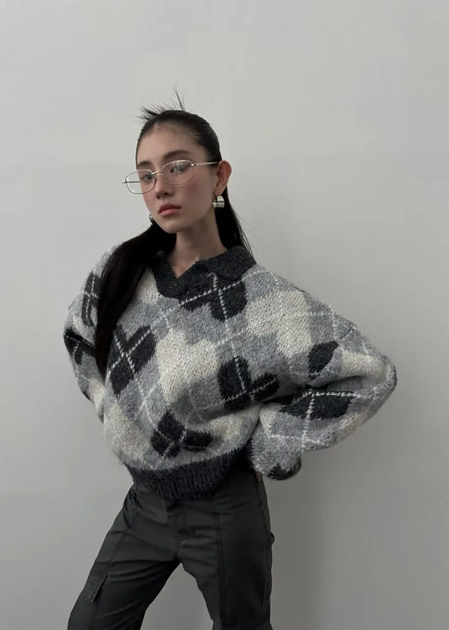 25JC06 POLO菱紋羊毛針織上衣 3色