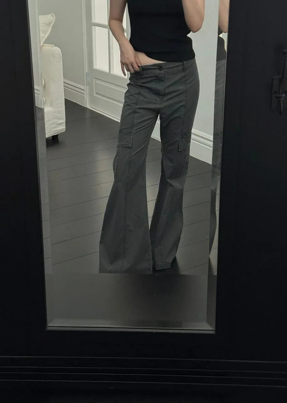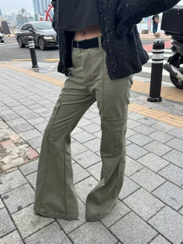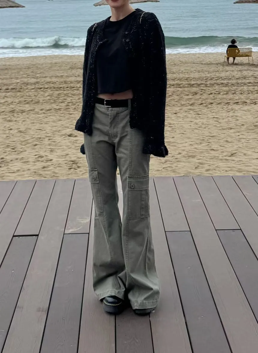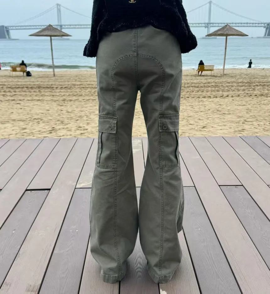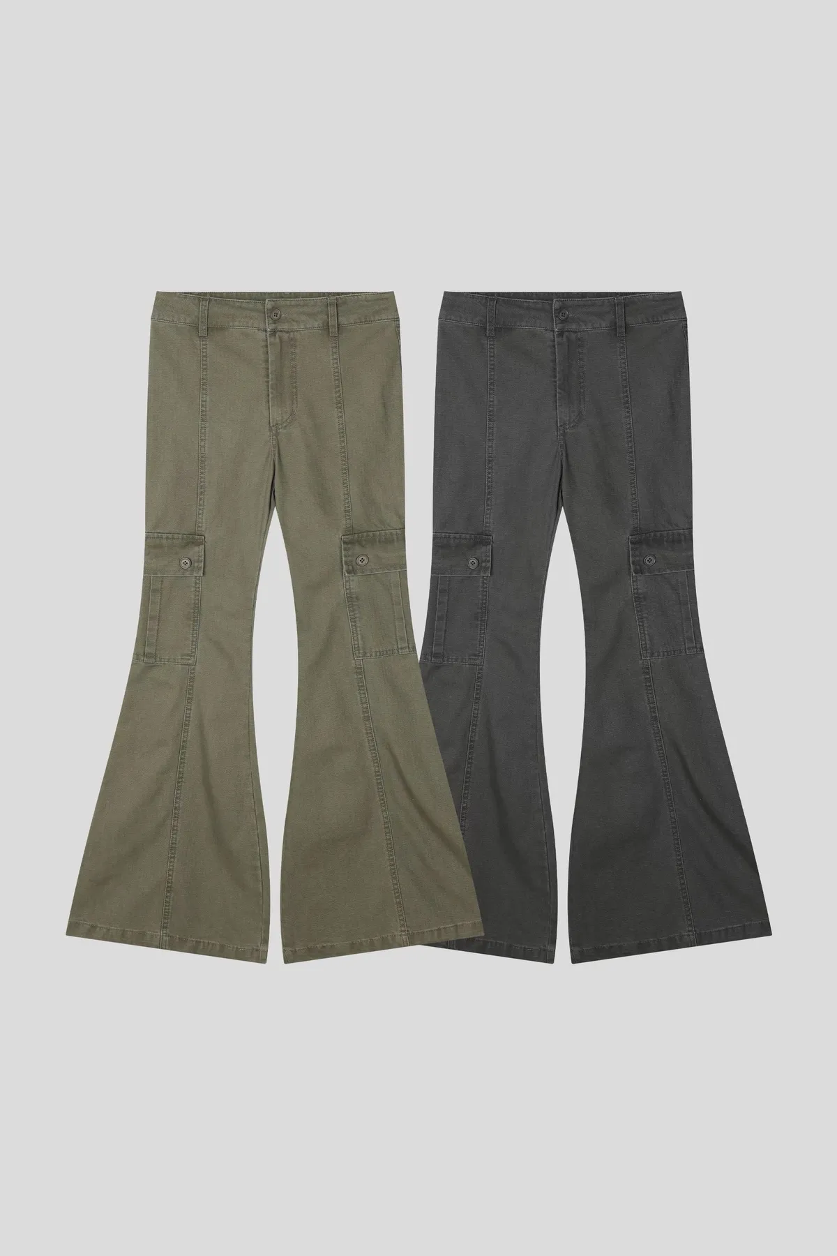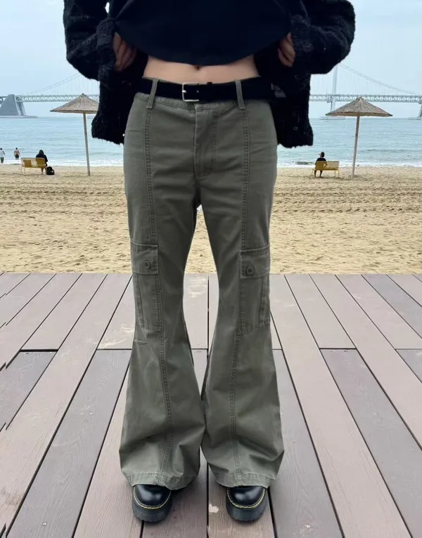 25JC07 薄斜紋中低腰工裝喇叭褲 2色 SM