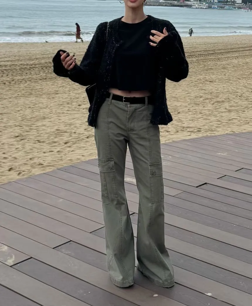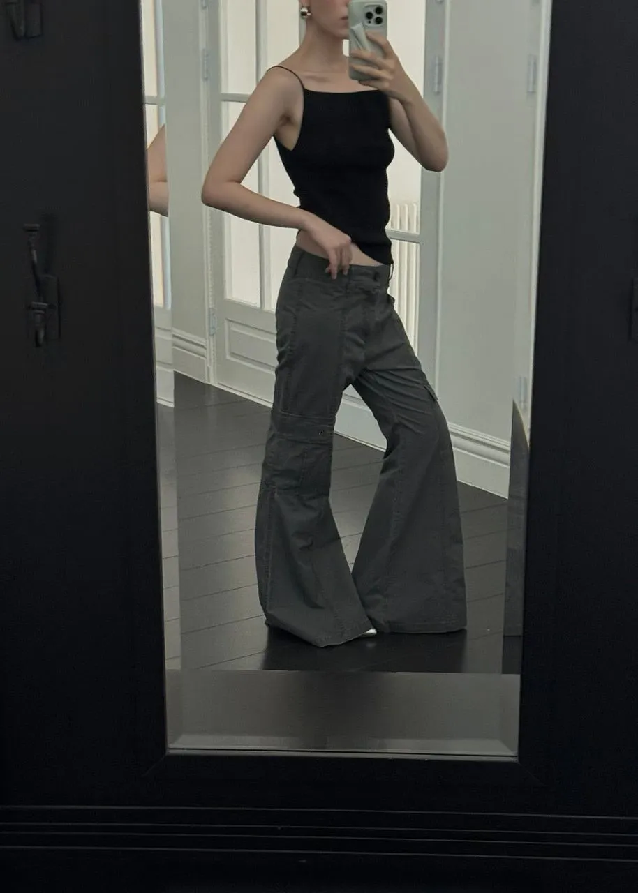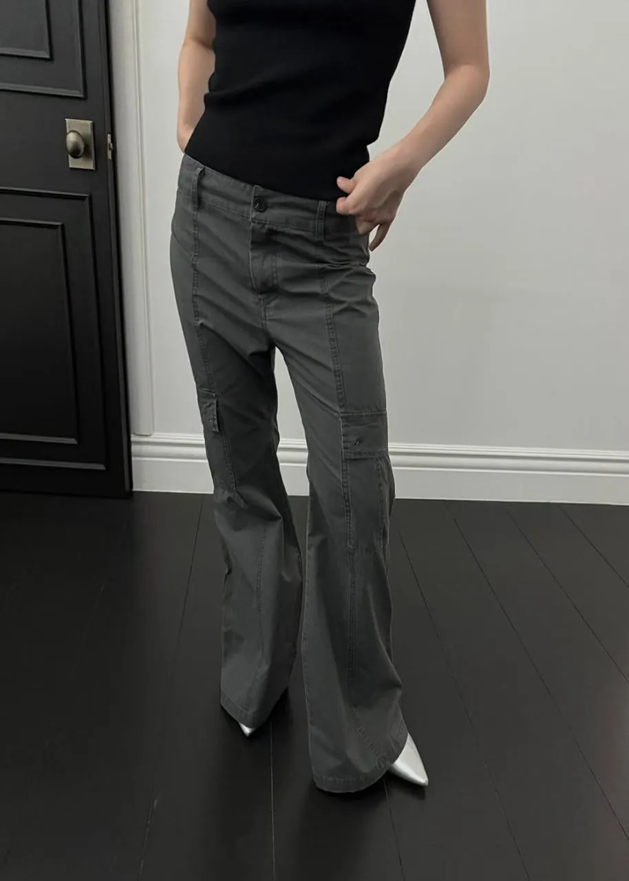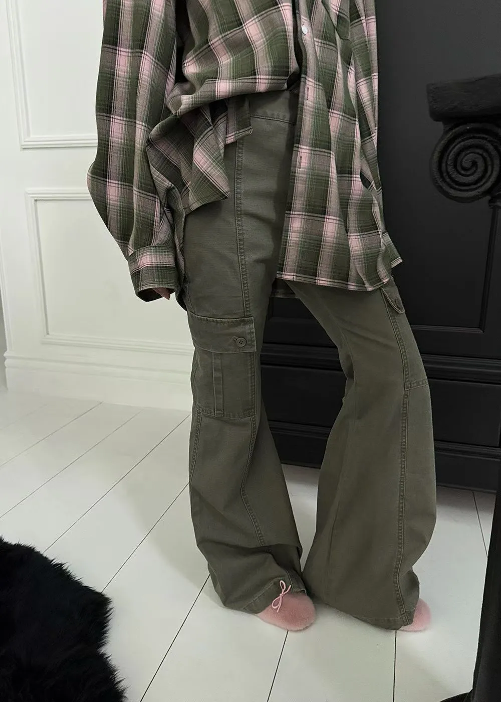 25JC07 薄斜紋中低腰工裝喇叭褲 2色 SM