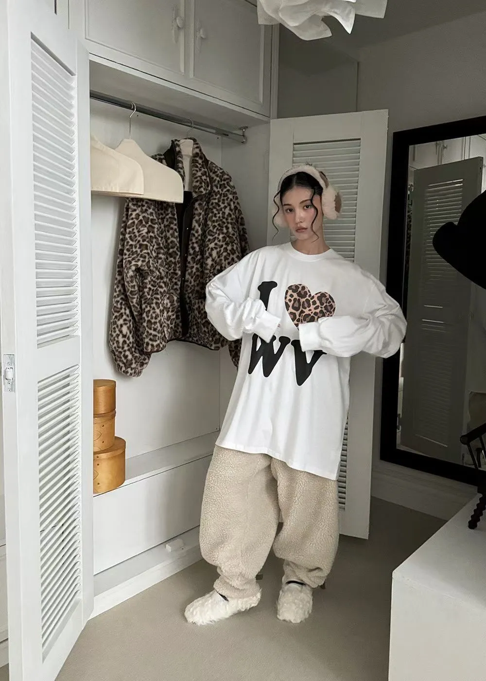 25JC11 外薄絨豹紋愛心中長版長上衣 2色