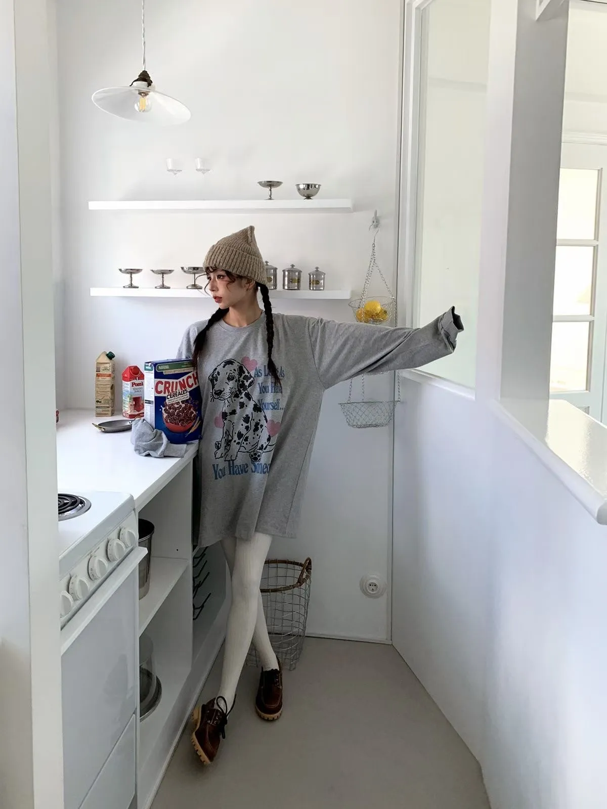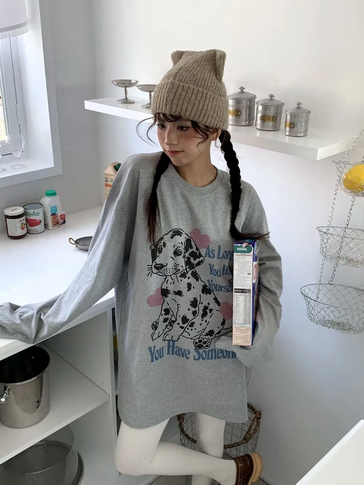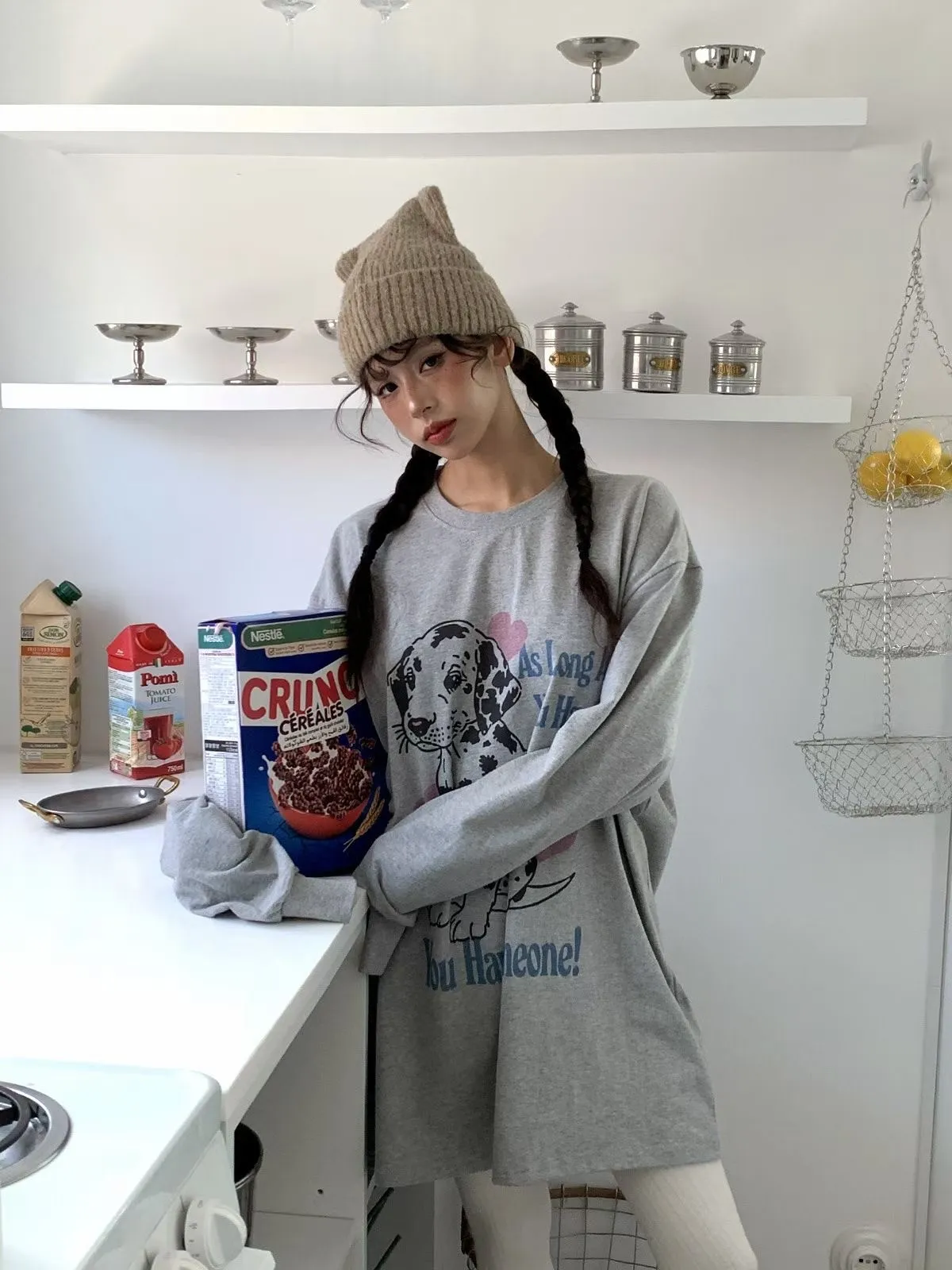 25JC13 狗狗挺薄棉中長版長T 3色