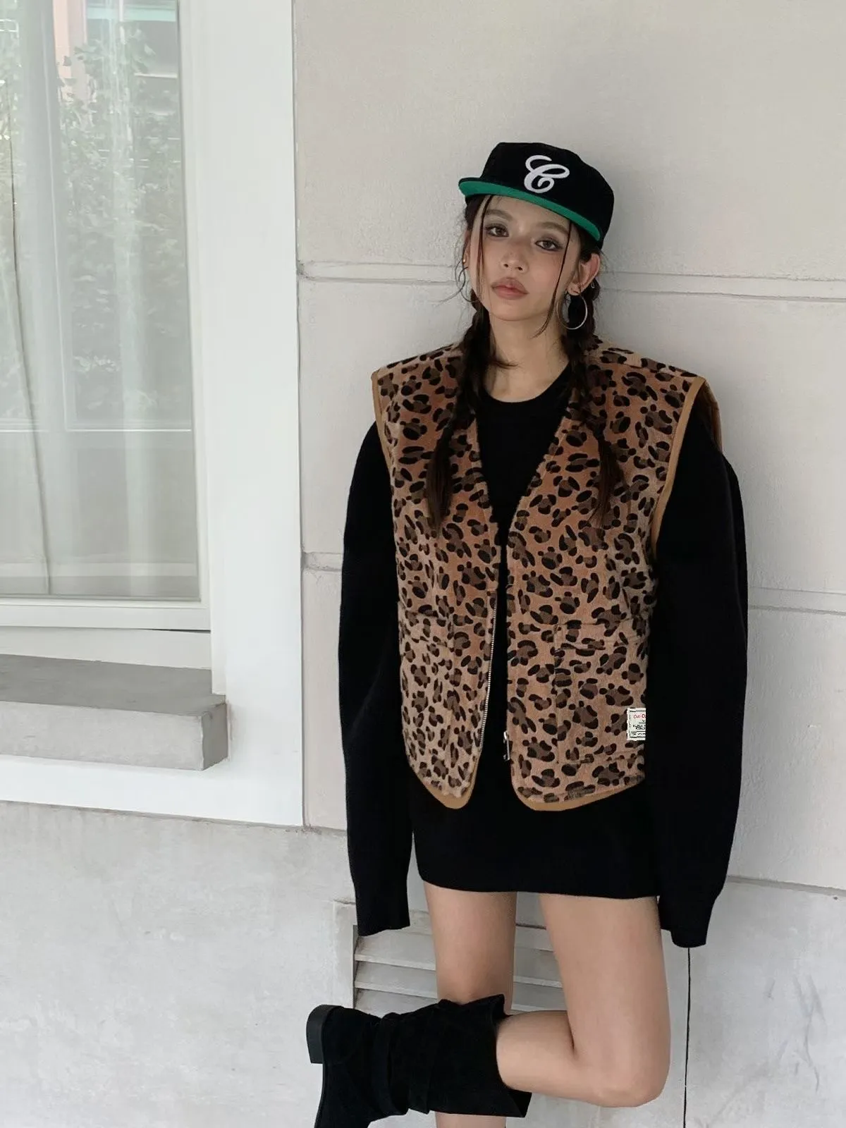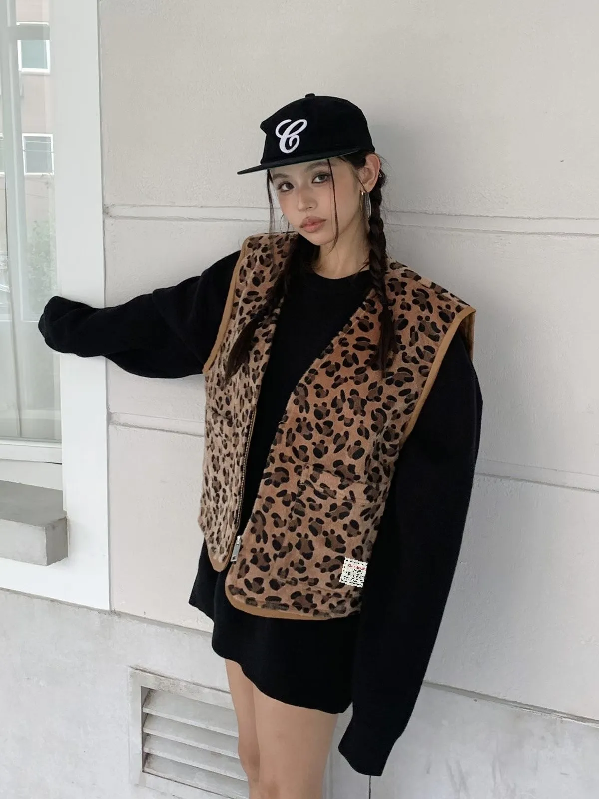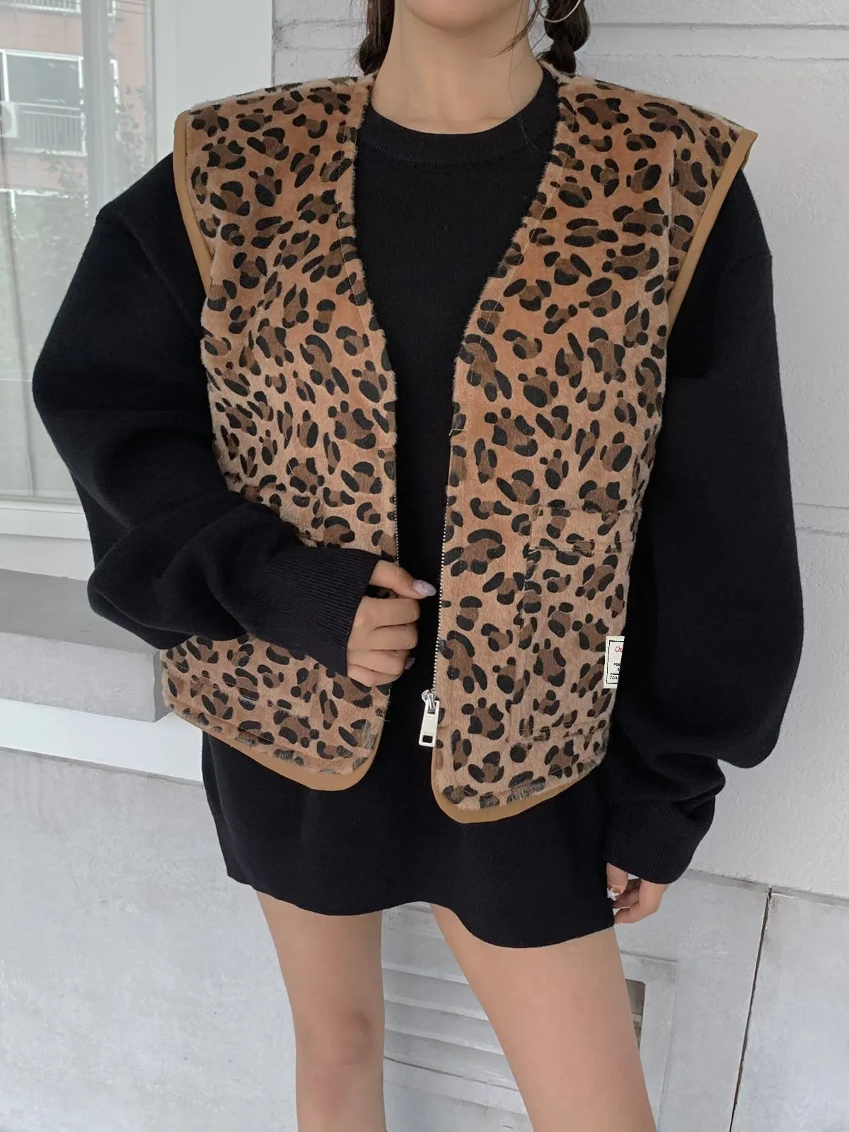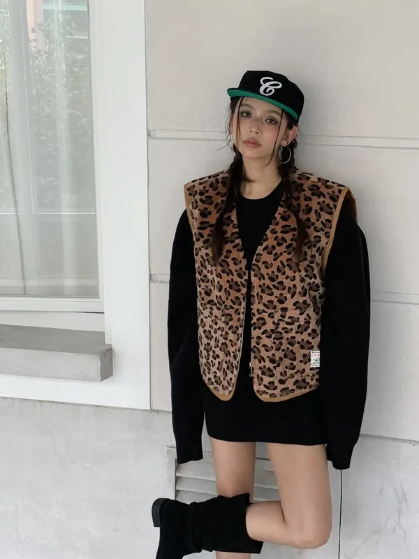 25JC15 豹紋馬毛可愛短背心 2色