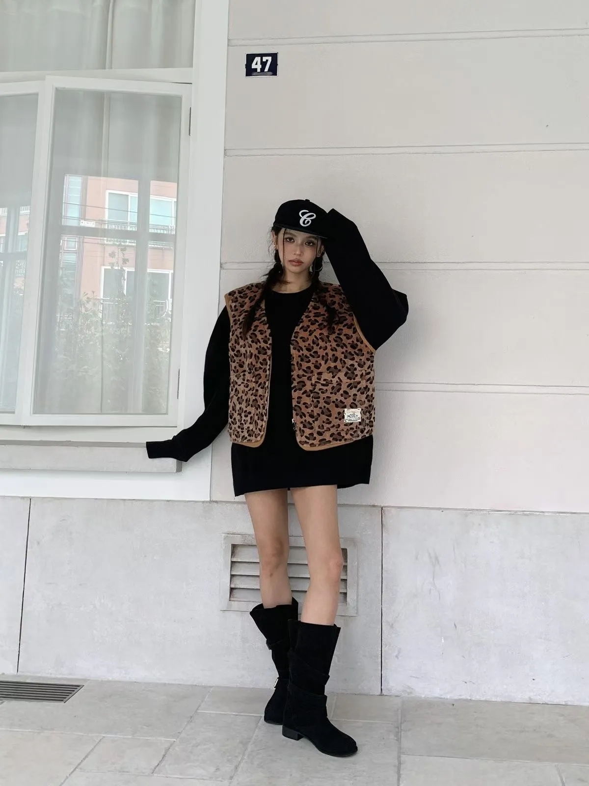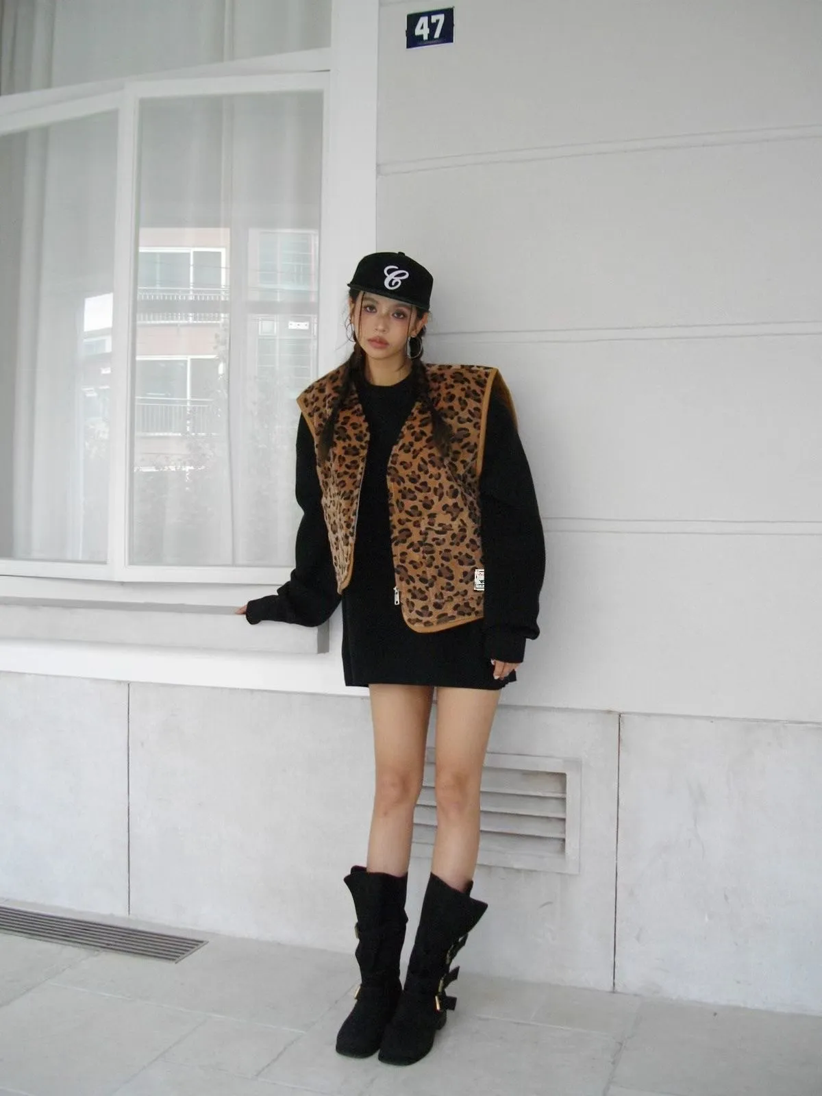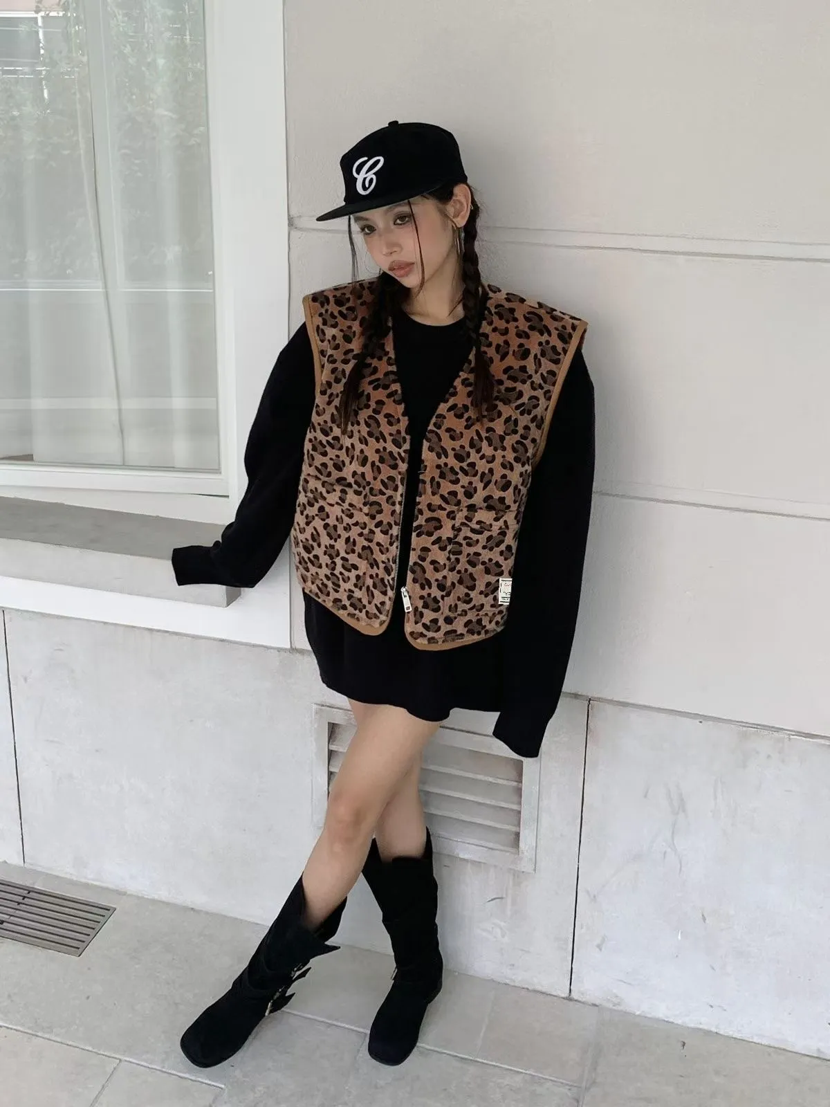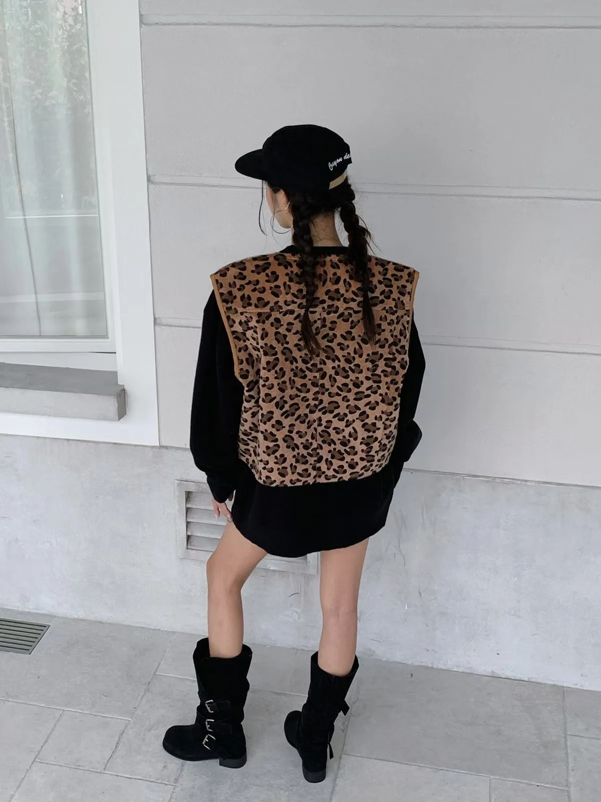25JC15 豹紋馬毛可愛短背心 2色