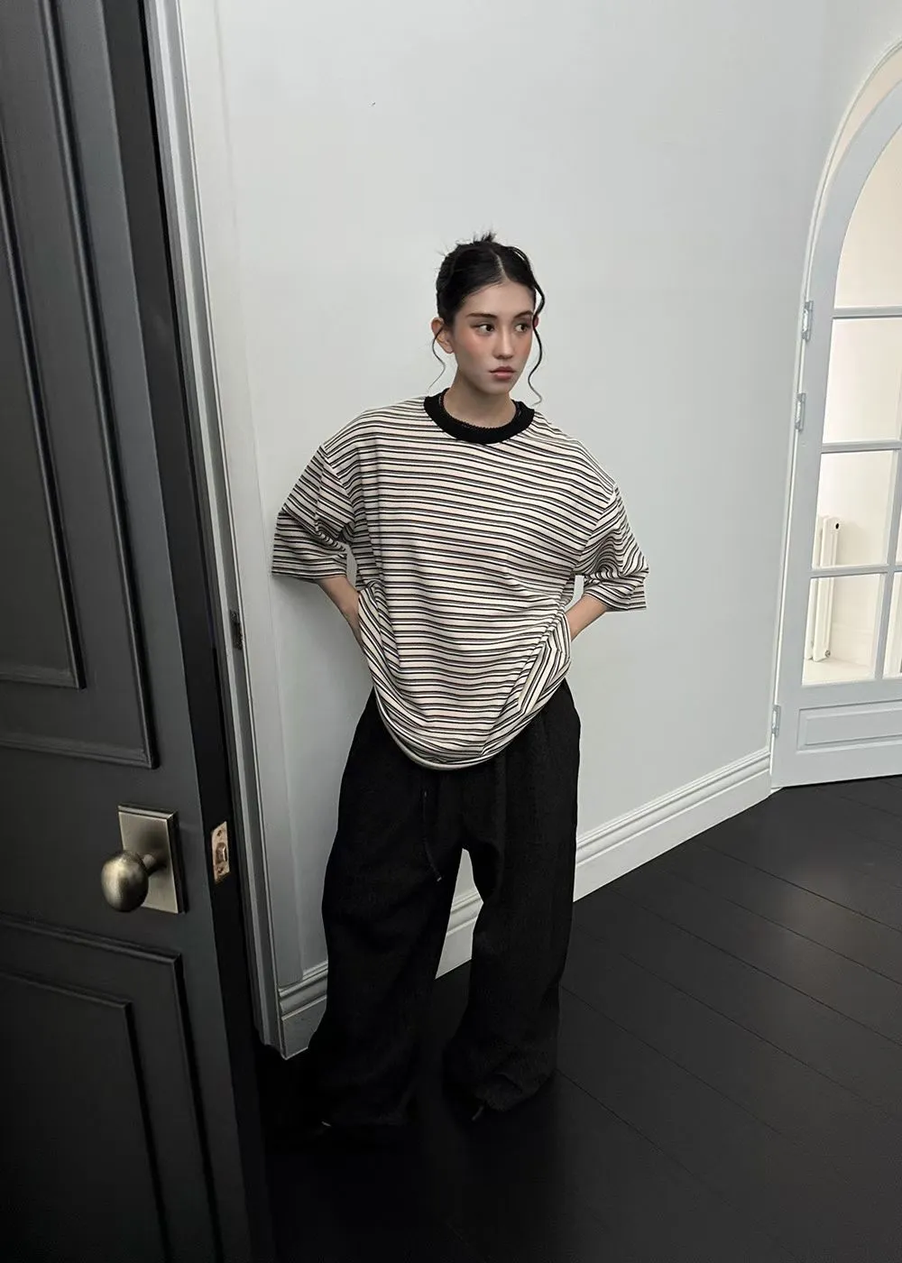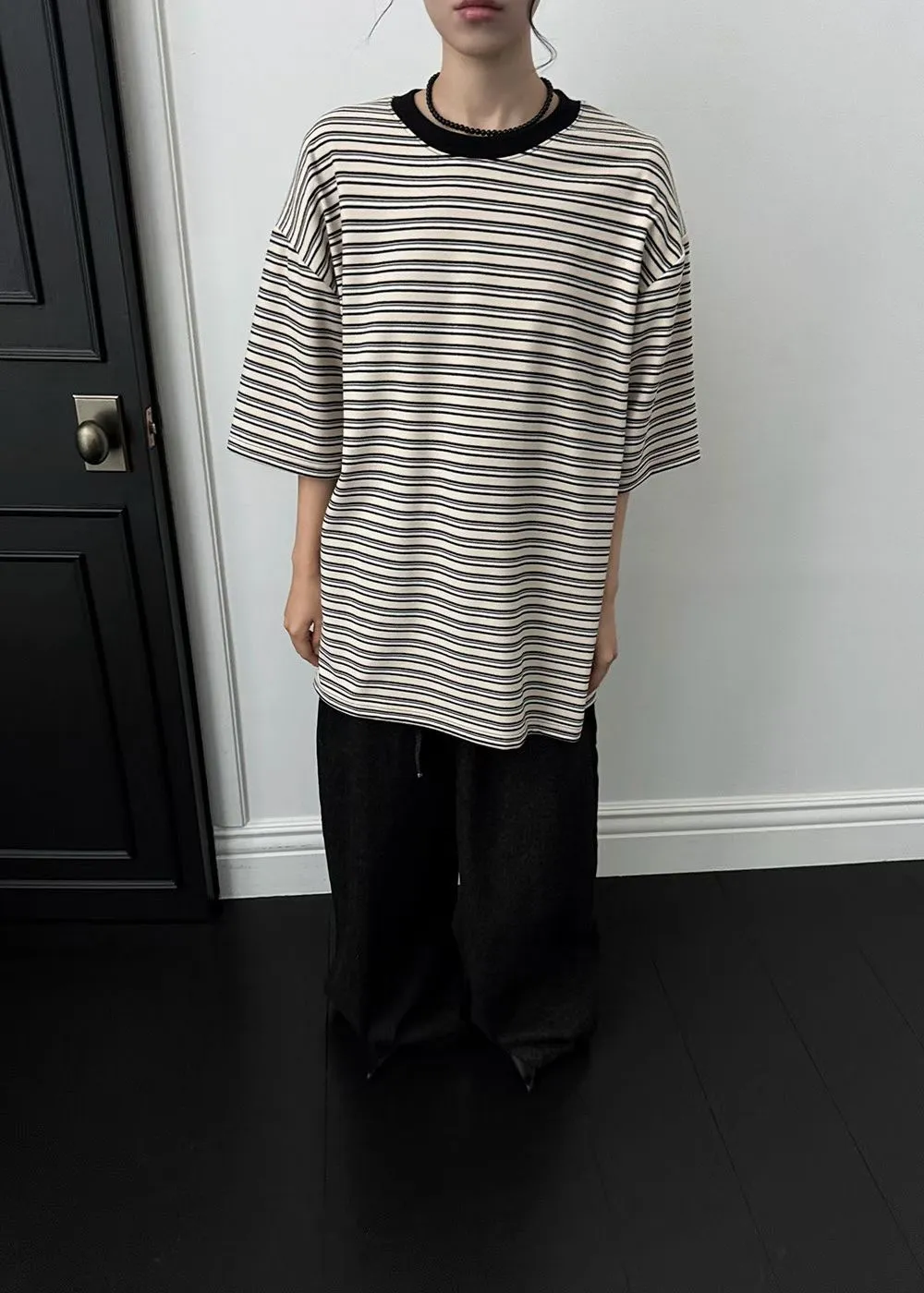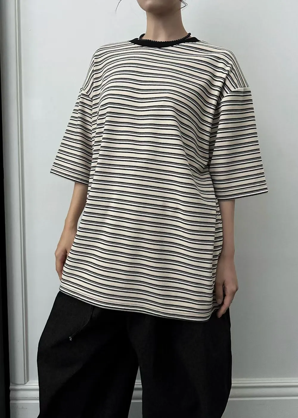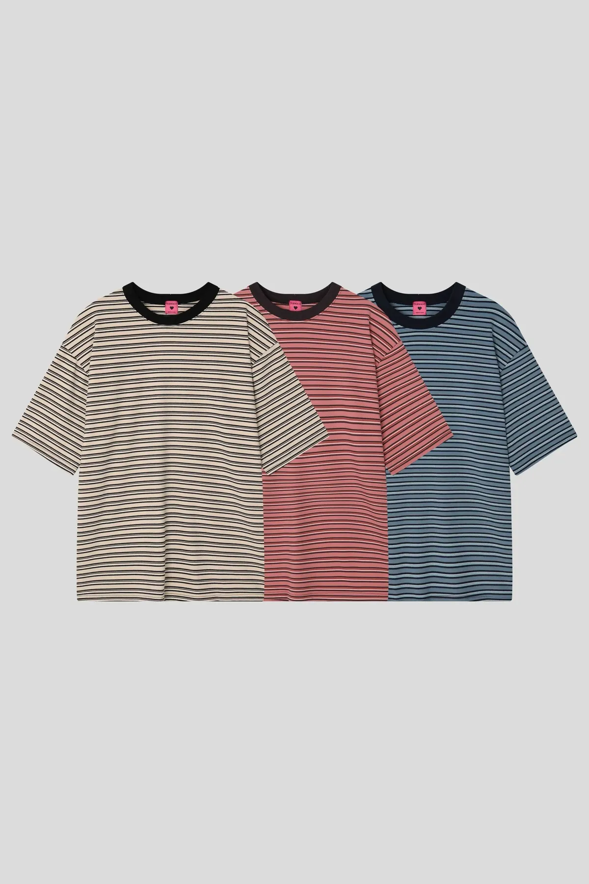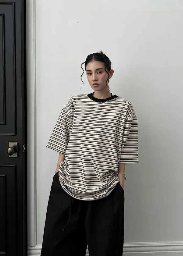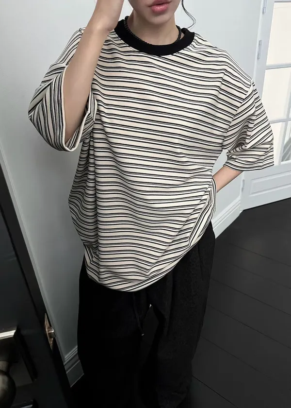 25JC19 蜜桃絨撞色條紋寬鬆短T 3色